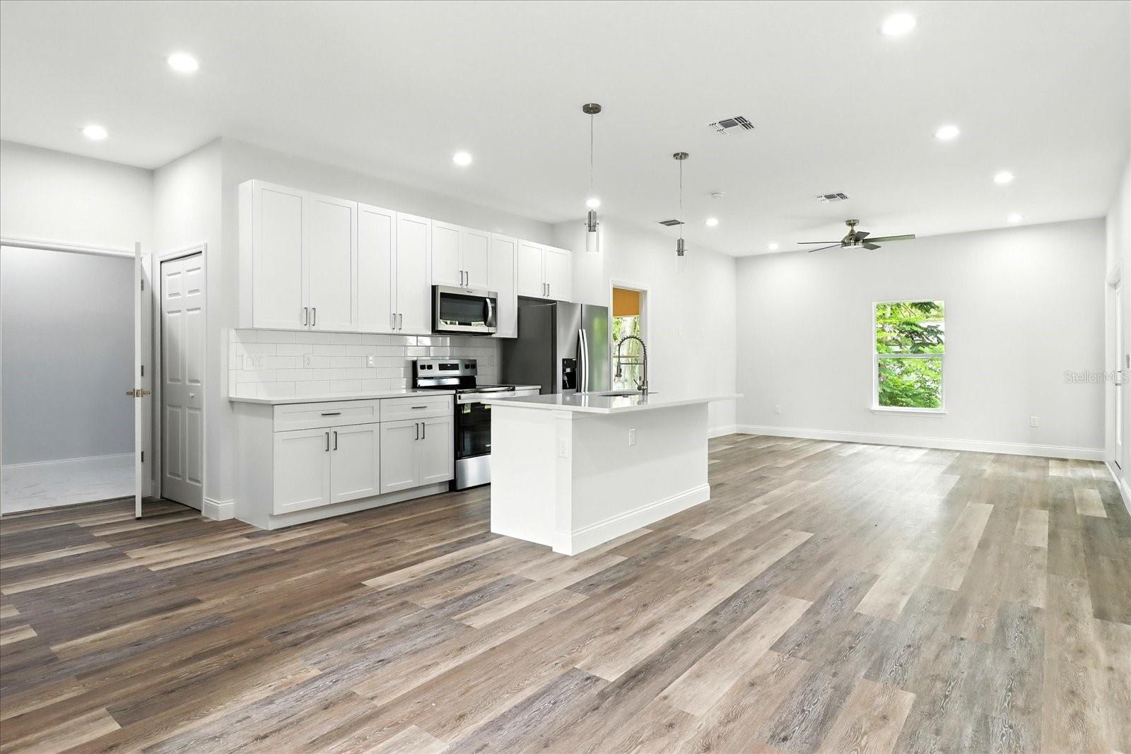 MOVE IN READY! This stunning 3-bedroom, 2-bathroom single-family home offers the perfect blend of modern design and comfort. From the moment you step inside, you’ll be impressed by the meticulous attention to detail and premium finishes throughout. The open-concept living and dining area, featuring soaring 9'4" ceilings and elegant vinyl flooring, creates a bright and inviting space perfect for entertaining. The modern kitchen is both functional and stylish, featuring custom 42” wood cabinets, Quartz countertops, a subway tile backsplash, a spacious island with seating, a generous pantry, and brand-new stainless steel appliances. The luxurious master suite offers views of the backyard and includes a spa-like bathroom with dual sink Quartz vanity tops, a walk-in shower with a soothing rain showerhead, an expansive walk-in closet, and a stylish barn door connecting the primary bedroom to the bathroom. Enjoy Florida living on the covered lanai and expansive backyard, ideal for gatherings. The 2-car garage provides ample storage for vehicles and more. Ideally located near some of Central Florida’s best outdoor attractions, offering endless opportunities for nature and recreation. Residents can enjoy nearby parks and preserves such as Homosassa Springs Wildlife State Park, Potts Preserve, Withlacoochee State Forest, and St. Martins Marsh Aquatic Preserve, as well as local community parks and trails perfect for biking. For those who love kayaking and swimming, the area’s natural springs and rivers provide incredible spots to get on the water. The property is also just a short distance from the Citrus Springs Golf & Country Club, making it a great choice for golf enthusiasts. Plus, you’ll find restaurants and everyday conveniences located nearby, ensuring both comfort and adventure are always within reach. Don’t miss this opportunity—schedule a showing today and make this exceptional home yours!
