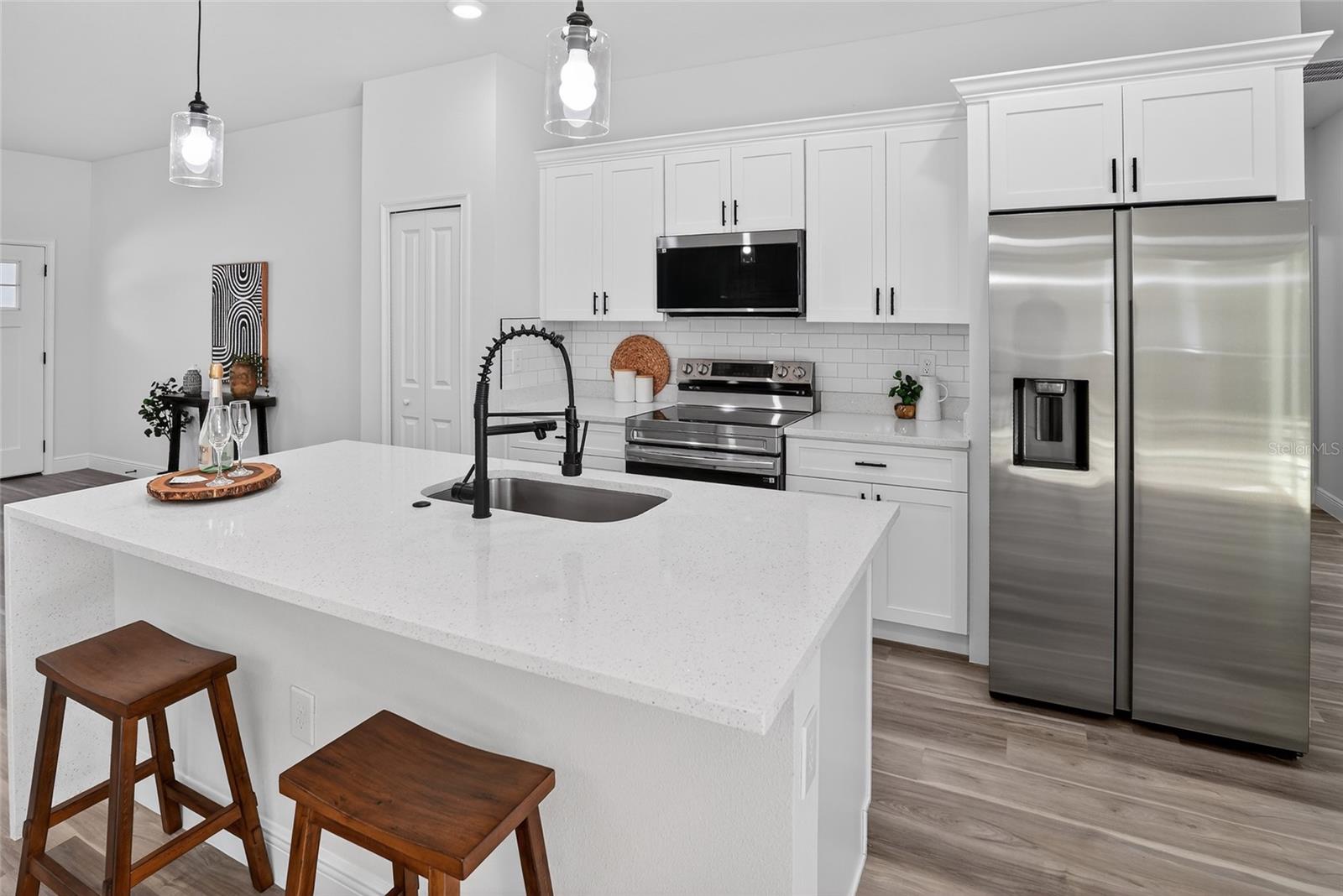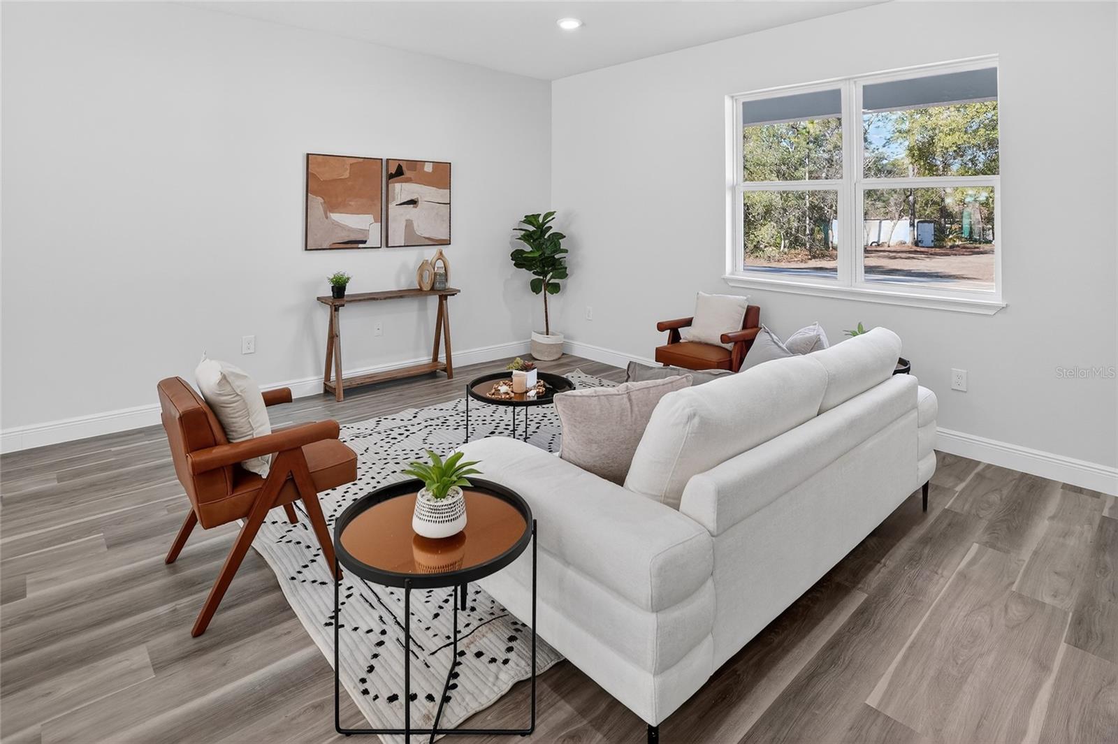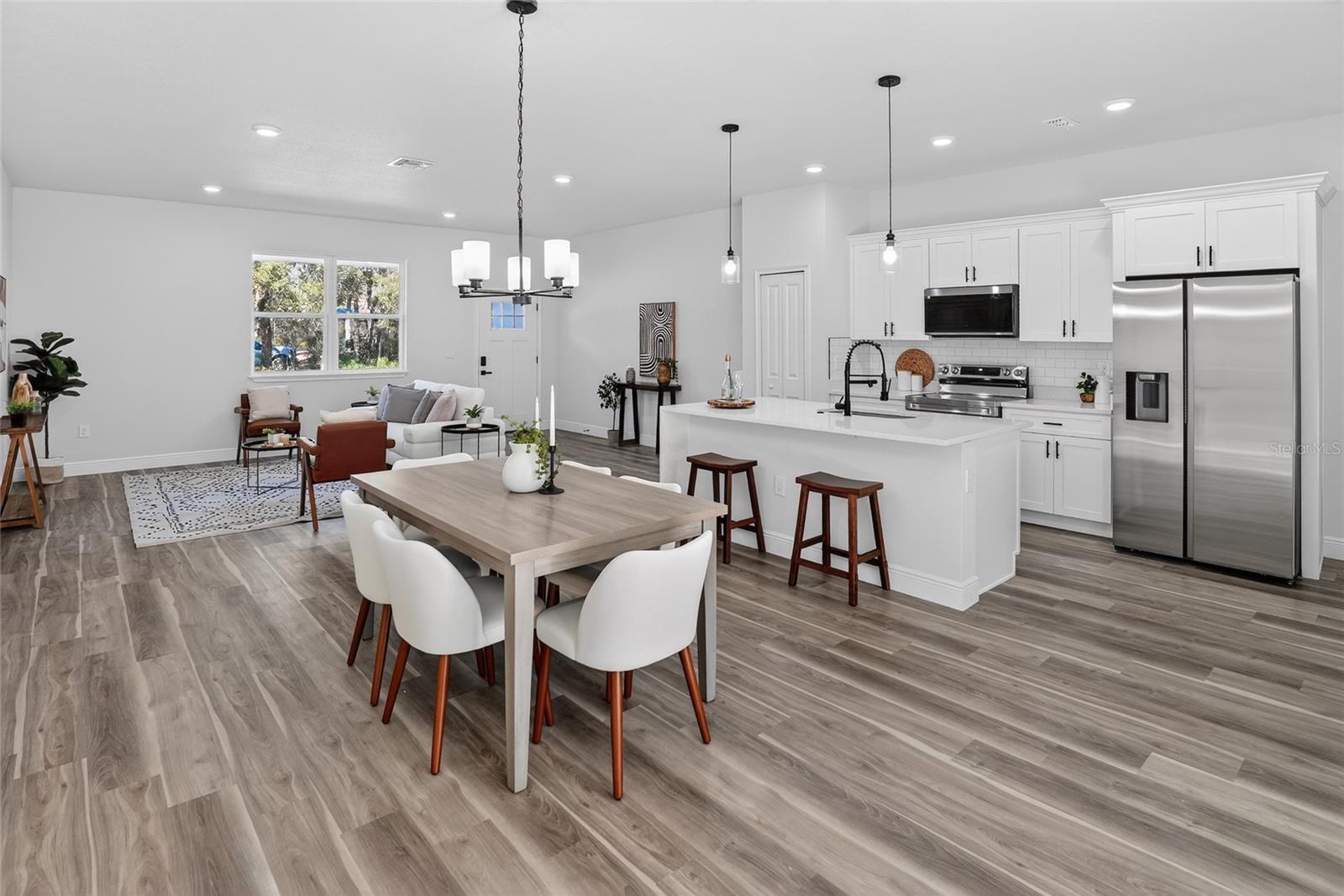New home in Dunnellon, $2,000 bonus to buyer’s agent (through March). Enter into this newly built four-bedroom, two-bath home designed for comfort and modern living in a quiet Dunnellon location. Enjoy a bright and functional layout featuring a stylish kitchen with white quartz countertops, shaker-style cabinetry, stainless steel appliances and a center island with seating. The split-bedroom design offers privacy, with a spacious primary suite including two walk-in closets and a sleek porcelain-tiled bath. Built with concrete block construction, this home also includes a two-car garage and a generous backyard with patio space, ideal for relaxing or entertaining. Conveniently near Rainbow Springs, KP Hole and Rainbow River. Includes one-year workmanship warranty and seven years structural warranty. Preferred lender options may offer rates as low as 4.99% (FHA) and 5.625% (Conventional, 5% down) for qualified buyers. Terms apply. Seller may offer incentives so schedule your showing today!