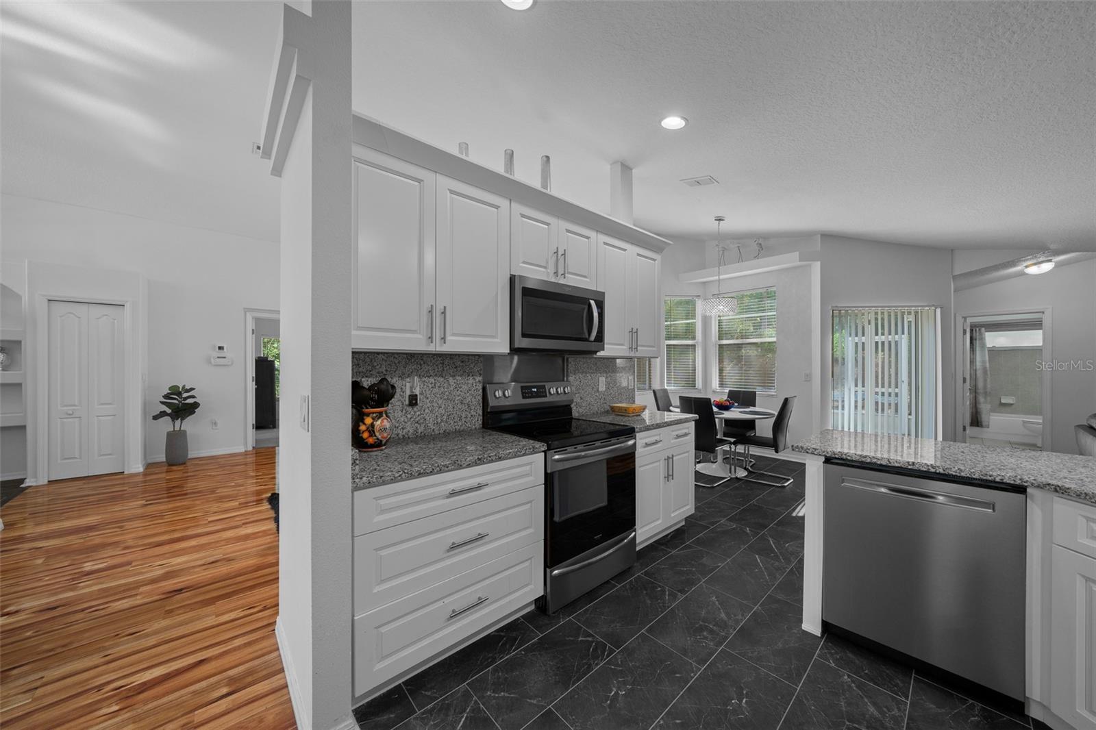 For buyer’s peace of mind we are now offering a 1-year home warranty! Welcome to this gorgeous, Move-in ready home in Citrus Springs! Nestled on a high and dry 0.29-acre lot, this meticulously maintained home offers comfort, space and style with 1,869 sq ft of living space, a split 3-bedroom, 2-bathroom floor plan and a spacious 2-car garage—all in a quiet, desirable community just minutes from everything you need. As you step through the front door, you’re welcomed by vaulted ceilings and beautiful wood laminate flooring that flows throughout the main living areas. This home features two separate living rooms—a formal living space and a cozy family room—providing flexibility for entertaining, relaxing or creating a game room. The heart of the home is the well-equipped kitchen, which boasts granite countertops, soft-close cabinetry, a breakfast bar and a charming breakfast nook. Large primary suite features sliding glass doors that open directly to the lanai, dual walk-in closets, and a luxurious en-suite bathroom complete with double vanities, a garden tub and a beautiful walk-in tiled shower. The split floor plan ensures privacy, with two generously sized guest bedrooms located on the opposite side of the home, along with a full guest bathroom nearby—perfect for family or visitors. Almost every room in this home opens to the incredible screened outdoor living area, ideal for hosting get-togethers or simply relaxing in the Florida breeze.There’s also plenty of room to add a hot tub, pool or create the perfect space for outdoor entertaining. Brand new 10x12 shed recently added, providing extra storage space for tools, equipment, or outdoor items. Located in the heart of Citrus Springs, you’re close to shopping, dining, medical facilities, schools and outdoor recreation—including the nearby Withlacoochee State Trail, Rainbow River and more! Roof, HVAC and garage door were all replaced in 2020, offering peace of mind for the next homeowner. This home truly has it all—space, function, charm and a great location. Come see for yourself & fall in love!