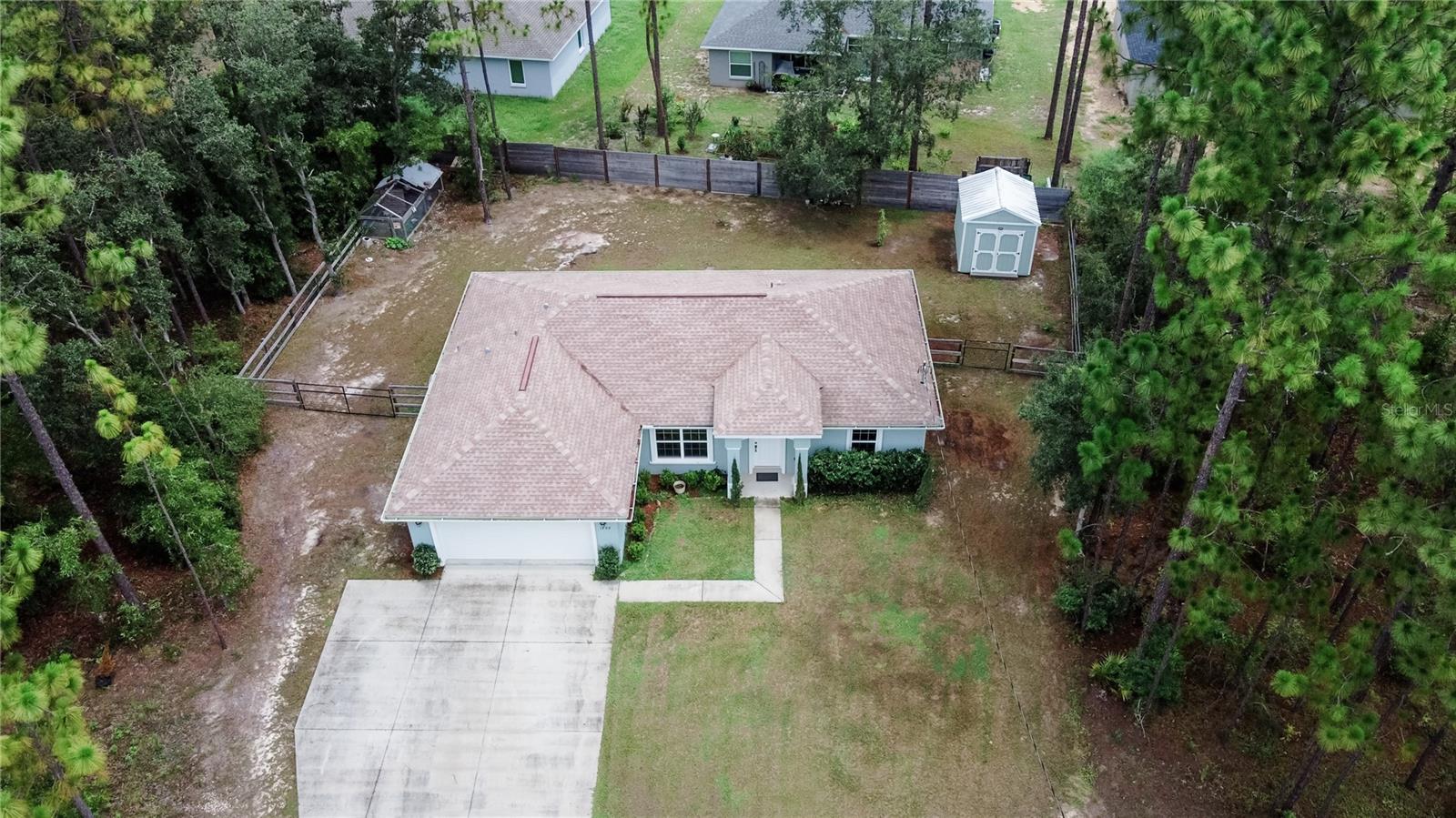 Welcome to 1899 W Oliver Drive in beautiful Citrus Springs, Florida! This 2020-built concrete block home offers a popular split floor plan designed for comfort and functionality. Step inside to find an open-concept layout with cathedral ceilings, upgraded dual-pane windows, and beautiful lighting throughout, creating a bright and airy living space. The kitchen and bathrooms feature solid wood cabinetry and granite countertops, with attention to detail. Enjoy the convenience of an indoor laundry room and appreciate the fenced backyard, complete with privacy wood fencing in the rear and drive-through gate, great for storing trailers, boats, or extra vehicles. A spacious utility shed provides additional storage, and there's plenty of room to create your dream backyard. Located in the growing community of Citrus Springs, you'll have access to a golf course, tennis courts, bike trails, and a public library. The Withlacoochee River is just 8 miles away for kayaking, boating, and fishing adventures. Nestled in Florida’s scenic Nature Coast, you’re also near medical facilities, shopping centers, and a variety of restaurants—offering the perfect balance of tranquility and convenience.