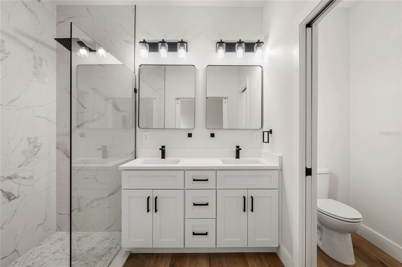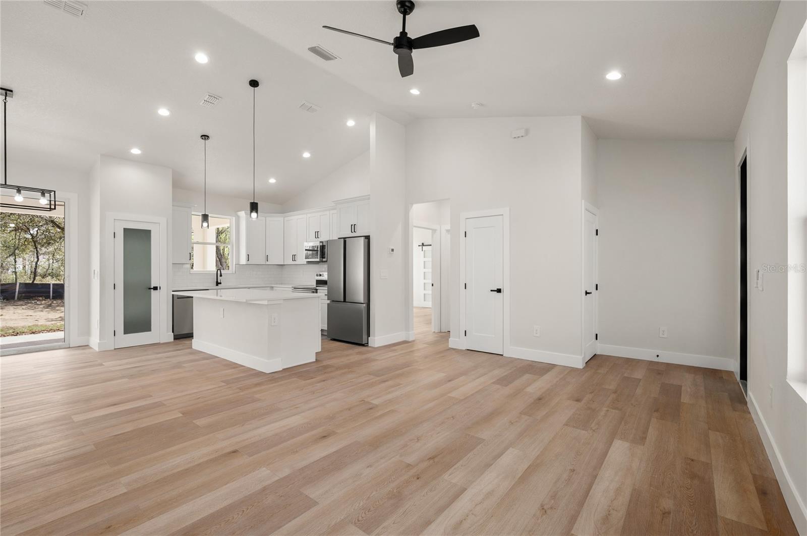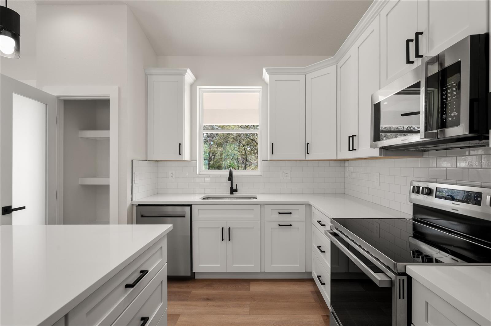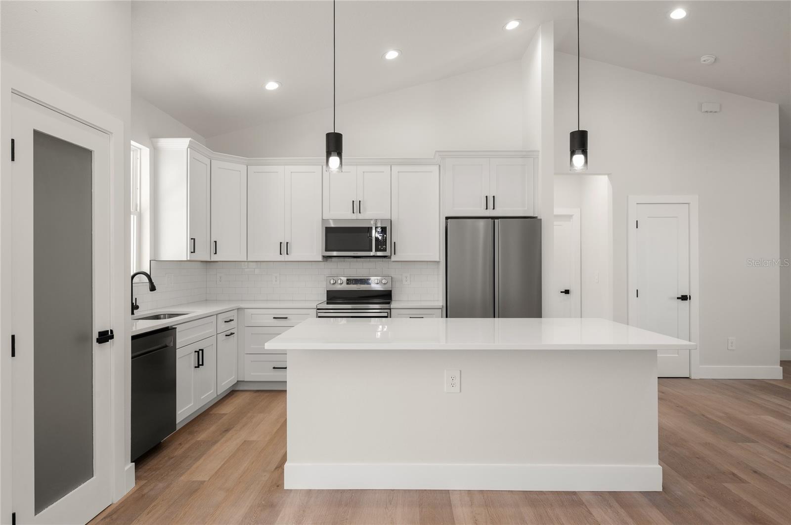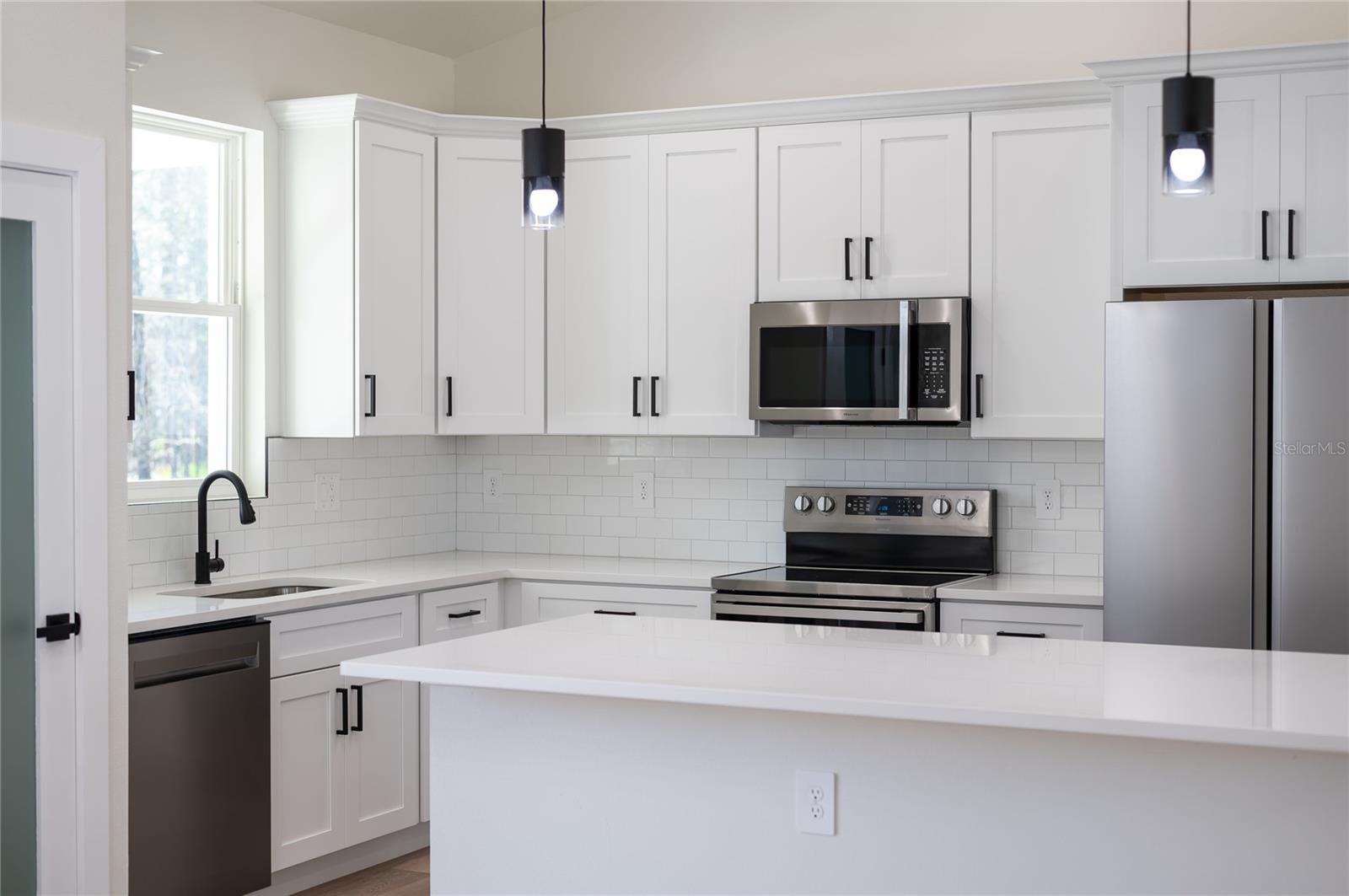 Complete luxurious living 3-Bedroom, 3-Bath Home with Private Guest Suite and Premium Design Features This 3-bedroom, 3-bath home offers 1,507 sq. ft. of thoughtfully designed living space, combining style, function, and comfort. The master suite is generously sized with a barn door entrance to a luxurious his-and-hers bath featuring a large walk-in shower. Bedroom 2 includes its own private bath and separate entrance—ideal for guests, extended family, or an in-law suite. A third full bath serves visitors and the third bedroom. The open-concept design boasts 9-foot ceilings throughout, soaring up to 13 feet with cathedral truss ceilings for a spacious, elegant feel. Multiple closets are conveniently placed in the living room, along with a walk-in pantry for extra storage. Interior Highlights: Vinyl LVP flooring throughout Ceramic tile in the laundry and on bathroom walls Walk-in laundry closet with sink Solid surface counters & solid wood cabinets Stainless steel appliances: Dishwasher, Electric Water Heater, Microwave, Range, Refrigerator Split bedroom design with privacy for guests or family Double-pane windows for efficiency Ceiling fans, tray ceilings, and cathedral ceilings Exterior Features: Striking “old money” look with white exterior, black roof and soffits Faux stone façade for added character Gabled roofline with siding detail by the garage for a premium finish Covered patio and spacious outdoor living area SOD lawn with driveway and walkway to in-law suite entry. Call the listing agent today to schedule your showing appointment—slots are filling up fast! A home design built with your family in mind. Home site next door also available—ask for details!