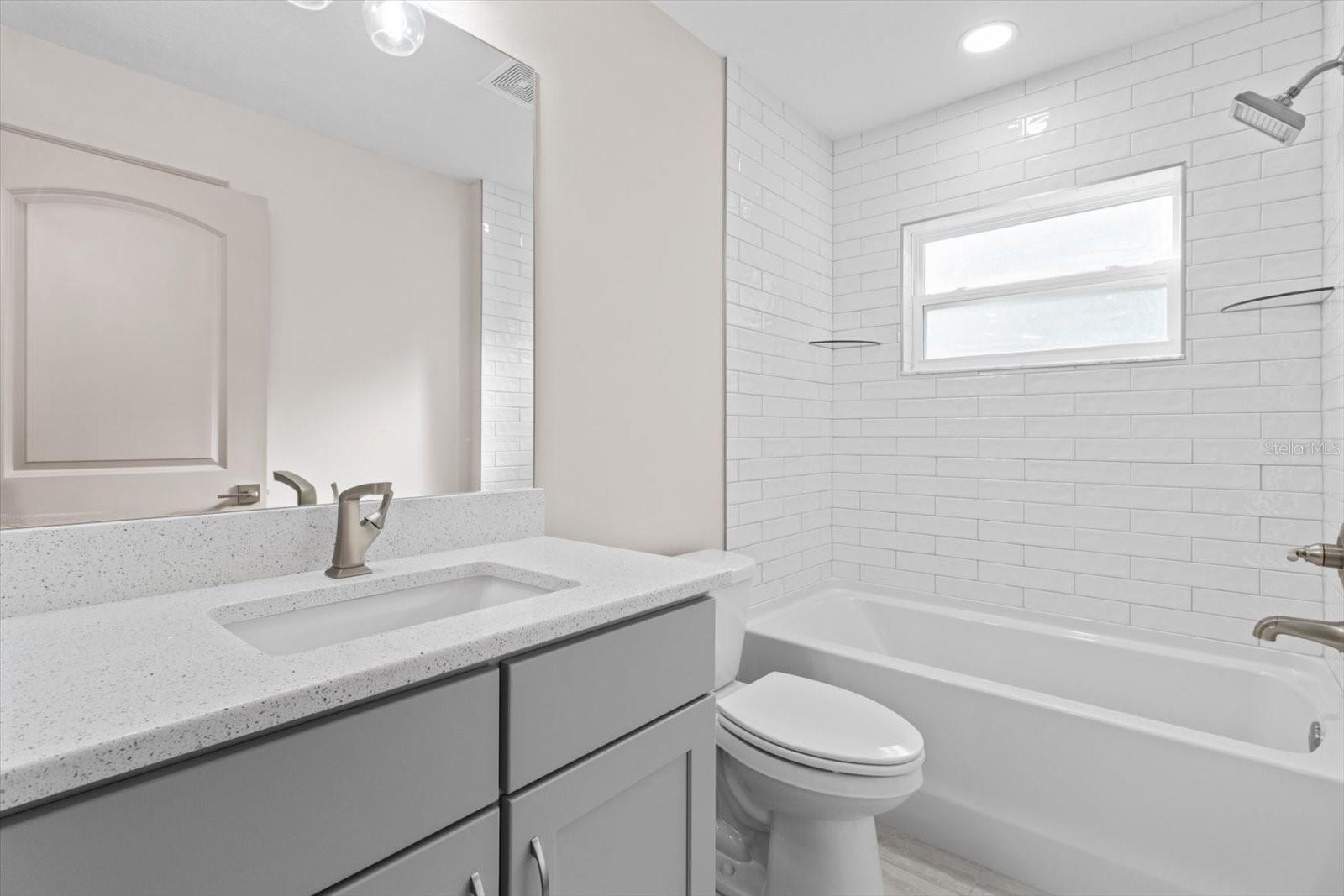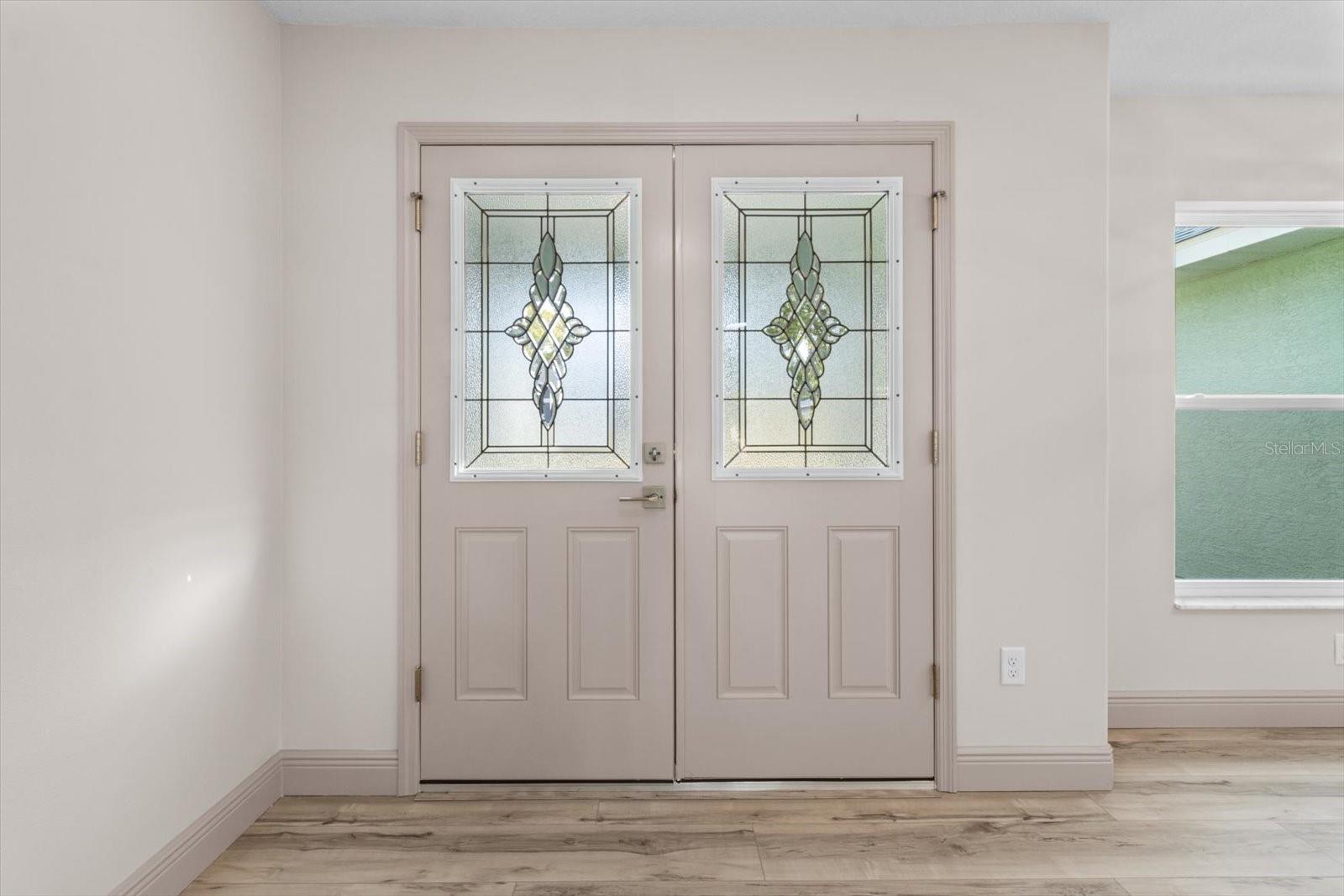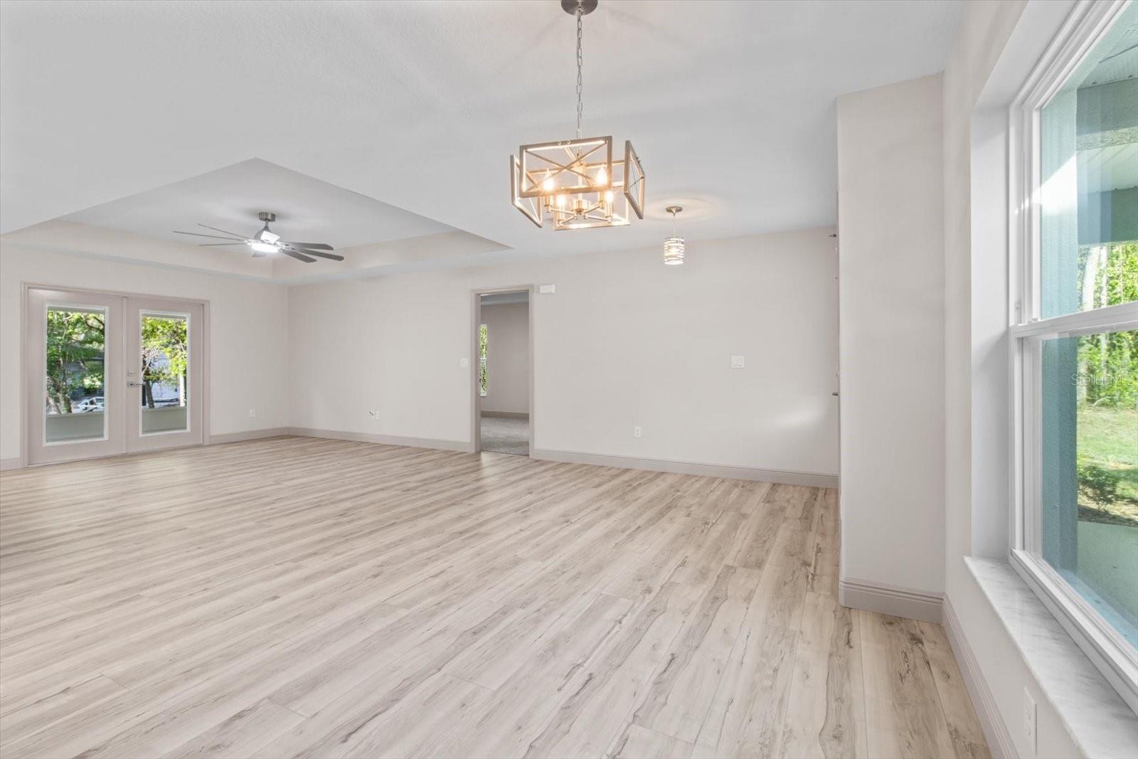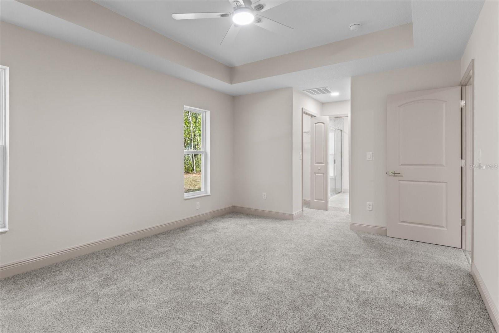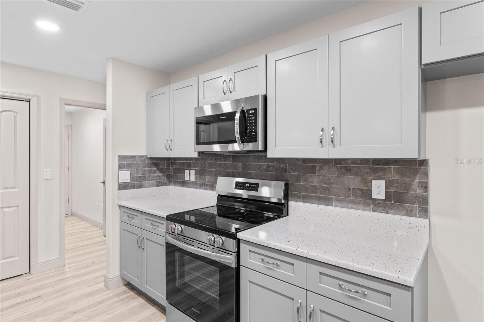 One or more photo(s) has been virtually staged. If you are looking for home in a quite neighborhood with the the golf course right across the street, this home is for you. Come check out this brand new beautifully landscaped home featuring 3 bedrooms, 2 full baths. The kitchen includes stainless-steel appliances, large quartz center island countertop and ceramic tile backsplash. The split-bedroom house plan includes luxury vinyl flooring throughout with carpet in the bedrooms and trey ceilings, . The primary bedroom has 2 large walk in closets and en-suite with a large tiled shower and double sinks. The home also has an interior laundry room and large enclosed lanai to sit and enjoy nature. There is a two car garage with epoxy flooring. There is no Homeowners Association (HOA), only an architectural committee.