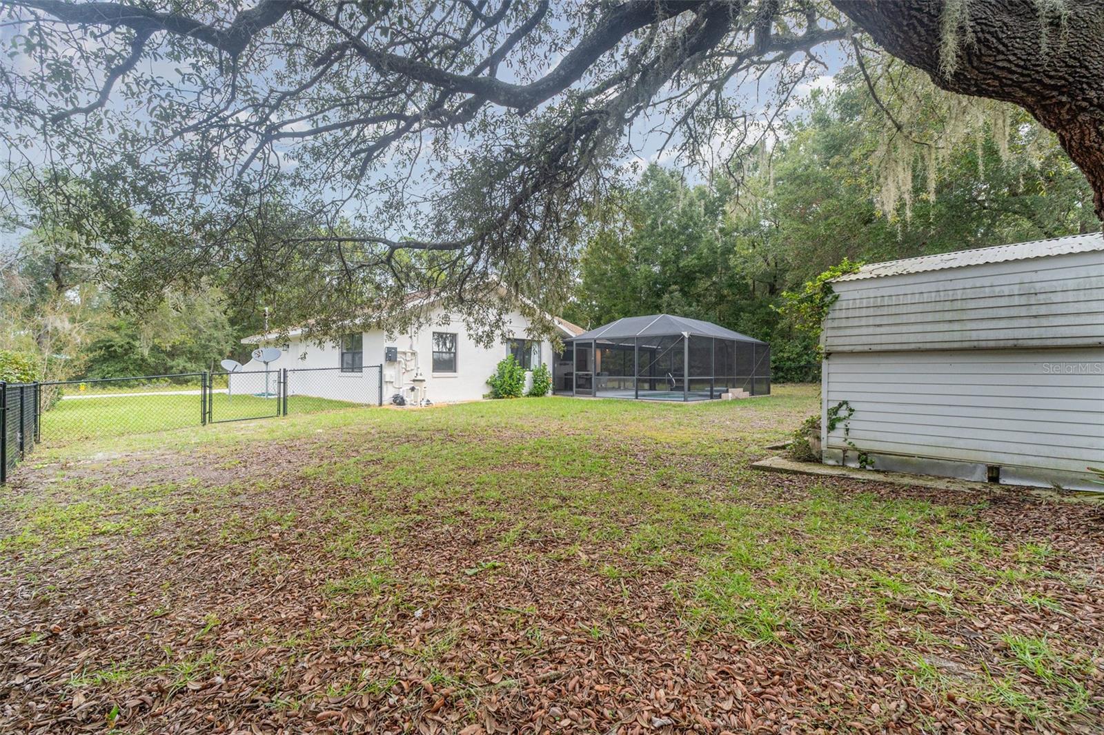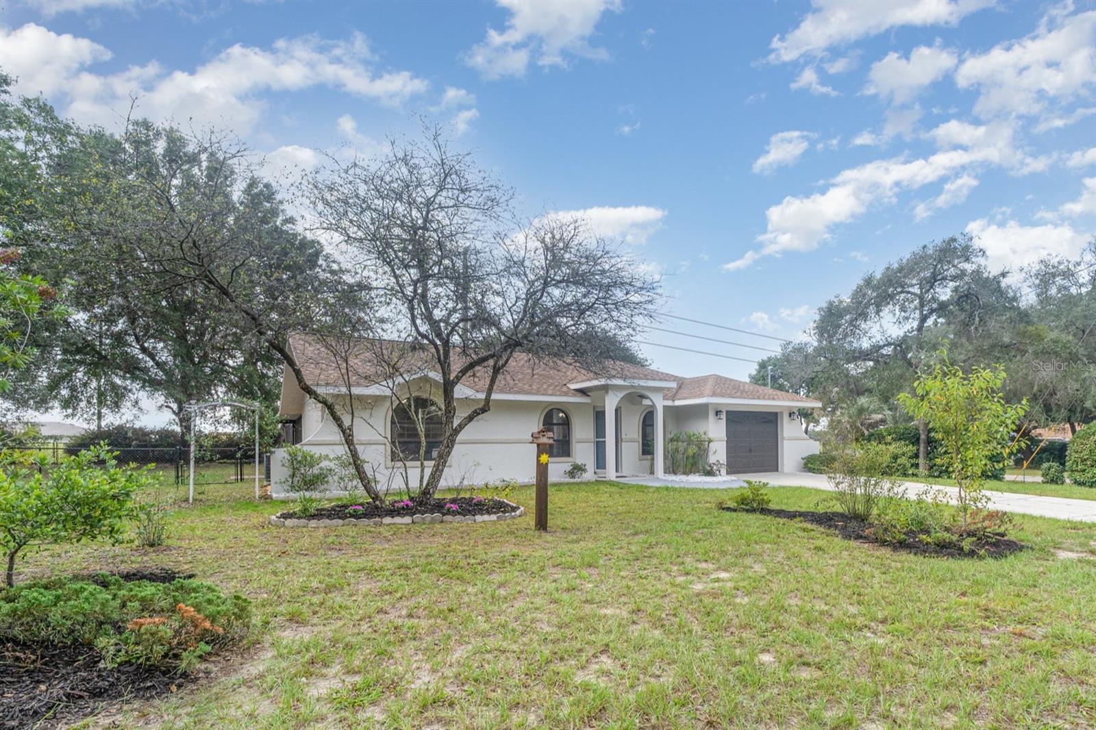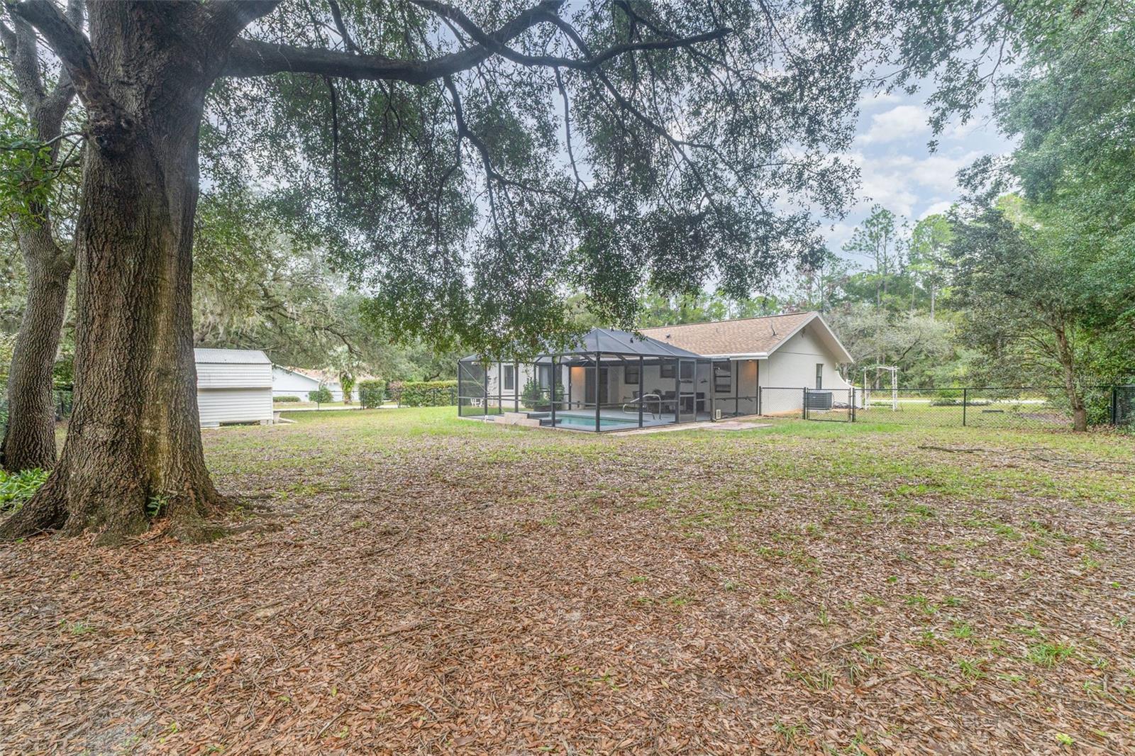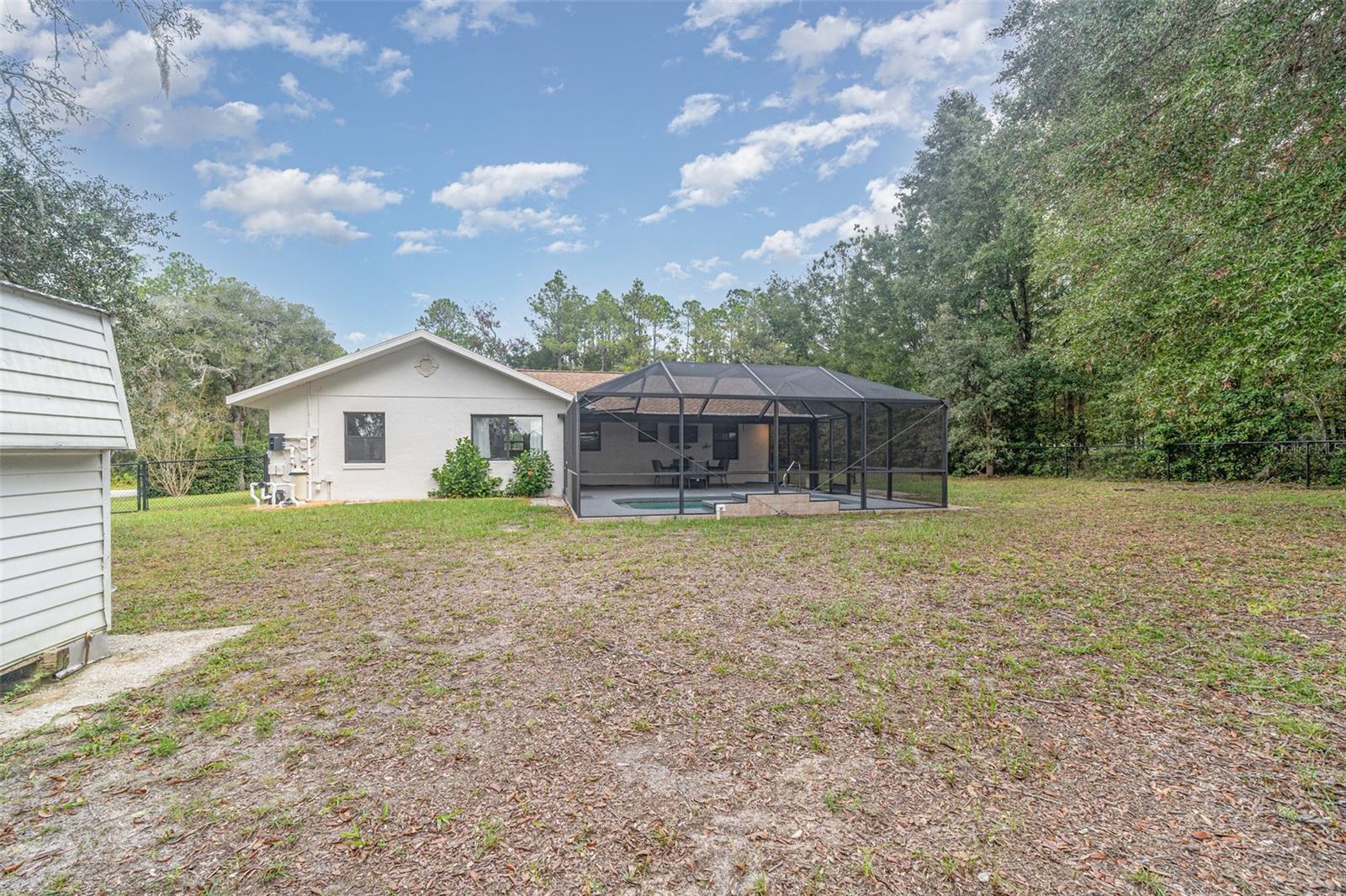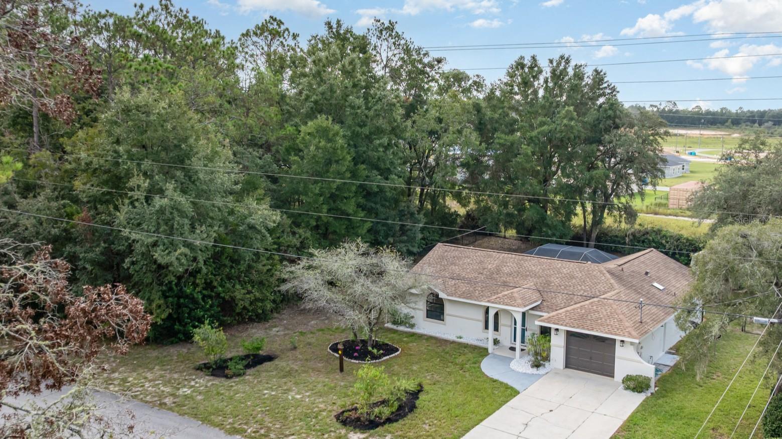 This is a dream find for the right buyer! 3 Bed, 2 Bath home on a corner lot. Heated pool, Screened-in, with large covered Porch. Pool TV stays! Comfy new patio furniture stays too! Large fenced-in backyard with wide gated side entrance (for boat or mower). Located on a quiet street, with wooded lot next door & across. Storage shed and mature oaks too. Sculpted arched windows lend a welcoming flair. HVAC is only 4 years old. Roof only 10 years old. Glass storm door, *new* Whirlpool self-cleaning range & micro, new garage door opener. High & dry, this is not in a flood zone. No HOA required! Enjoy peace and privacy here, with close proximity to great local restaurants, shopping, and medical/hospitals. Only 18-minute drive to popular Rainbow Springs State Park or escape to the Beach in only 35 minutes! Close to Ocala airport.