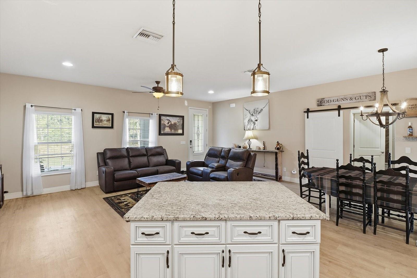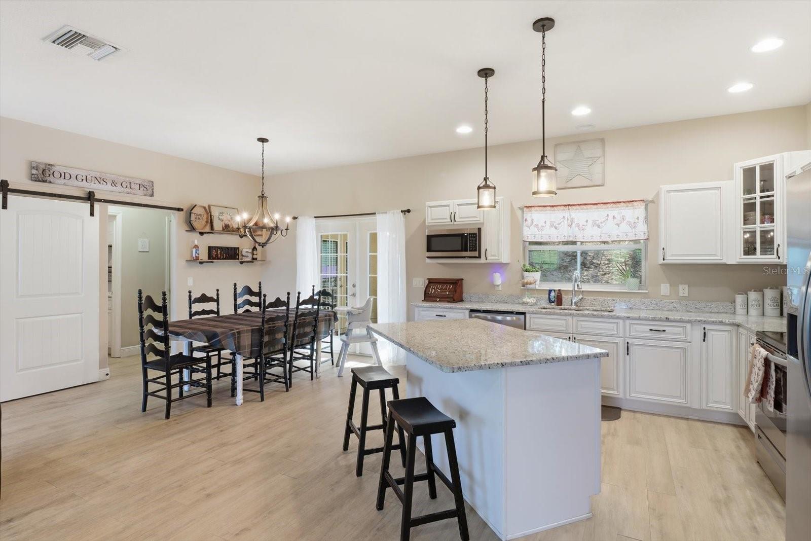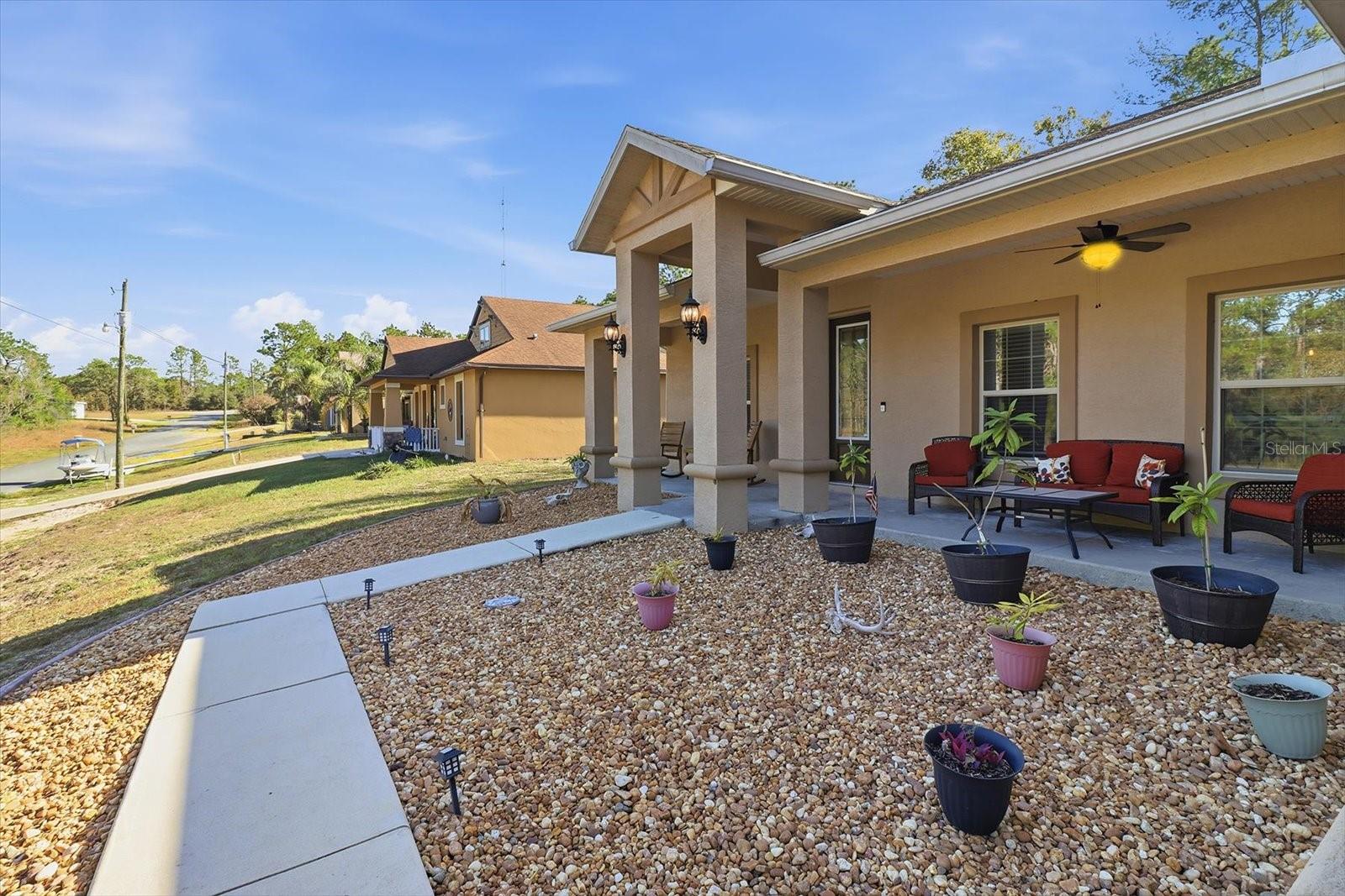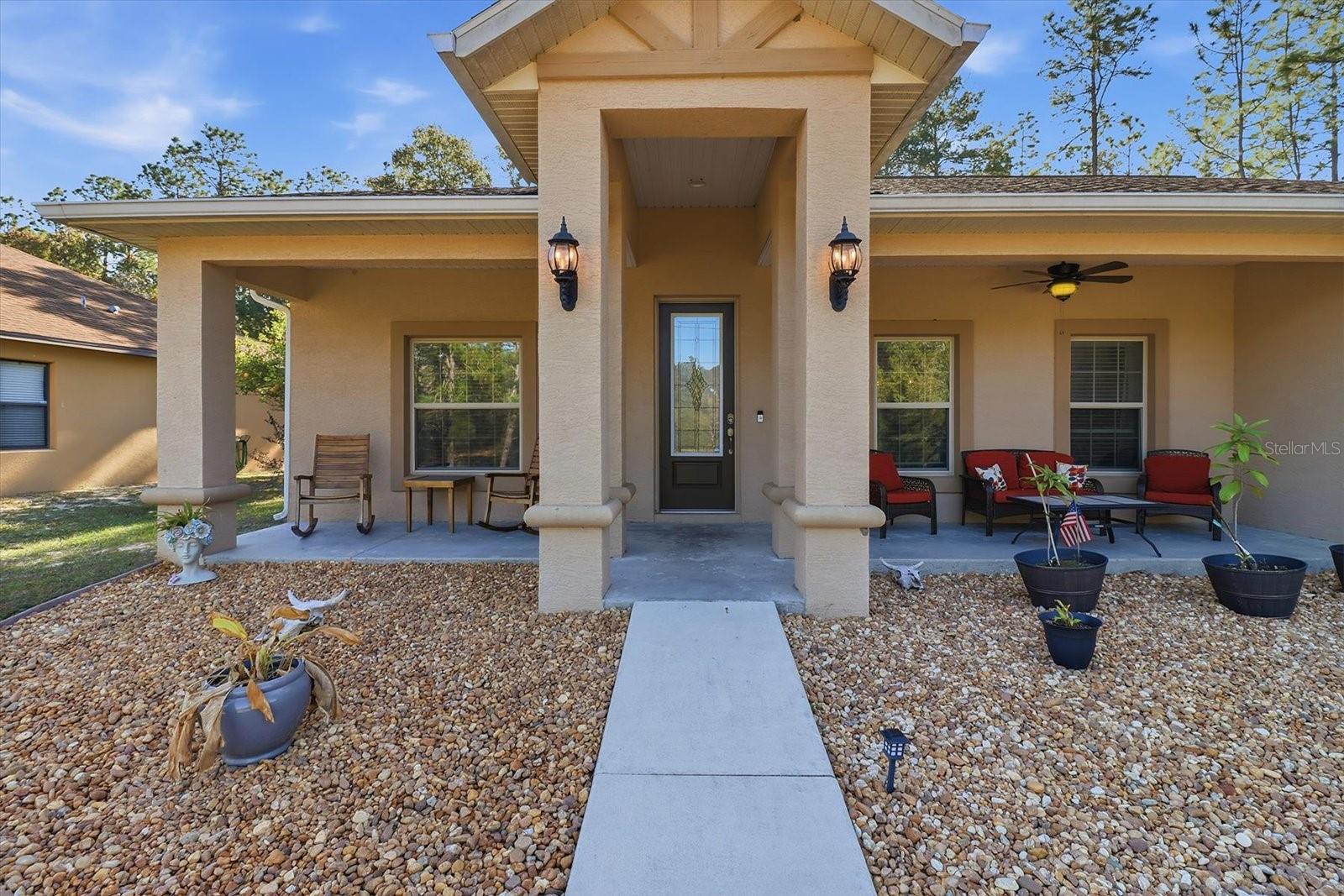 A STEP ABOVE THE REST! For those who have perfected the art of front porch sittin’ and sweet tea sippin’, this move in ready home is sure to tickle your fancy. A 34’x10’ front porch with its slightly elevated, perfectly unobstructed view greets you as you approach this 3 bed, 2 bath, 1,628sqft home. Amazingly large outdoor sitting areas absolutely define this gem that’s tucked away in the fast-growing community of Citrus Springs. A large 20’x11’ NEWLY screened lanai in the back of the home also awaits your sittin’, so boredom should never be an issue. Ceiling fans on the front and rear porches allow you to comfortably sit a spell. An outdoor paver patio with firepit for sittin’ around and sharing the stories of the day is a bonus! Once inside, you’re sure to feel right at home. The 9’ ceilings and luxury vinyl planking provide continuity throughout the open floor plan. The kitchen features wood cabinets, granite countertops, stainless steel appliances and an island with breakfast bar and pendant lights overlooks the living room. The living/dining room combo provides ample space for entertaining, while the French doors allow the fun to move out into those awesome outdoor spaces. The master bedroom boasts a roomy 7’x8’ walk-in closet, tray ceiling and an ensuite with dual sinks, tiled shower and water closet for privacy. Indoor laundry is convenient. The NEW fully fenced backyard will make your furry friends super happy as well. NO HOA FEES & NO FLOOD ZONE! Much to enjoy with The Rainbow Springs State Park only 20 minutes away for fishing, camping or a lazy float on a tube down the Rainbow River. The famous Withlacoochee State Trail-Gulf Junction Trailhead is 3 miles away for biking, hiking & great nature walks. And of course, Crystal River is just 20 minutes away for shopping, dining, boating & the only place to SWIM WITH THE MANATEES! FREE 1 YR HOME WARRANTY FOR PEACE OF MIND IS OFFERED TO THE BUYER!