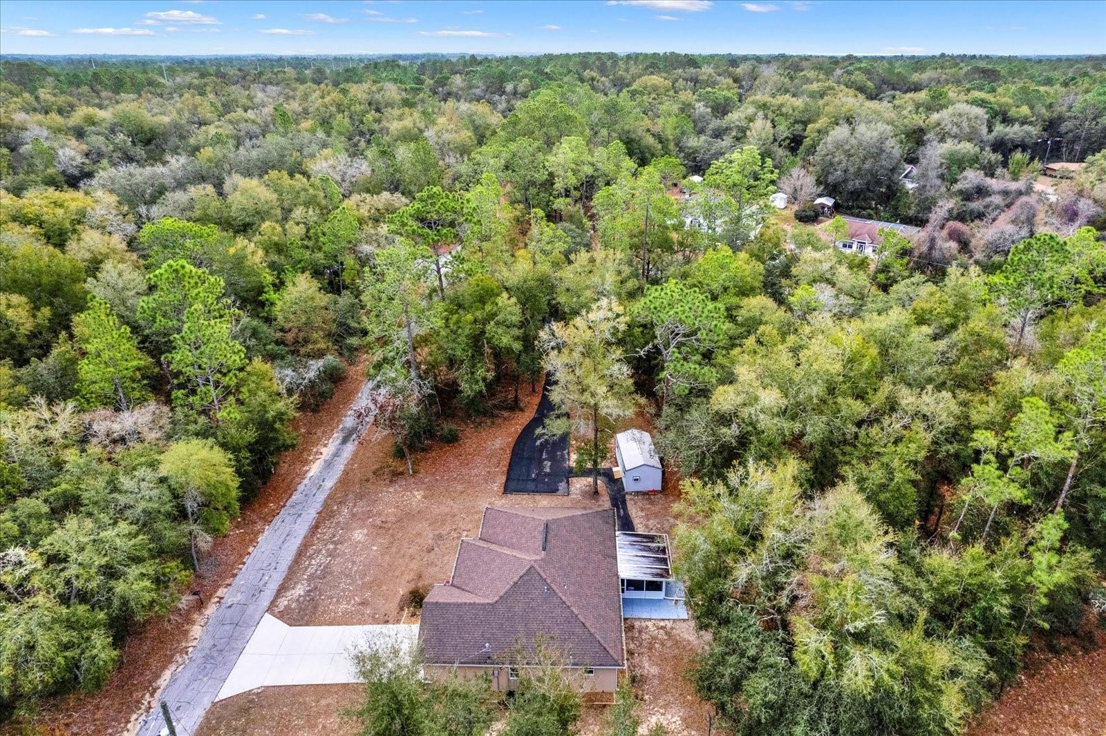 This charming home offers an abundance of privacy, nestled on a very quiet, secluded corner lot. The open floor plan creates a spacious, airy feel, perfect for both relaxation and entertaining. Featuring 3 bedrooms and 2 bathrooms. 2 car garage. The master bathroom has a walk-in tiled shower also featuring a bidet toilet. There is enough room in the walk-in closet for all your stylish clothes. The guest bathroom has a tub for relaxing in after a stressful day. The home is beautifully appointed with granite countertops throughout, adding a touch of elegance to every room. Ceiling fans in every room ensure comfort year-round, while hardwood laminate floors provide a sleek and durable finish. Enjoy peaceful moments on the front porch or fire up the grill on the back screened-in patio, ideal for cooking out and enjoying the outdoors in comfort. With privacy, style, and thoughtful design, this home offers the perfect retreat. Heavy-duty A/C-2020, Roof-2019, Washer/Dryer-2023 with a 10-year warranty on washer motor, Dishwasher-2024, Water Heater-2020, Refrigerator/ Oven/ Microwave-2020. Also featuring on this great piece of property is a shed with power and A/C. Great for a She-Shed or a Man-Cave. Plus, to the side of the house is a paved driveway with a RV plug-in. If you prefer not to live in close proximity to your neighbors within a planned development community, this secluded home would be the perfect choice for you. Home is being sold furnished! Listing Agent is ADAM BRANDT and Melinda Grimes is Broker ONLY!!!