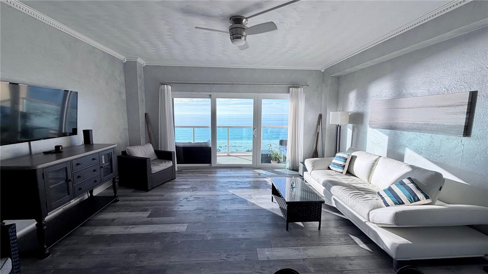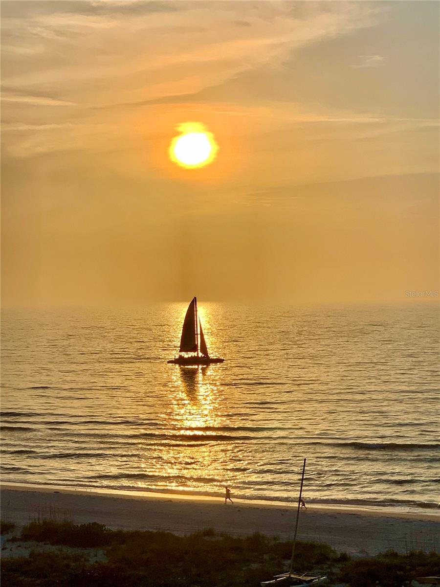 PRIME OPPORTUNITY! This immaculate, renovated OCEANFRONT condominium showcases one of the most desirable floor plans in the building, highlighted by a rare double-balcony layout. The primary bedroom offers direct access to a private balcony, allowing you to awaken each morning to a serene, peaceful ocean view, while the living area opens to breathtaking panoramic vistas that enhance the connection between the interior spaces and the outdoors. What truly sets this condo apart are the custom faux-finish walls and carefully crafted ceiling features that add character and continuity throughout the unit, extending even the front entry. These artistic touches complement the flooring and create a cohesive, elegant look that feels both welcoming and well designed. The open concept kitchen includes granite countertops and coordinated cabinet color palette that blends seamlessly with the rest of the condo. The layout is ideal for everyday living and entertaining, offering comfort, functionality, and convenience. Additional, closet space provides practical storage. The bathroom is well appointed, featuring granite countertops and a spacious shower with beautiful tile throughout. Abundant natural light fills the condo, made possible by its excellent exposure and scenic views, creating a bright and comfortable living environment. Residents of Regatta Beach Club enjoy a full range of resort-style amenities, including a fitness center, clubhouse with separate kitchen, media and game rooms, shuffleboard courts, workshop, car wash station, EV charging stations , kayak and bicycle storage, and a Olympic-size heated swimming pool for year-round use. The gated community offers added security and peace of mind. Ideally located in North Clearwater Beach, this property is walking distance to restaurants, boutiques, shops, and the lively events at Pier 60, including entertainment and seasonal festivals. Just steps away to the North, Caladesi State Park provides a quiet coastal retreater for nature lovers. This condominium offers a unique combination of quality, location, and lifestyle, making it an excellent opportunity to enjoy comfortable beachfront living with resort-style conveniences. Whether as a primary home, second residence, or investment opportunity, this offering deliver exceptional value and the chance to experience some of Florida's most spectacular sunsets right from your own oceanfront residence.