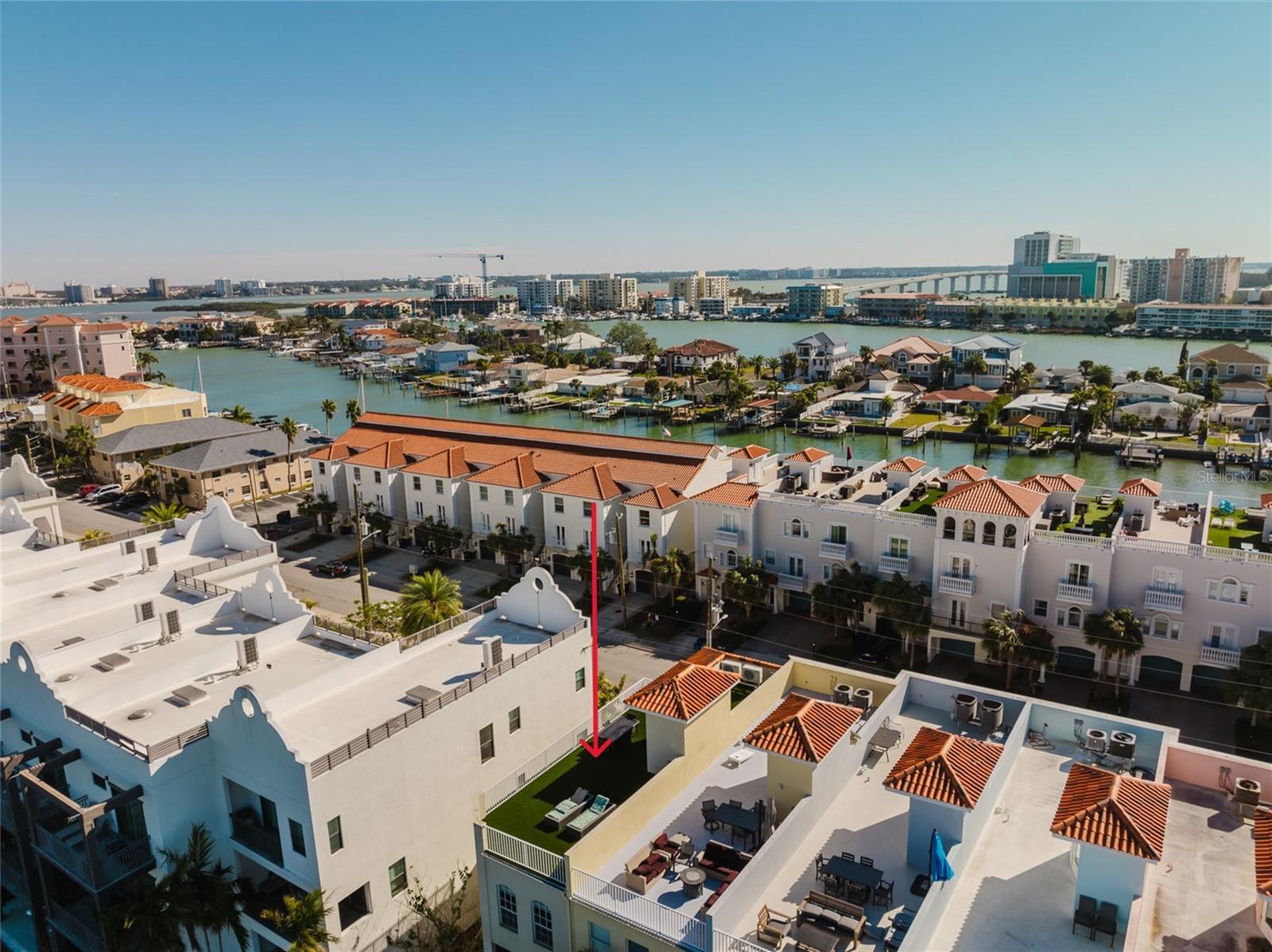Rare find - all this and a 5-minute walk to Clearwater Beach, restaurants and shopping! Premium Waterfront Community – Harborside Townhomes! 4 Level Luxury Townhome with DEEPWATER BOAT SLIP with Lift, 3 Car Garage - half converted into BONUS ROOM, ROOFTOP TERRACE with $11K turf upgrade, Impact Windows, 10 ft ceilings, Private ELEVATOR that services all floors INCLUDING ROOFTOP TERRACE, low $675 monthly fee and ALLOWS 7-DAY RENTALS - a very rare find! The ground-level garage offers ample space for your vehicle and beach gear, and includes a versatile bonus room with elegant French doors that open to stunning waterfront views. Both upper levels are split plans offering privacy for all! The updated kitchen, with pantry, opens to a light and bright spacious living area with amazing water views and slider access to your PRIVATE BALCONY. Brazilian cherry wood floors grace the kitchen, hallways and living/family areas. The master suite is a retreat in itself with a sitting area, adjacent walk-in closet and spacious bathroom boasting dual vanities, a jacuzzi garden tub, spacious shower and water closet. The expansive roof top terrace, with $11K artificial turf upgrade, has great views of the Intercoastal, partial Gulf Views and spectacular sunsets. Only 6 units in the complex ensures there is plenty of space in and around the HEATED WATERFRONT POOL AREA. NEW 2022: AC, Rooftop Turf, Boat Lift, Stove, Dishwasher, Microwave, Refrigerator. Kitchen remodel 2023 including beautiful new quartz countertop. Located alongside the popular Clearwater Beach and all it has to offer: recreation, shopping, fine dining and nightlife. Two international airports 30-40 minutes away. TV’s and mounts have been removed from the Living Room, 2nd Level Guest Bedroom and Ground Floor Bonus room. Included: American Home Shield COMPLETE 1 Year Buyer’s Warranty.
