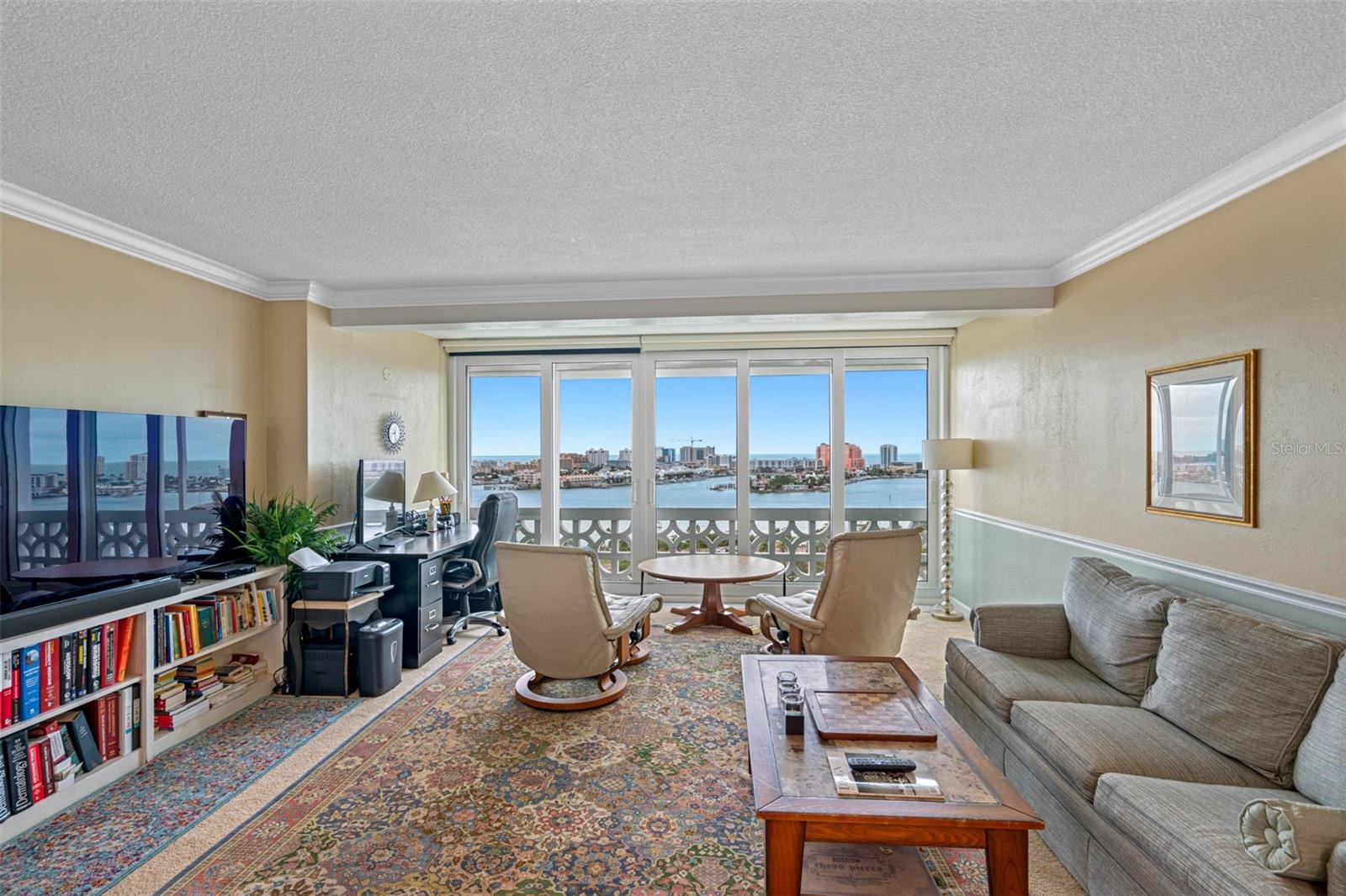 Horizon House in Island Estate offers the finest in coastal living with panoramic views of Clearwater Beach. This 2 bedroom 2 bath 1295 sq ft unit gives you plenty of space to relax and enjoy the picturesque sunset overlooking Clearwater Beach! Amenity features include a big resort style heated pool, brand new fitness center, barbeque grilling areas, storage room in hallway, stunning lobby with concierge service, and a rec room to unwind at the end of your day. For boating enthusiasts, there is a first come first serve boat dock for easy access to the Gulf of Mexico and a fishing pier. Brand new hurricane rated window and sliding doors just installed with roll down shutters for added storm protection make it easy when you are away! Forget about the monthly bill headaches-this co-op covers everything from electric and water to sewer, trash, basic cable and internet. Even your HVAC system is covered. With a full size generator on site and fully funded reserves included in your HOA the homeowner is assured peace of mind for many years to come. There are plenty of open parking spaces. You can get additional covered parking spaces for an extra fee. This amazing complex is only minutes from Clearwater Beach, shopping, entertainment, and restaurants. Two international airports only 25 min away! Experience luxury living like never before! Call today for your private tour!