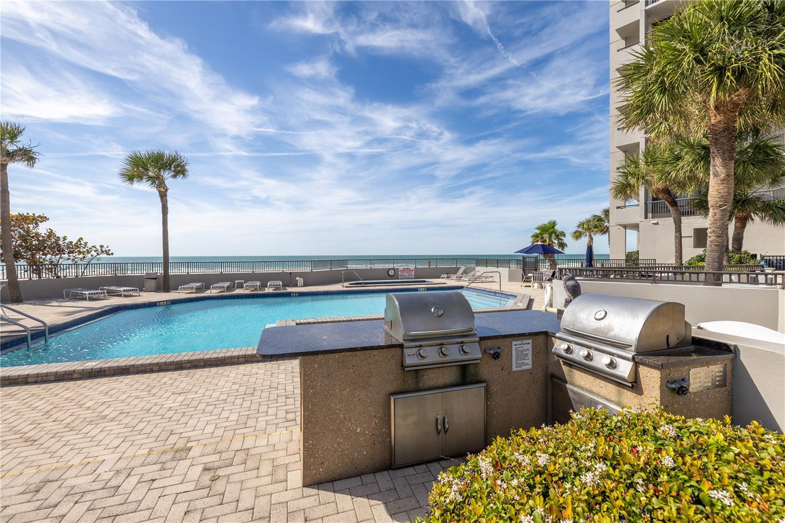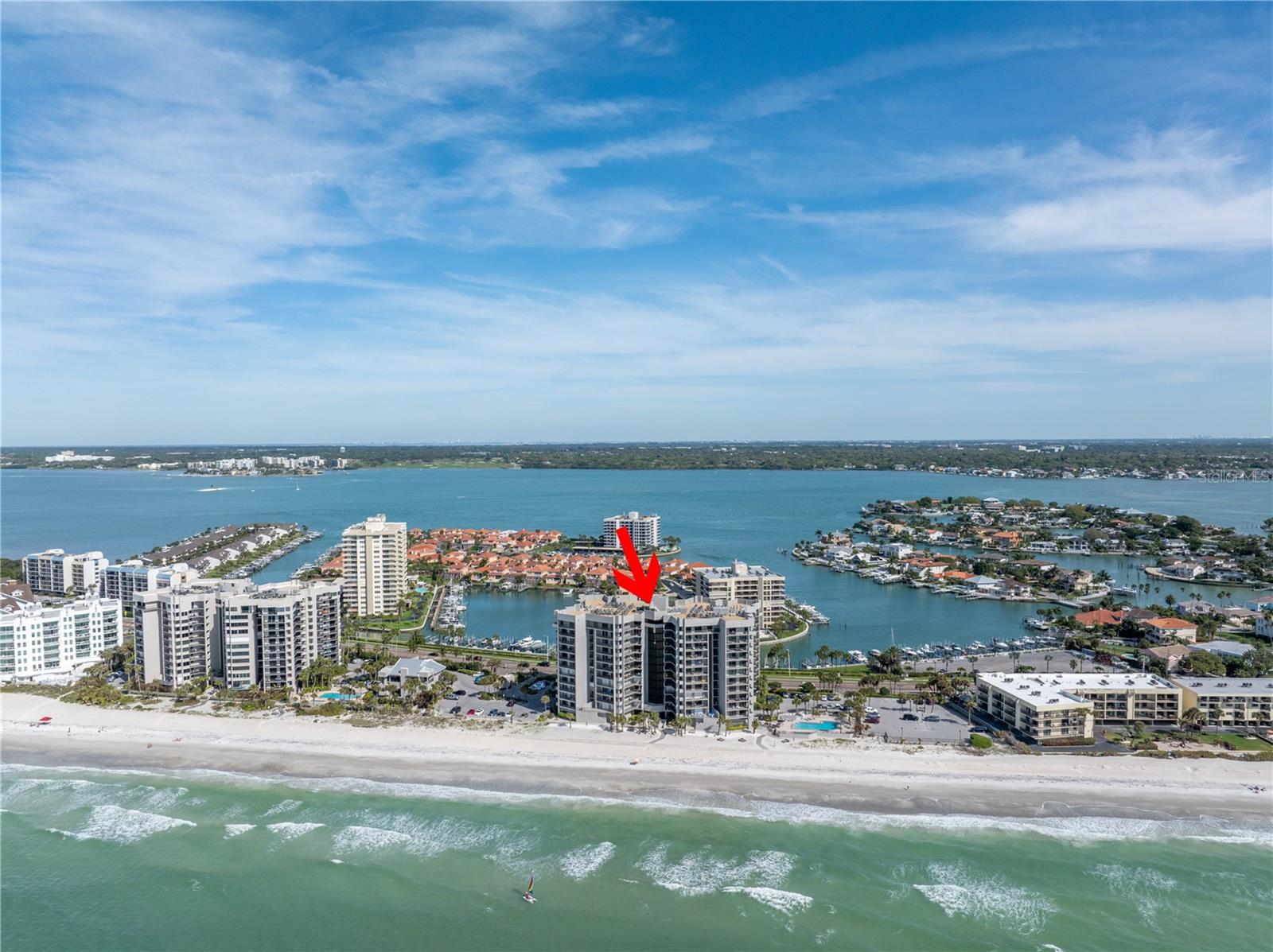 Imagine a luxurious high-rise condo Perched along the PRISTINE shores of the Gulf of Mexico and the Intracoastal Waterway, offering BREATHTKING Panoramic views of the Turquoise Gulf waters and the serene Intracoastal. With stunning water views from every room, this Exquisite 2-bedroom, 2-bathroom END unit at Dans Island is the epitome of coastal elegance. Step off the elevator into this bright, meticulously maintained third-floor residence, designed for contemporary comfort and effortless living. Enjoy spectacular sunrises and sunsets from the Expansive 65-foot wraparound balcony. The open and airy split floor plan is bathed in natural light, creating a warm and inviting ambiance for family and friends. This condo has been thoughtfully updated with fresh paint throughout, New shower in the Master bathroom, a brand-new 2024 HVAC system and New Electric Blinds throughout. The primary suite features direct water views, allowing you to wake up to boats gliding across the Gulf and fall asleep to the soothing sound of waves. Both bedrooms include custom California walk in Closets for optimal storage. The secondary oversized bedroom features your own private balcony, private workspace/office and a sizable walk-in closet. Additional highlights include a real wood-burning fireplace, Surround Sound throughout, Hurricane Shutters and a spacious laundry room with a full-size washer and dryer. Dans Island offers premier resort-style amenities, including direct beach access, a heated pool, heated jacuzzi an outdoor kitchen area with grill. The three story clubhouse features an elevator, a basketball/racquetball court, fitness center, full kitchen, billiards, wet bar and 2 large balconies. A 24-hour gatehouse for security and peace of mind. Whether you’re looking for a tranquil retreat or an entertainer’s dream, this exceptional condo delivers the best of coastal luxury living. Schedule your private showing today!