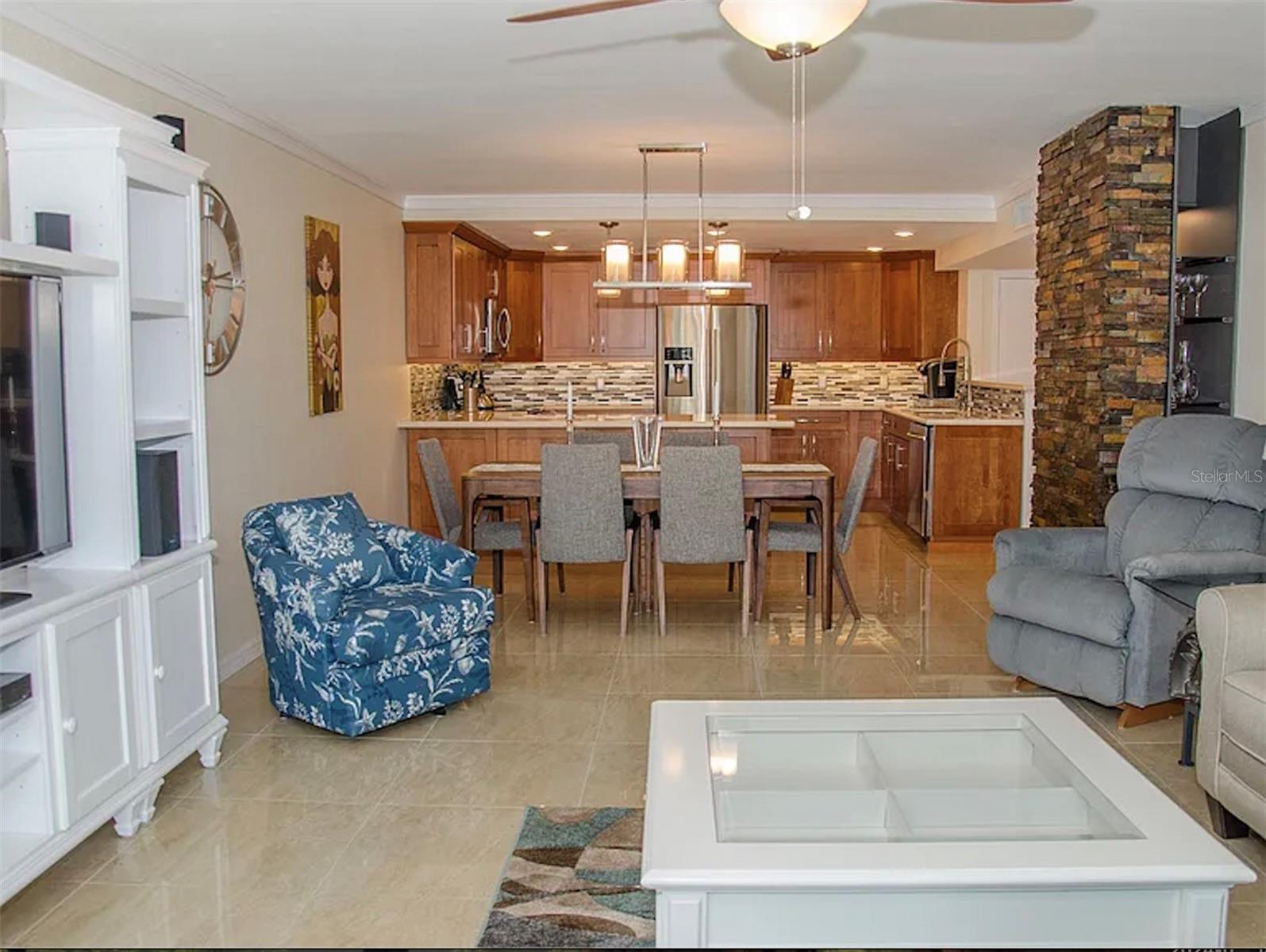Clearwater Beach. Extremely rare completely updated unit! Amazing beach views of Sand Key Beach and Intercoastal view.Sunsets and sunrises as you wish. Beautifully updated custom Thomasville Kitchen with quartz countertops, stainless appliances, and wine fridge. Open floor plan Living room/Kitchen/Dinning room . Large Master Bedroom suite overlooks the beach and it leads to a large oversized balcony with beach and intercoastal views. Beautiful oversized marble looking tile throughout all main areas. Wood looking tile in all bedrooms. Huge Guest Bedroom fits 2 Queen size beds and has a nice custom closet.No popcorn ceiling!.Hurricane impact sliding doors throughout.Very desirable indoor Washer and Dryer. This building is gated with a guarded entry. Building is secure with a keypad entry.Beautiful community Pool with beautiful beach views. Tiki area for sitting and relaxing by the beach or for an outdoor grill cookout. This unit comes with an assigned parking space and storage locker. Plenty of Guest parking as well. Great dining and shopping in a small walking distance. This beautifully updated unit is truly unique and will not last. If you snooze you will lose!