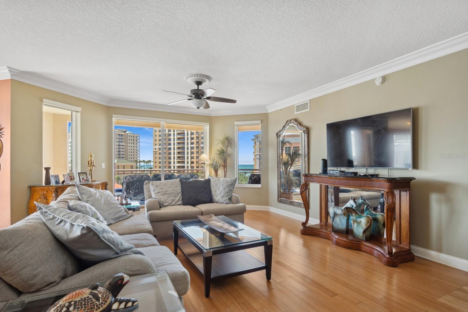 This Southwest facing 6th floor Avalon features 3 bedrooms and 2 ½ baths, with 1,870 sf. Condo has Bamboo flooring throughout (except Kitchen and Bathrooms). Condo clears the City Home rooftops with Memorial Causeway, Intracoastal Waterway, Beach and Gulf views. Balcony wraps around the Master Bedroom and Great Room. Belle Harbor has all the amenities found in a luxury condo complex, including Assigned Under Building Parking, Clubhouse, Fitness Center, Heated Pool and Spa, Lounge, Climate Controlled Storage and Social Room with a full kitchen and Billiards, 24 x 7 Manned Security and 65 slip Marina. Complex is located on 6 acres of prime Clearwater Beach waterfront near great restaurants, shopping and all Clearwater Beach activities. Developer room dimensions angle and are appropriate. Parking Space No. 1030 and Storage Bin No. 121.