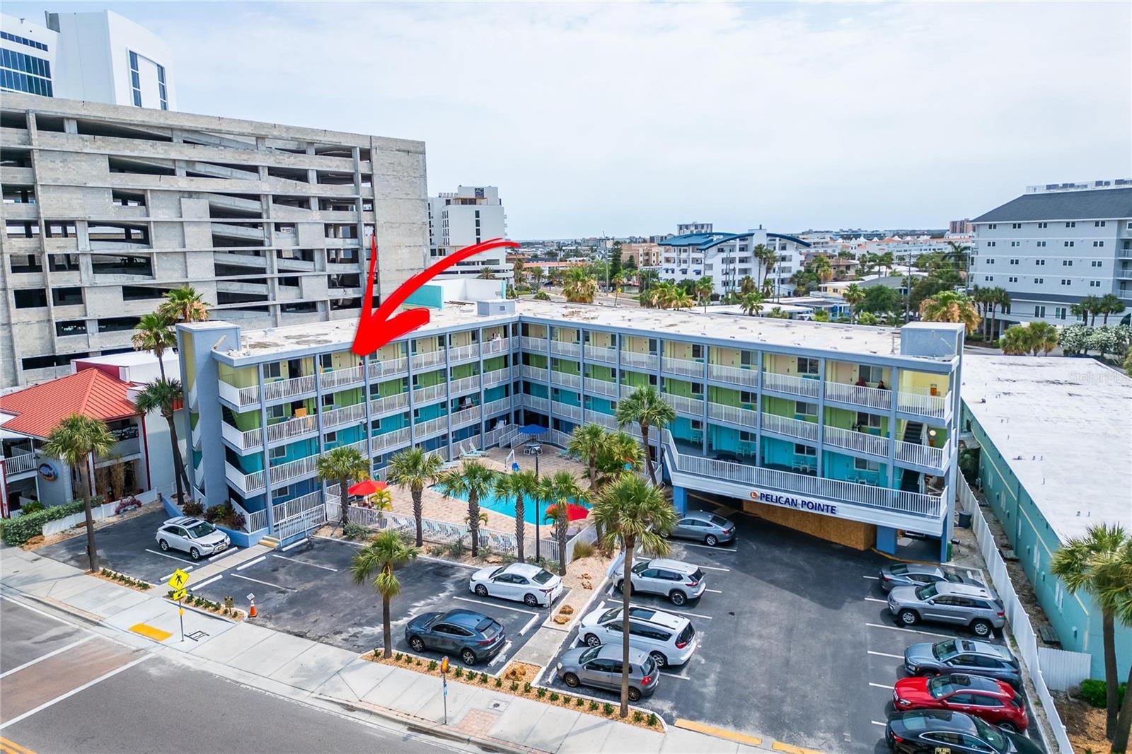 Investment Opportunity on Clearwater Beach! – Turnkey Vacation Rental! - Top floor unit with ocean views! Pelican Pointe Hotel and Resort is a 60-unit complex and is directly across the street from the white sands of Clearwater Beach, Florida. Unit #412 is a 386 sq ft studio divided into 3 spaces. This studio condo features 1 king bed, 2 twin beds, 1 bathroom and is being sold fully furnished, complete with linens, beach towels and beach toys. Located across from the Opal Sands on Gulfview Blvd, this unit enjoys a year-round rental demand. This property permits unrestricted rentals. This unit has a very strong and verifiable income history. It is ideal for first-time Airbnb owners. You may choose from onsite reservation management or remain with Ikon Collections - a Lux management company. The condo is newly renovated, featuring a kitchenette complete with a tall refrigerator/freezer, microwave, toaster, rice cooker and blender. Dishes and utensils allow for fine dining in your room. Enjoy two separate sitting areas. One section has a fold out wooden table that comfortably seats four. On the opposite side of the condo is a small breakfast nook that seats two with an elevated bar-height table and chairs. The sleeping area features a large 55” wall-mounted smart TV, a split king adjustable bed with under-bed lighting and massage function. The unit has a partial dividing wall affording privacy for families. In this space there are 2 twin sized ottomans that function as a couch by day, and twin beds or a king-sized bed at night. This area includes a 32" smart TV which allows gaming. The property has an elevator and multiple stairways. There is a newly improved heated pool, kiosk laundry room, and front desk - all of which have been recently renovated and updated. The property is convenient to Clearwater Beach, grocery stores, vacation destinations, bars and many restaurants and Pier 60 is also close by. There are parking spaces for owners or guests who choose to bring a vehicle. Typically parking placards are at no extra cost for guests. The HOA monthly fee includes electricity, cable, internet, pest control, common area insurance, water, sewer, pool, A/C and heating. The HOA is financially strong and smart. There are no large assessments at the present time. Do not miss this opportunity to own a profitable beachside investment in a prime location!