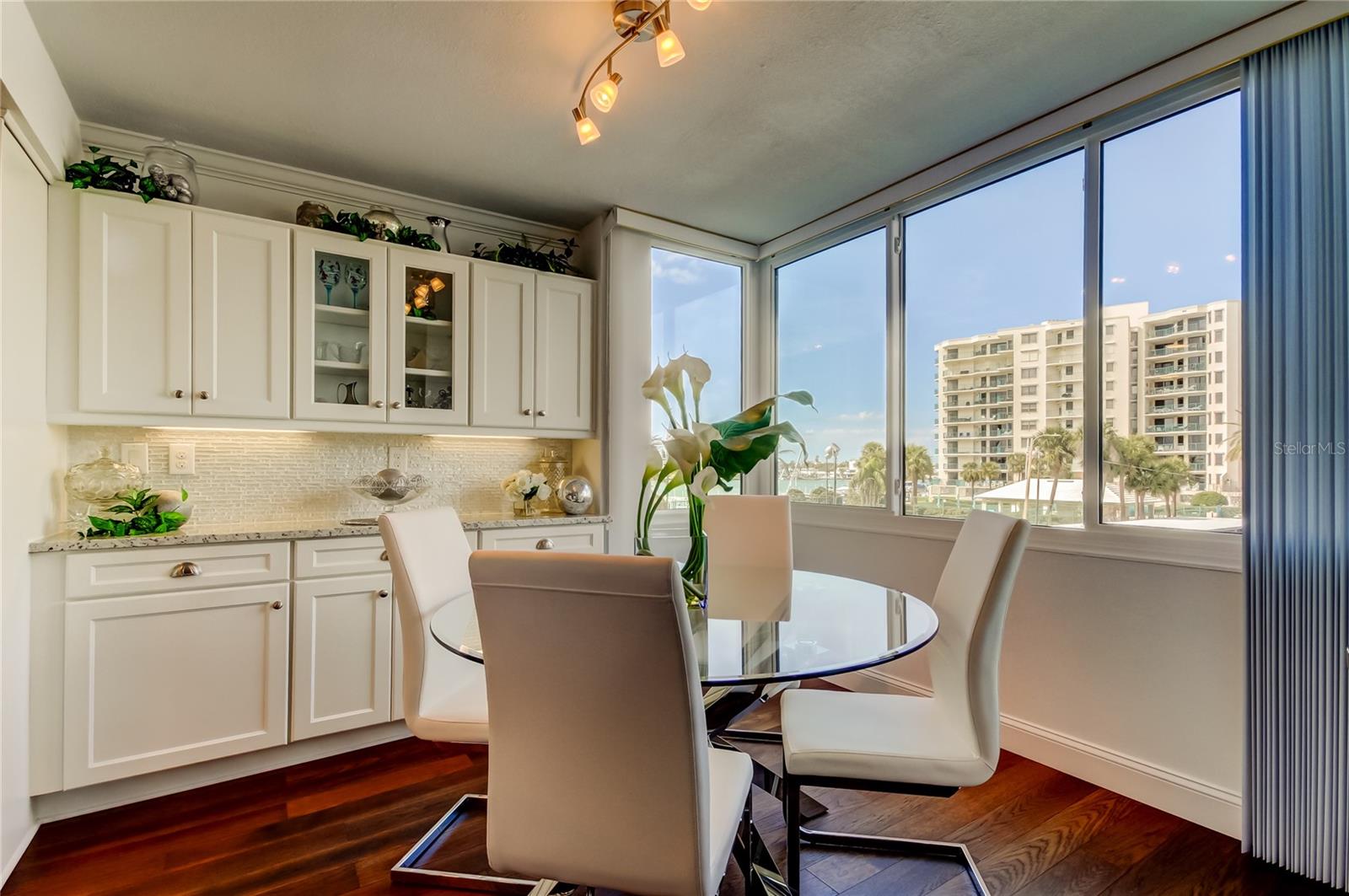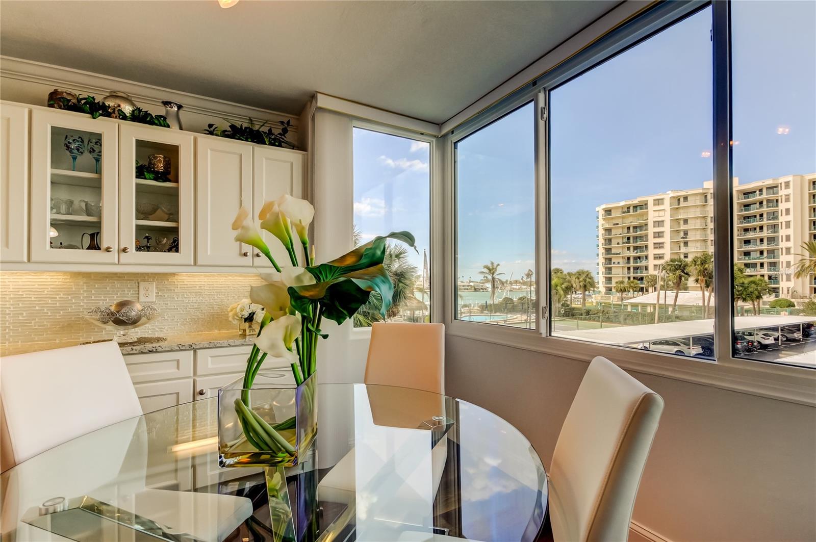 SOLD FURNISHED!!! with exception of some Accessories. Seller is RELOCATING!! ABSOLUTELY BREATHTAKING! COMPLETELY RENOVATED Including HURRICANE IMPACT WINDOWS with ATTENTION TO EVERY DETAIL. MIRS and SIRS INPECTIONS Completed (Inspection Findings - the Building is in EXCELLENT STRUCTURAL CONDITION and Been Maintained in an Above Average Manner!) Located in Beautiful Diamond Isle Community within Highly Sought After Island Estates! SPECTACULAR WATER VIEWS from Dining Room and Great Room with Floor to Ceiling Windows! DESIRABLE OPEN CONCEPT! ONE OF A KIND CUSTOM DESIGNED PLAN! Quality Walnut Engineered Wood Flooring Throughout Except Neutral Berber Carpet in Bedroom 2, and Large Tile in Both Bathrooms. Large Great Room Showcases an Amazing, Stylish Kitchen and Dining Area. White Wood Cabinetry with Soft Close Doors and Drawers, Lazy Susan and Pull Out Shelves with Granite Countertops and Stunning Iridescent Pearl Looking Backsplash in Kitchen Extending into Dining Area Creating a Custom Wall Buffet with Upper Cabinets Including 2 Glass Doors and Undercabinet Lighting! Open Breakfast Bar, Great for Entertaining seats 4 Barstools. Samsung Stainless Steel Appliances, include Side By Side Refrigerator! 5 Burner Glass Top Range, Built In Microwave and Dishwasher! Kitchen has Beautiful Tray Ceiling with Crown Molding PLUS off Great Room an OFFICE WORKSPACE! The Large Primary Bedroom EN SUITE has Bathroom with Wood Cabinets, Granite Countertop and Tub with Clear Glass Shower Enclosure Plus Large Closet with Built In Cabinets. Large 2nd Bedroom Suitable for 2 Queen Beds with Ample Closet Space! Bathroom 2 with Wood Cabinets, Granite Counter and Large Walk In Shower with Clear Shower Doors. Enlarged Laundry Complete FULL SIZE WASHER AND DRYER, Shelves and Hanging Area, Commercial Size Hot Water Heater with Special Plumbing for Water Softener! Walk In Pantry and Storage Area. PLANTATION SHUTTERS in Both Bedrooms, and Floor to Ceiling Blinds in Dining and Great Room Plus an Abundance of Extras. BRAND NEW A/C SYSTEM just installed! RESORT STYLE AMENITIES: LIGHTED PICKLEBALL AND TENNIS COURTS... WATERFRONT HEATED, SALT SYSTEM POOL & SPA... TIKI HUT...BBQ GRILL with Picnic Tables... COMMUNITY BOAT DOCK WITH BENCH TO WATCH SUNSET... Based on Availability, RENT A BOAT SLIP at Affordable Cost ($168.50/MO)...KAYAK Storage...2 GYMS with Baths...SAUNA and Lockers... BILLIARD ROOM...PING PONG... SHUFFLEBOARD... LIBRARY and Sitting Room...Large BANQUET ROOM WITH KITCHEN for Hosting Events and Holidays...GAME TABLE...BIKE STORAGE rooms... CAR WASH STATION...ASSIGNED COVERED PARKING SPACE (#47)...PET FRIENDLY (1 Dog or Cat up to 20 lbs.), with an Outside Special Dog Area. ISLAND ESTATES COMMUNITY is a Self Contained WATERFRONT PARADISE where you can Walk, Bike or Trolley to Restaurants, Groceries, Convenience Store, Ice Cream Parlor, Gas and Auto Repair, Nail Salons, Bank, UPS and 'FAMOUS CLEARWATER MARINE AQUARIUM"... PLUS" WORLD RENOWNED CLEARWATER BEACH known for WHITE SUGAR SAND AND BREATHTAKING SUNSETS, only a Walk, Bike or Trolley Ride Away! We have it all! Seller is RELOCATING! DON'T MISS THIS RARE OPPORTUNITY!