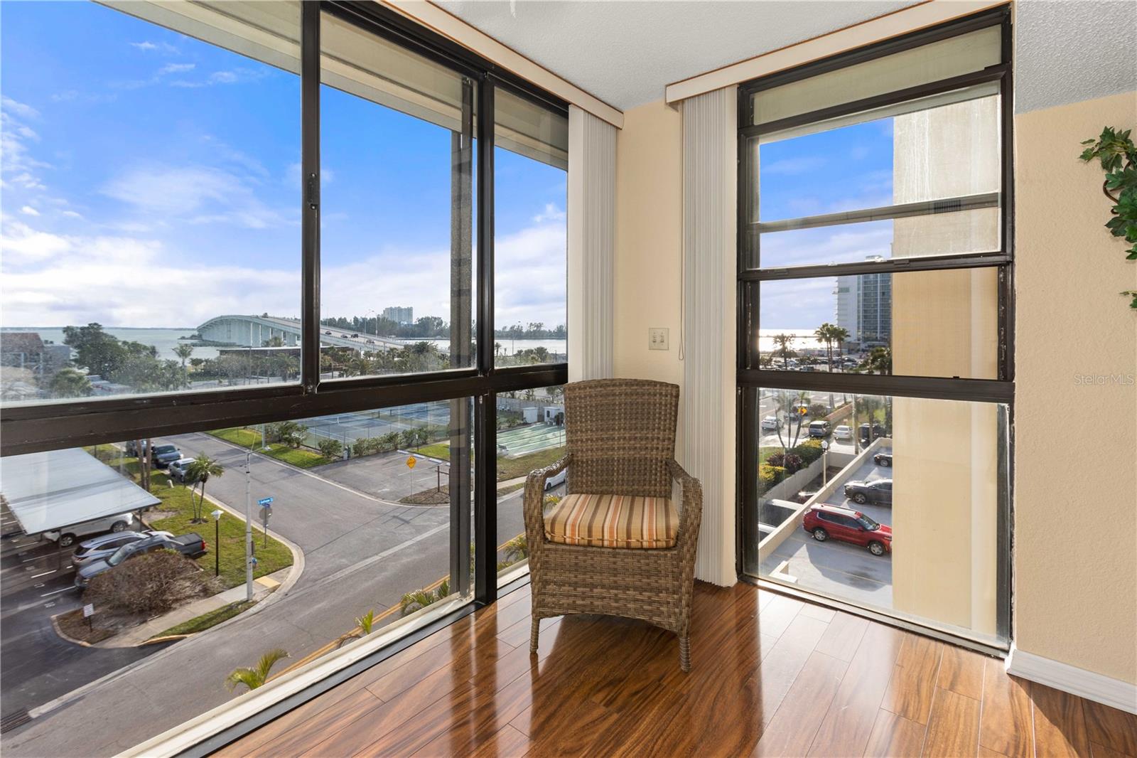 *A PRIVATE BEACH* community with 3 HEATED POOLS located on the southern tip of world-famous Clearwater Beach. 5th Floor super spacious South Facing condo for that WINTER WARMTH (over 1300sqft) with GORGEOUS everyday VIEWS of water and bridge FROM EACH ROOM. The forward VIEWS are towards the Beach/main Pool AND OF THE CHANNEL EACH BOAT MUST GO THROUGH. SO MUCH ACTIVITY TO WATCH! This 2bdrm 2 full bath FULLY TURNKEY condo has the assurance and protection of HURRICANE SHUTTERS and is encased in a secured building, with assigned covered parking (highly desired for convenience and security) BONUS>one of the 3 pools are right below your unit! As you enter this quite large, light n bright updated unit you will love the flow and open kitchen LOOKING DIRECTLY TOWARD THE WATER. The flooring is beautiful with laminate throughout. The OPEN KITCHEN includes a large pantry with additional refrigerator, solid wood cabinets, Granite countertops and all stainless appliances. NEW AC, NEW WASHER&DRYER. This location allows you to walk to many attractions along with fine and casual dining. The community offers an abundance of amenities, including heated pools and spa, with the newest additions being; NEW GAS GRILLS, Gas FIRE PIT, Corn Hole and NEW FURNITURE atop the PRIVATE BEACH. The true essence of Florida living! All building inspections have been completed per Florida law.