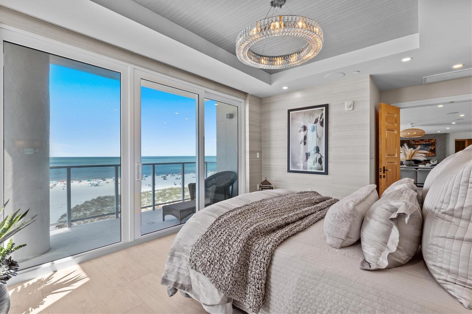 Experience the ultimate in luxury beachfront living at Pura Vida Clearwater Beach, where sophistication blends seamlessly with elegance. This exceptional 2,240-square-foot condominium features two bedrooms, a bonus room, an office, and two and a half bathrooms, designed with an open-concept layout that invites natural light and maximizes ocean views. The living, dining, and kitchen areas flow effortlessly into private glass-paneled balconies, providing the perfect setting for both entertaining and everyday relaxation. A harmonious mix of modern and traditional furnishings creates a transitional aesthetic that exudes livable luxury, while custom finishes and designer fixtures by Franco A. Pasquale Design Associates elevate the home's refined ambiance. The chef-inspired gourmet kitchen is a masterpiece, featuring top-of-the-line Miele and Sub-Zero appliances, sleek quartz countertops, custom cabinetry, a wine fridge, a gas stovetop, and a discreetly integrated dishwasher and refrigerator. The centerpiece is a striking waterfall quartz island with integrated deep sink, ideal for preparing meals while enjoying sweeping oceanfront views. After dinner, the primary bedroom provides a serene retreat with generous proportions, floor-to-ceiling windows, and a private balcony which is perfect for sunset gazing. Its en-suite spa-like bathroom boasts dual sinks, a separate water closet, a dedicated vanity, a soaking tub, and a glass-enclosed shower, all enhanced by a luxurious towel warmer. The walk-in closet is nothing short of a boutique-inspired haven, complete with illuminated wardrobe, chandelier, spacious jewelry cabinet, and a hidden washer and dryer with water filtration system, for ultimate convenience. For your out-of-town guests, the guest bedroom offers privacy and comfort with ocean views and its own en-suite bathroom. The oversized walk-in closet has been thoughtfully reimagined into a charming sleeping nook, featuring bunk beds and a custom mural of Clearwater Beach, ensuring every guest has a memorable stay. This property offers secure, gated access with two designated parking spaces that pre-wired for charging stations. A secure private elevator opens directly into the foyer, with an additional secure entry for added peace of mind. Practical features include a bike storage room, a designated beach locker, and a spacious air-conditioned storage unit. Situated in the heart of Clearwater Beach, this prime location offers easy access to pristine sands, vibrant dining experiences, boutique shopping, and recreational activities such as pickleball and a nearby playground. After a day exploring the best of Florida's renowned coastline, unwind by the oversized heated pool and spa, stay active in the well-appointed fitness center, or gather with friends in the inviting club room. Combining luxurious design, thoughtful functionality, and a prime beachfront location, this exceptional property is the ultimate coastal retreat. Contact us today to schedule your private showing and discover the unparalleled lifestyle awaiting you at Pura Vida Clearwater Beach.