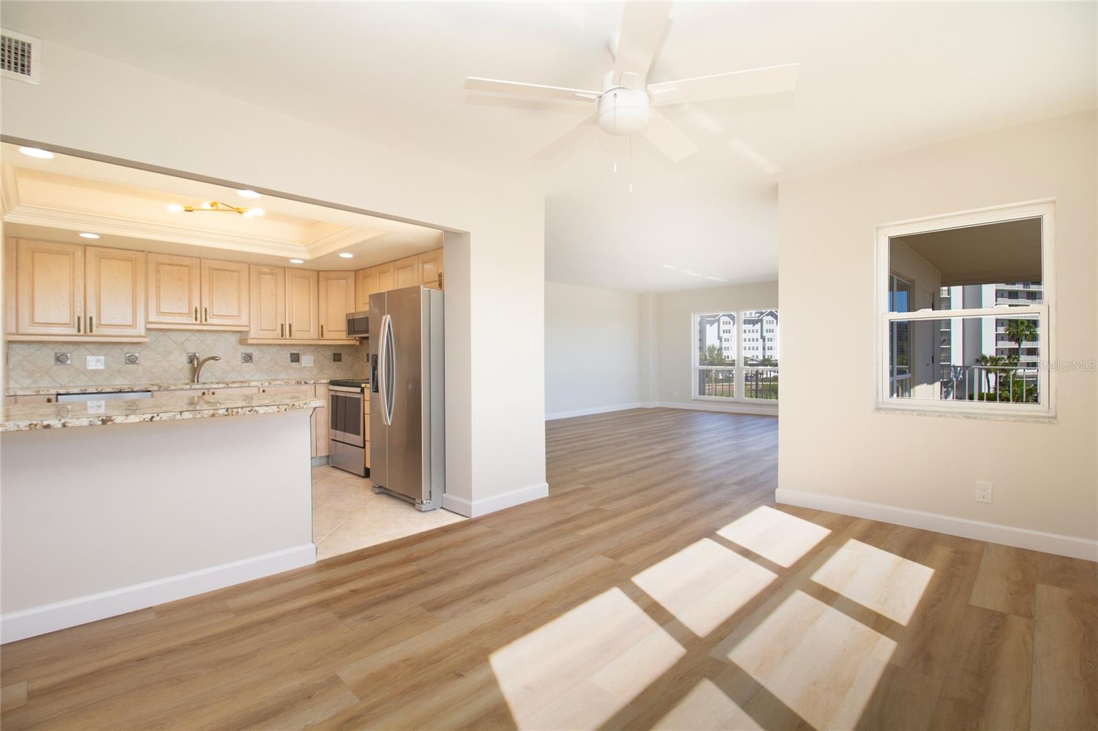 HUGE PRICE REDUCTION!*****MOTIVATED SELLER!*****ALL THE WORK HAS BEEN DONE!*****JUST RENOVATED, FROM HEAD TO TOE. BRAND NEW $30,000. HURRICANE IMPACT WINDOWS INSTALLED 05/08/2025. VACANT & MOVE-IN PERFECT!! JUST BRING YOUR TOOTHBRUSH AND BATHING SUIT. ALL NEW luxury vinyl flooring, 5 inch baseboards, electrical outlets and brand new closets and shelving. Popcorn ceiling was removed and the entire unit was freshly painted. This beautifully renovated 1,500 square foot home has 2 bedrooms, 2 bathrooms and an open concept. Fabulous views from every room, this 3rd floor condo overlooks the pool and Intracoastal waterways. Enjoy coffee or cocktails from your oversized wrap around balcony. The gourmet kitchen has solid wood cabinets, granite countertops, and stainless steel appliances. The primary bedroom is very spacious and the en-suite has a soaking tub and separate shower stall. A large walk-in closet with a beautiful vanity and dressing area complete the primary’s retreat. The Isle of Sand Key community is resort style living at its finest. The meticulously maintained community offers a clubroom, fitness center, saunas, billiards, library, and boat slips. The geothermal unit keeps the pool at a perfect temperature year-round. Gas grills and a covered picnic area makes for a great place for family and friends to relax. A beautiful sandy beach awaits and is just steps away. Assigned covered parking and 24 hour security is a plus. Great restaurants and shopping are close by. Easy commute to Tampa, or St. Pete/Clearwater Airport. Minutes to Clearwater Beach, Downtown Clearwater, Dunedin, or St. Petersburg and just 1 1/2 hours to Disney World. Come fall in love with this this MUST SEE gorgeous one of a kind condominium on Sand Key Beach. THIS IS YOUR PIECE OF PARADISE!!!!