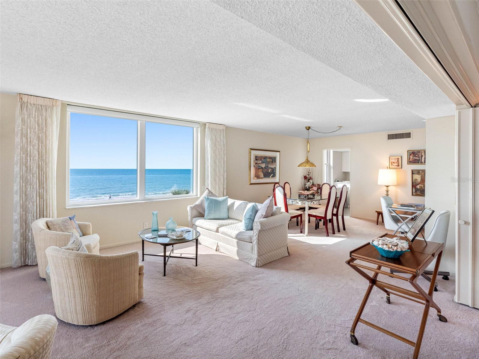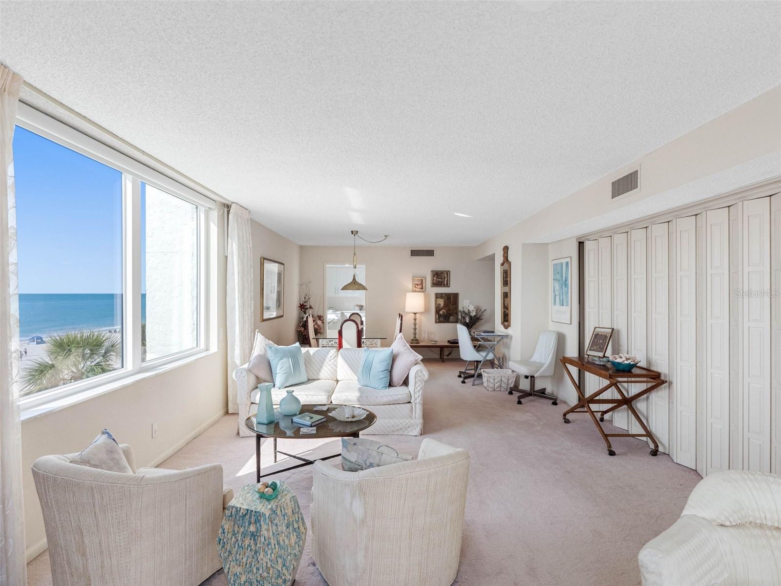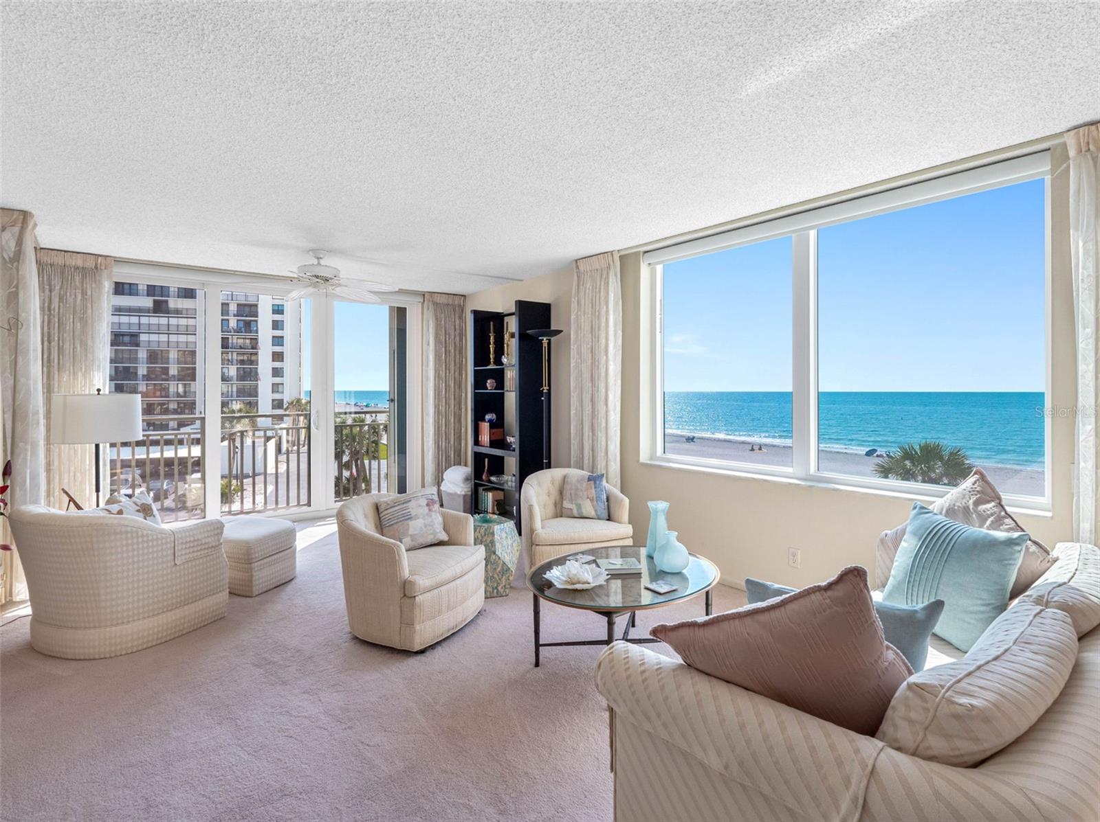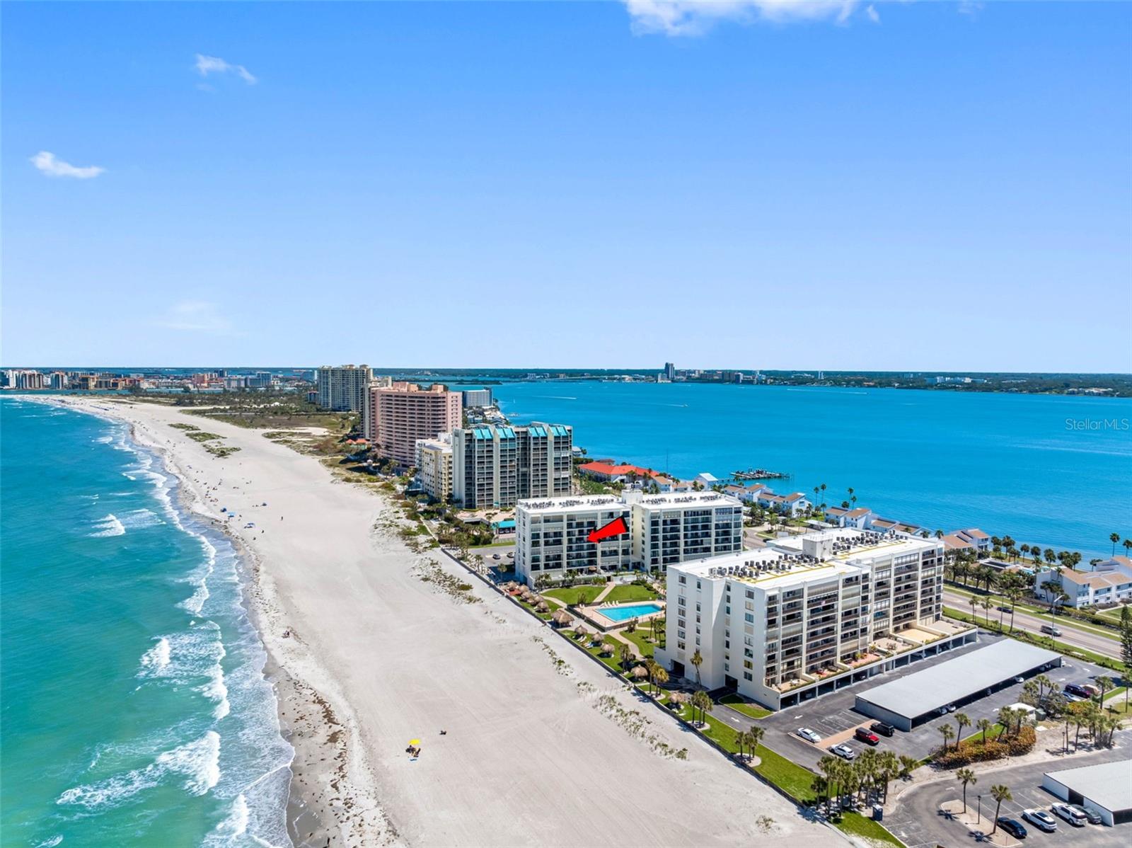 Wake up to the sound of waves and magnificent ocean views in this special beachfront property. Situated in an ideal oceanfront location in the heart of Sand Key, this RARELY AVAILABLE premium Southwest corner unit offers DIRECT UNOBSTRUCTED views of the beach and Gulf. Beautifully updated and MOVE-IN READY, this property exudes an elegant yet beachy ambiance. The floor plan is perfect for entertaining with plenty of room for family and friends and features a convertible wall that opens to expand the living area and upgraded floor to ceiling sliding doors that access the balcony from every room. All doors are also protected by hurricane shutters. The updated Chef's kitchen is the centerpiece with custom wood cabinets, Samsung appliances, brushed nickel hardware, glass backsplash, and gorgeous quarts countertops. The bedrooms are spacious with generous storage and the owner's suite includes a beautifully updated en-suite bath that features quartz countertop and upscale tile work and fixtures. Impeccably maintained, multiple upgrades include remote control Hunter Douglas solar shades, new HVAC in 2024, new water heater in 2020, new windows and doors in 2019, water softener in 2019 and new disposal with the kitchen renovation in 2019. This property also comes with 2 parking spaces including 1 premium under building space, and storage unit for your beach toys. South Beach II is an idyllic gated community that features lush tropical landscaping and a private, tranquil setting. Enjoy indescribable sunsets from the tiki huts and swim in the heated resort-style pool that overlooks the Gulf. Other amenities include a fitness room, clubroom for social gatherings, and onsite manager. Close to everything including fabulous dining, shopping, entertainment, and the Jolley Trolley! Call now to schedule your tour. Virtual tours are also available