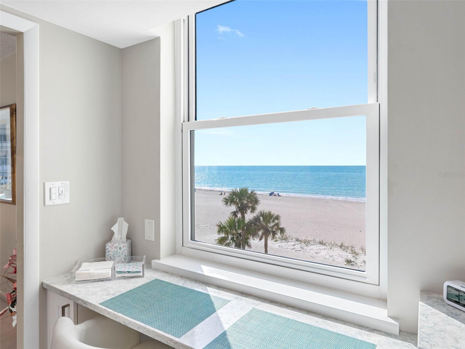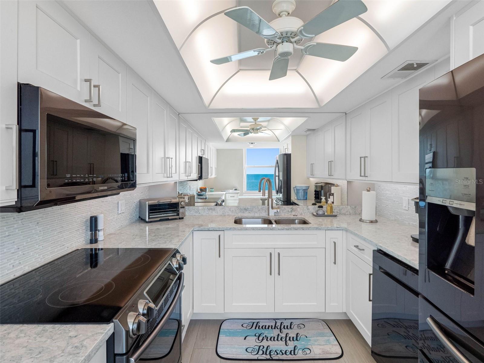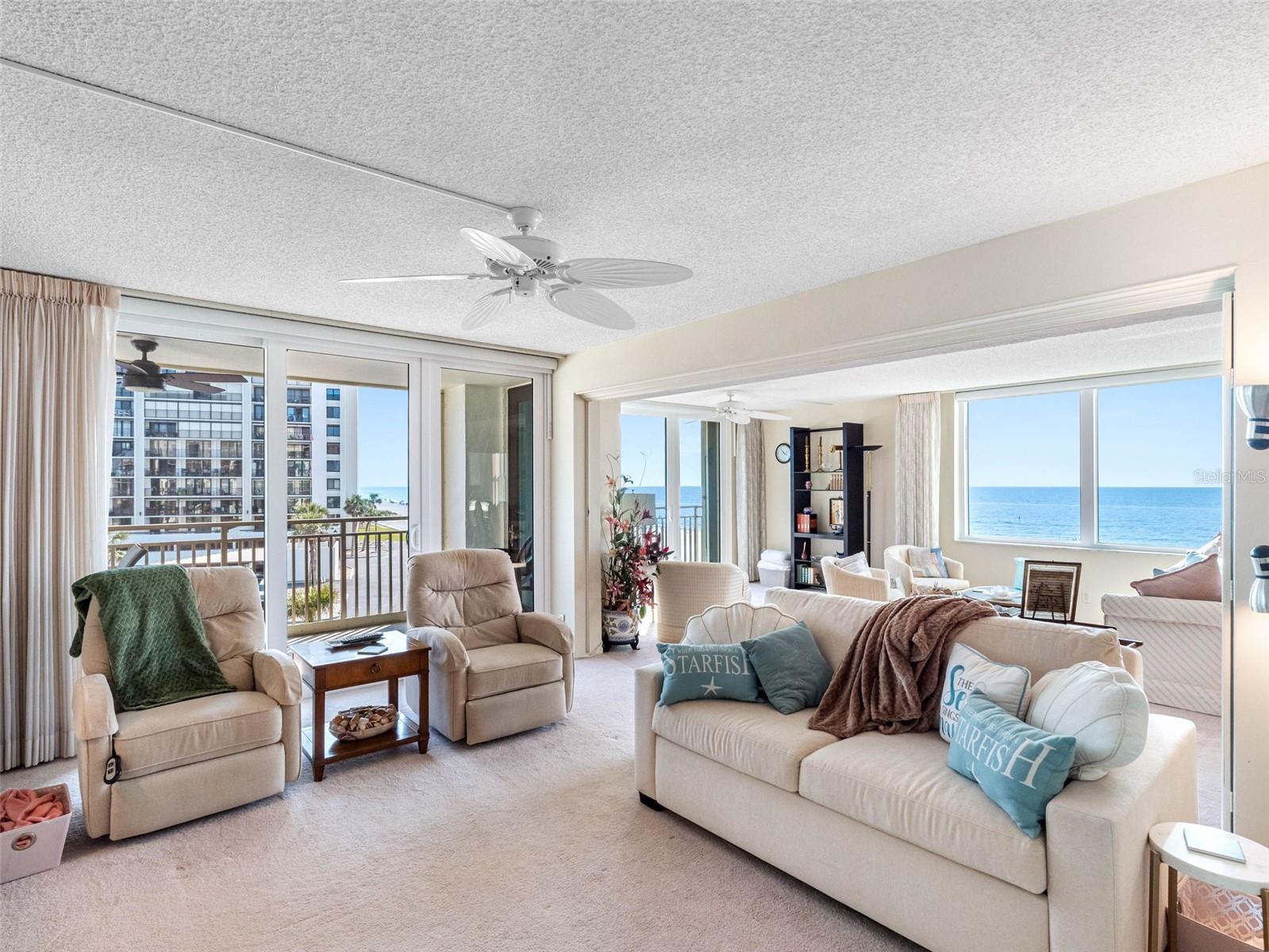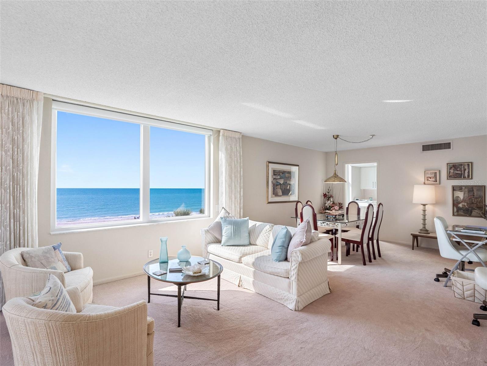 Wake up to the sound of waves and magnificent ocean views in this special beachfront property. Situated in an ideal oceanfront location in the heart of Sand Key, this RARELY AVAILABLE premium Southwest corner unit offers DIRECT UNOBSTRUCTED views of the beach and Gulf. Beautifully updated and MOVE-IN READY, this property exudes an elegant yet beachy ambiance. The floor plan is perfect for entertaining with plenty of room for family and friends and features a convertible wall that opens to expand the living area and upgraded floor to ceiling sliding doors that access the balcony from every room. All doors are also protected by hurricane shutters. The updated Chef's kitchen is the centerpiece with custom wood cabinets, Samsung appliances, brushed nickel hardware, glass backsplash, and gorgeous quarts countertops. The bedrooms are spacious with generous storage and the owner's suite includes a beautifully updated en-suite bath that features quartz countertop and upscale tile work and fixtures. Impeccably maintained, multiple upgrades include remote control Hunter Douglas solar shades, new HVAC in 2024, new water heater in 2020, new windows and doors in 2019, water softener in 2019 and new disposal with the kitchen renovation in 2019. This property also comes with 2 parking spaces including 1 premium under building space, and storage unit for your beach toys. South Beach II is an idyllic gated community that features lush tropical landscaping and a private, tranquil setting. Enjoy indescribable sunsets from the tiki huts and swim in the heated resort-style pool that overlooks the Gulf. Other amenities include a fitness room, clubroom for social gatherings, and onsite manager. Close to everything including fabulous dining, shopping, entertainment, and the Jolley Trolley! Call now to schedule your tour. Virtual tours are also available