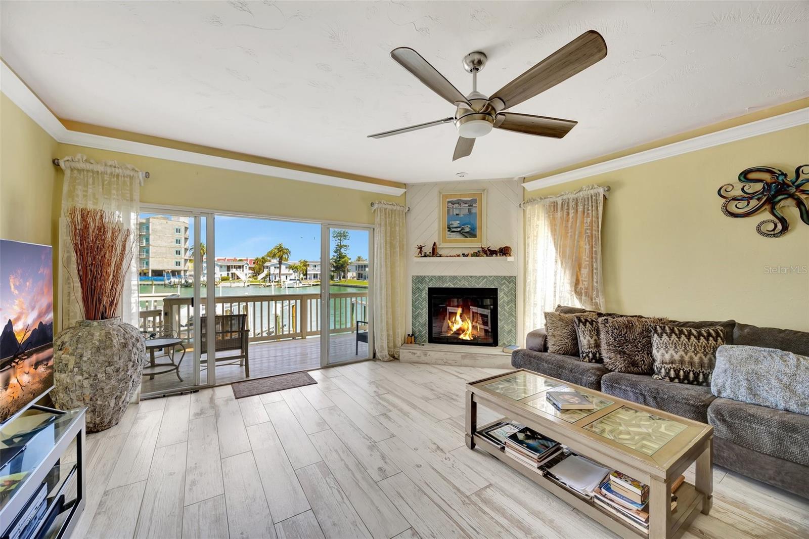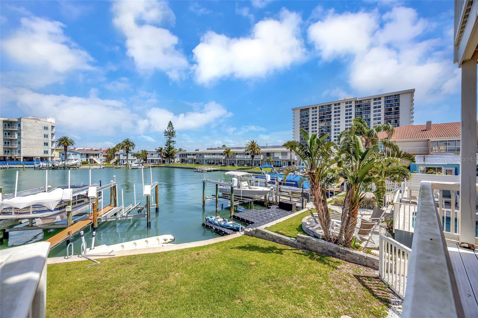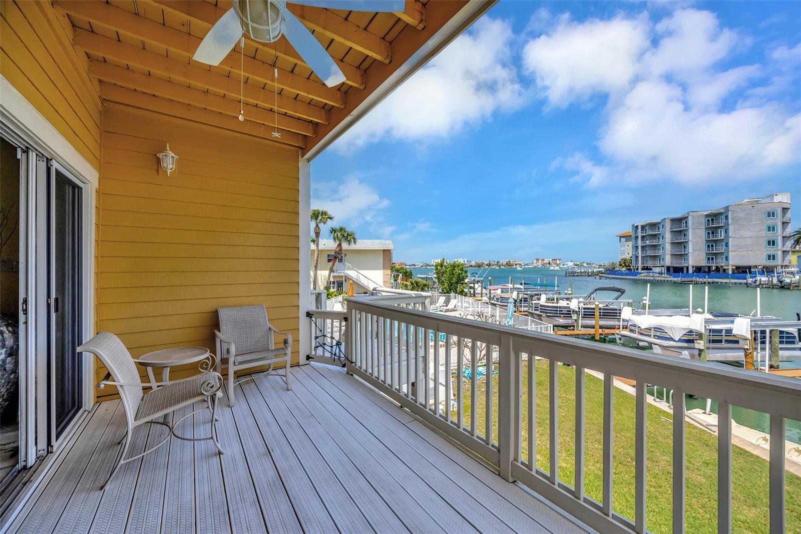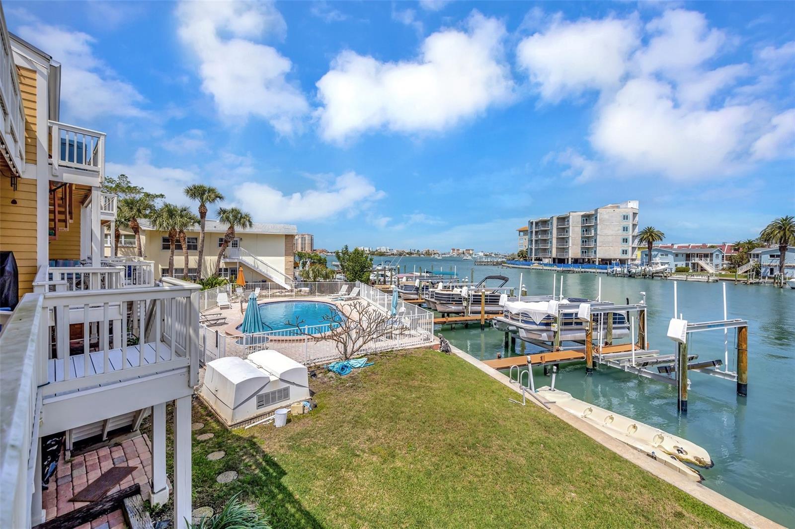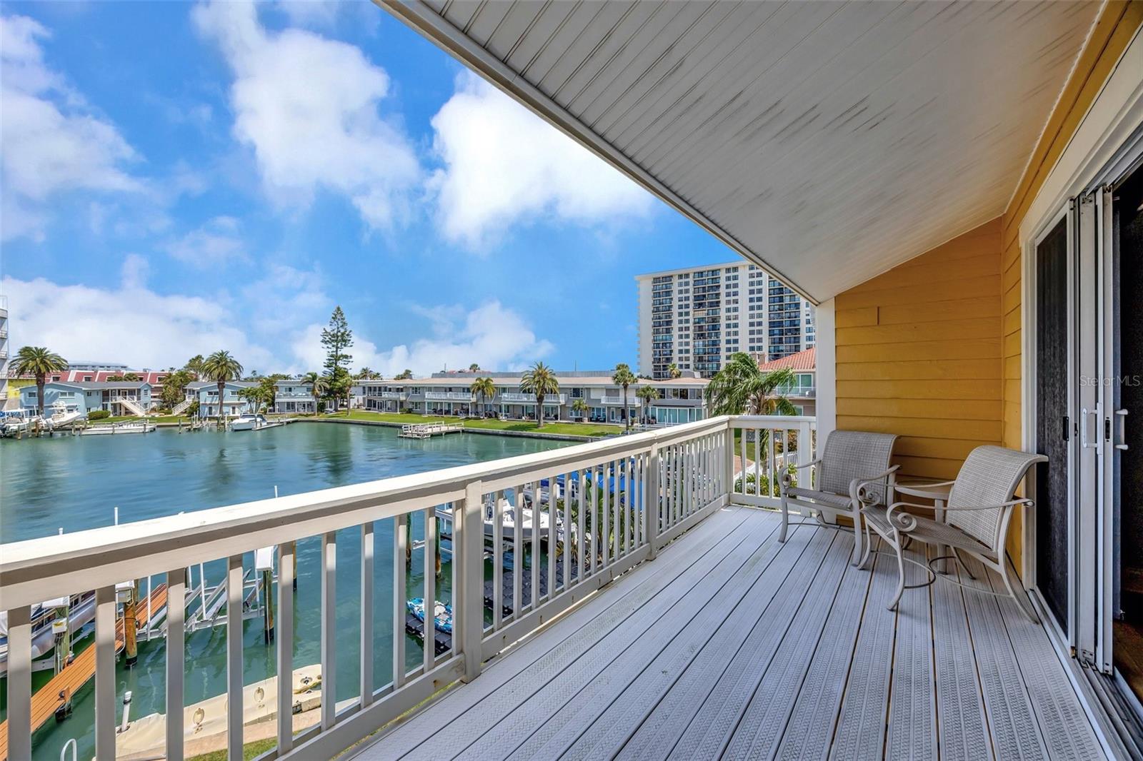 INCREDIBLE OPPORTUNITY!! MOTIVATED SELLER - NEW ROOF, NEW GUTTERS, NEW STUCCO, AND DRYWALL COMING SOON WITH SPECIAL ASSESMENT 36k IS NEGOTIALBLE. Special Assessments was approved in April 2025 and pays for a brand new roof 2026, new stucco, painting, Termite tenting (2025) and new gutters. (Current roof is 2005) DEEDED BOAT SLIP, AND THE BEST WATER VIEW IN THE COMPLEX! BEST DEAL IN ISLAND ESTATES! Discover coastal living at its finest with this remarkable three-story townhouse, featuring a private dock and a 15,000 lb boat lift. Just moments from the Gulf, this prime location offers effortless access to world-class fishing, stunning Gulf Coast beaches, and the Intracoastal Waterway. Step inside your new home through a new striking decorative hurricane-impact front door and be greeted by approximately 360 sq ft of air-conditioned flex space on the first level—perfect as a home office, fourth bedroom, play area, or extra storage. This versatile space, not included in the main square footage, is awaiting your personal design to finish out this first level into whatever you desire. The oversized two-car garage offers tandem parking, plus an additional space right out front. Second Level: Elevated Living & Entertaining. The heart of this home is a spacious, open-concept second floor, where a large kitchen seamlessly flows into the living and dining areas. Sleek granite countertops, a dry bar, with beautiful, stainless appliances create an entertainer’s dream, while rich wood-look tile floors exude warmth and elegance. A guest bedroom with plantation shutters opens to a generous balcony, perfect for soaking in the views. The living room’s captivating feature wall highlights a wood-burning fireplace, adding ambiance and charm. Enjoy the serene waterscape from the balcony, accessed through patio doors with wispy sheers that allow sunsets to become part of your daily routine. Annual homeowners insurance is approximately $2300 a year and all other insurances are part of the monthly HOA fees. Third Level: Luxurious Private Retreat. The primary bedroom on the third level is nothing short of spectacular, showcasing a vaulted ceiling, gorgeous hardwood floors, and patio doors that lead to a third balcony, the ultimate vantage point for breathtaking views. The en-suite bath features dual above mount – glass sinks and a walk-in shower, while the dream closet, offers abundant storage. Also on this floor is a second bedroom with hardwood floors, and brand new 2nd new bath and walk in shower (2023) and patio doors leading to a fourth balcony---yes, a fourth! A conveniently located laundry closet includes newer washer and dryer units, both of which convey. Premium Upgrades & Unmatched Location. Nearly every room is accented by crown molding, enhancing the home's timeless elegance. Enjoy peace of mind with two new HVAC systems (2024-replaced after the Hurricanes and outside units are elevated), 2024 New Water Heater and an Alert360 Security system with camera, motion and flood sensors. New drywall, doors and repairs ($13K in 2025) on situated in the highly sought-after Island Estates community, you’ll love being just a short stroll from Publix, restaurants, and one of the Top 10-Rated Beaches in the U.S. Don’t miss your chance to own this meticulously upgraded townhouse, your gateway to unparalleled coastal living!