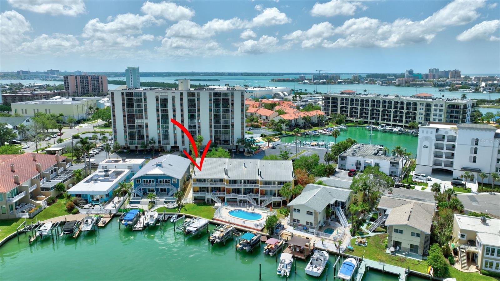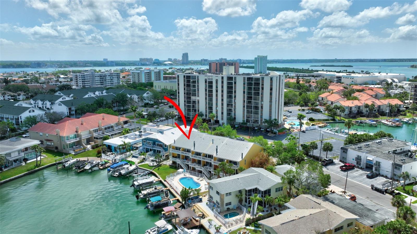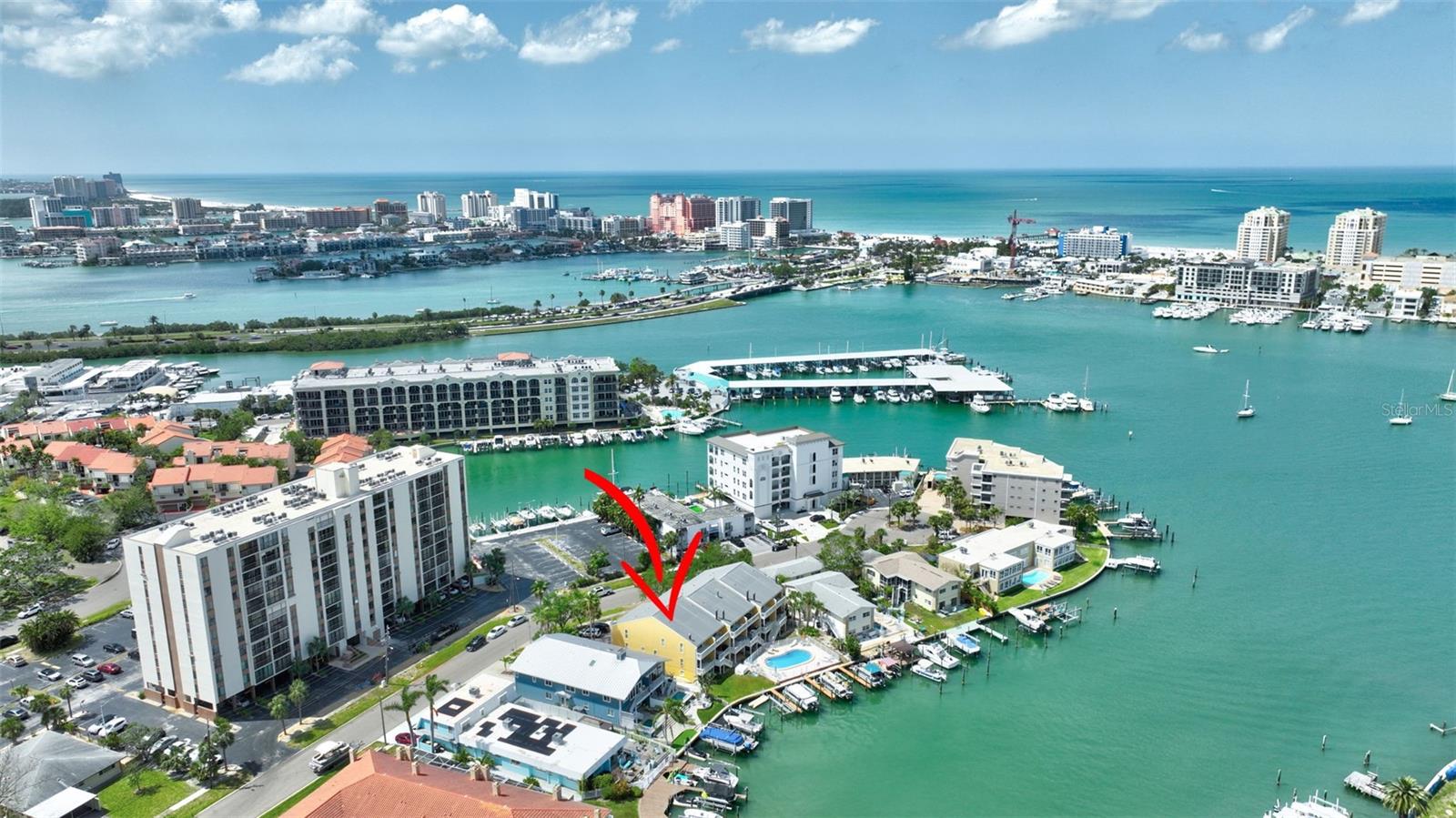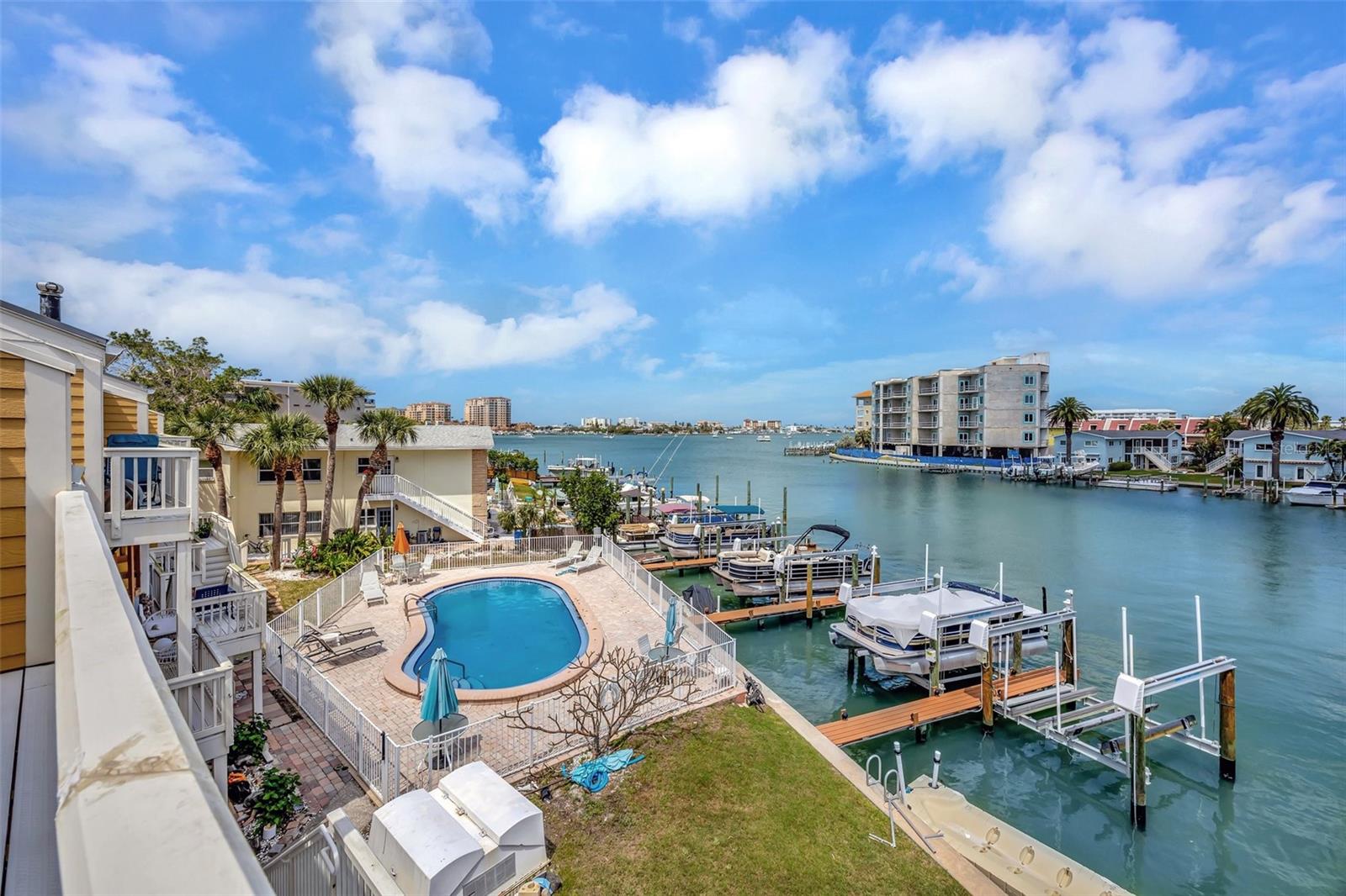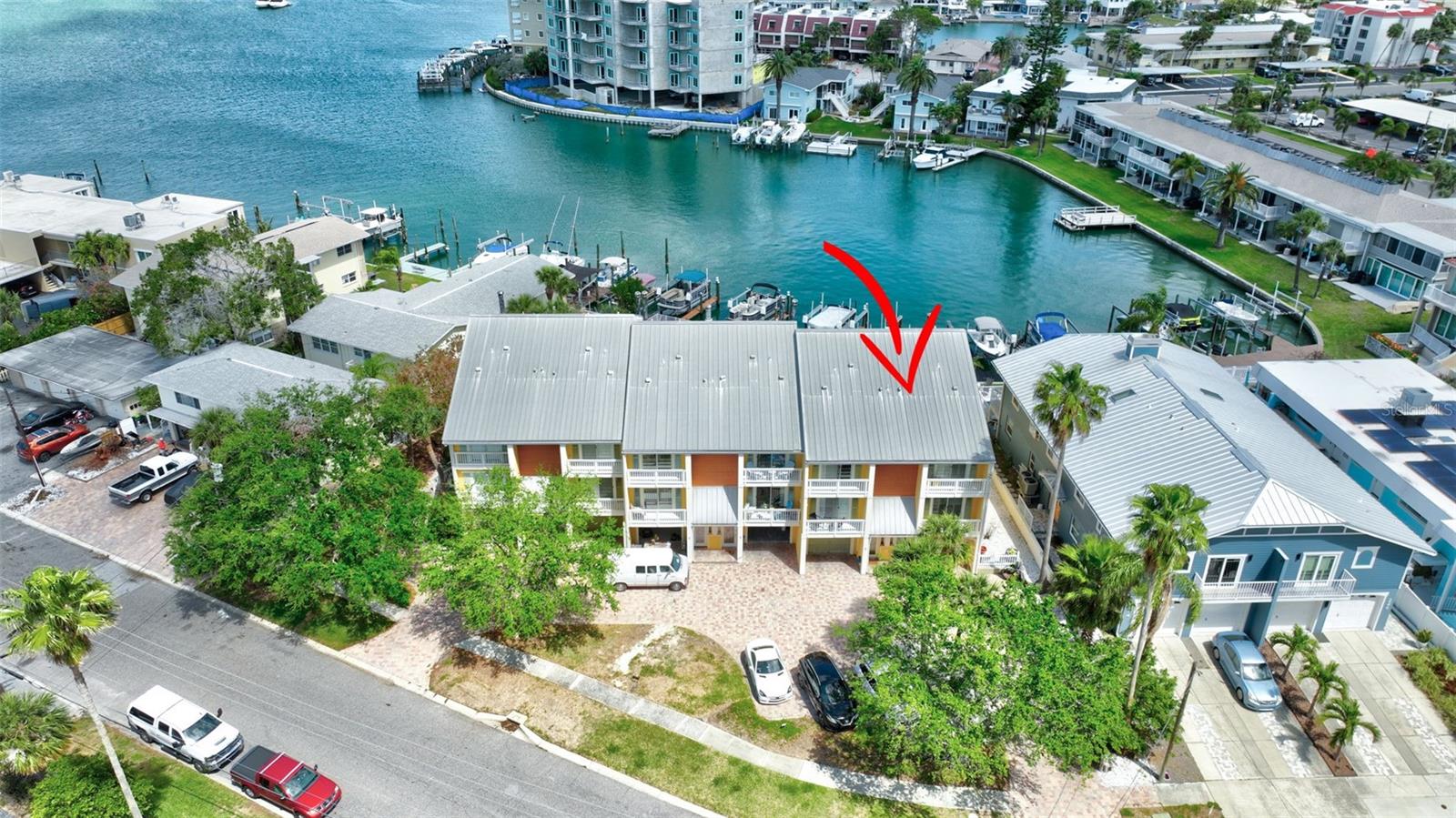 INCREDIBLE OPPORTUNITY!! MOTIVATED SELLER - NEW ROOF, NEW GUTTERS, NEW STUCCO, AND DRYWALL COMING SOON WITH SPECIAL ASSESMENT 36k IS NEGOTIALBLE. Special Assessments was approved in April 2025 and pays for a brand new roof 2026, new stucco, painting, Termite tenting (2025) and new gutters. (Current roof is 2005) DEEDED BOAT SLIP, AND THE BEST WATER VIEW IN THE COMPLEX! BEST DEAL IN ISLAND ESTATES! Discover coastal living at its finest with this remarkable three-story townhouse, featuring a private dock and a 15,000 lb boat lift. Just moments from the Gulf, this prime location offers effortless access to world-class fishing, stunning Gulf Coast beaches, and the Intracoastal Waterway. Step inside your new home through a new striking decorative hurricane-impact front door and be greeted by approximately 360 sq ft of air-conditioned flex space on the first level—perfect as a home office, fourth bedroom, play area, or extra storage. This versatile space, not included in the main square footage, is awaiting your personal design to finish out this first level into whatever you desire. The oversized two-car garage offers tandem parking, plus an additional space right out front. Second Level: Elevated Living & Entertaining. The heart of this home is a spacious, open-concept second floor, where a large kitchen seamlessly flows into the living and dining areas. Sleek granite countertops, a dry bar, with beautiful, stainless appliances create an entertainer’s dream, while rich wood-look tile floors exude warmth and elegance. A guest bedroom with plantation shutters opens to a generous balcony, perfect for soaking in the views. The living room’s captivating feature wall highlights a wood-burning fireplace, adding ambiance and charm. Enjoy the serene waterscape from the balcony, accessed through patio doors with wispy sheers that allow sunsets to become part of your daily routine. Annual homeowners insurance is approximately $2300 a year and all other insurances are part of the monthly HOA fees. Third Level: Luxurious Private Retreat. The primary bedroom on the third level is nothing short of spectacular, showcasing a vaulted ceiling, gorgeous hardwood floors, and patio doors that lead to a third balcony, the ultimate vantage point for breathtaking views. The en-suite bath features dual above mount – glass sinks and a walk-in shower, while the dream closet, offers abundant storage. Also on this floor is a second bedroom with hardwood floors, and brand new 2nd new bath and walk in shower (2023) and patio doors leading to a fourth balcony---yes, a fourth! A conveniently located laundry closet includes newer washer and dryer units, both of which convey. Premium Upgrades & Unmatched Location. Nearly every room is accented by crown molding, enhancing the home's timeless elegance. Enjoy peace of mind with two new HVAC systems (2024-replaced after the Hurricanes and outside units are elevated), 2024 New Water Heater and an Alert360 Security system with camera, motion and flood sensors. New drywall, doors and repairs ($13K in 2025) on situated in the highly sought-after Island Estates community, you’ll love being just a short stroll from Publix, restaurants, and one of the Top 10-Rated Beaches in the U.S. Don’t miss your chance to own this meticulously upgraded townhouse, your gateway to unparalleled coastal living!