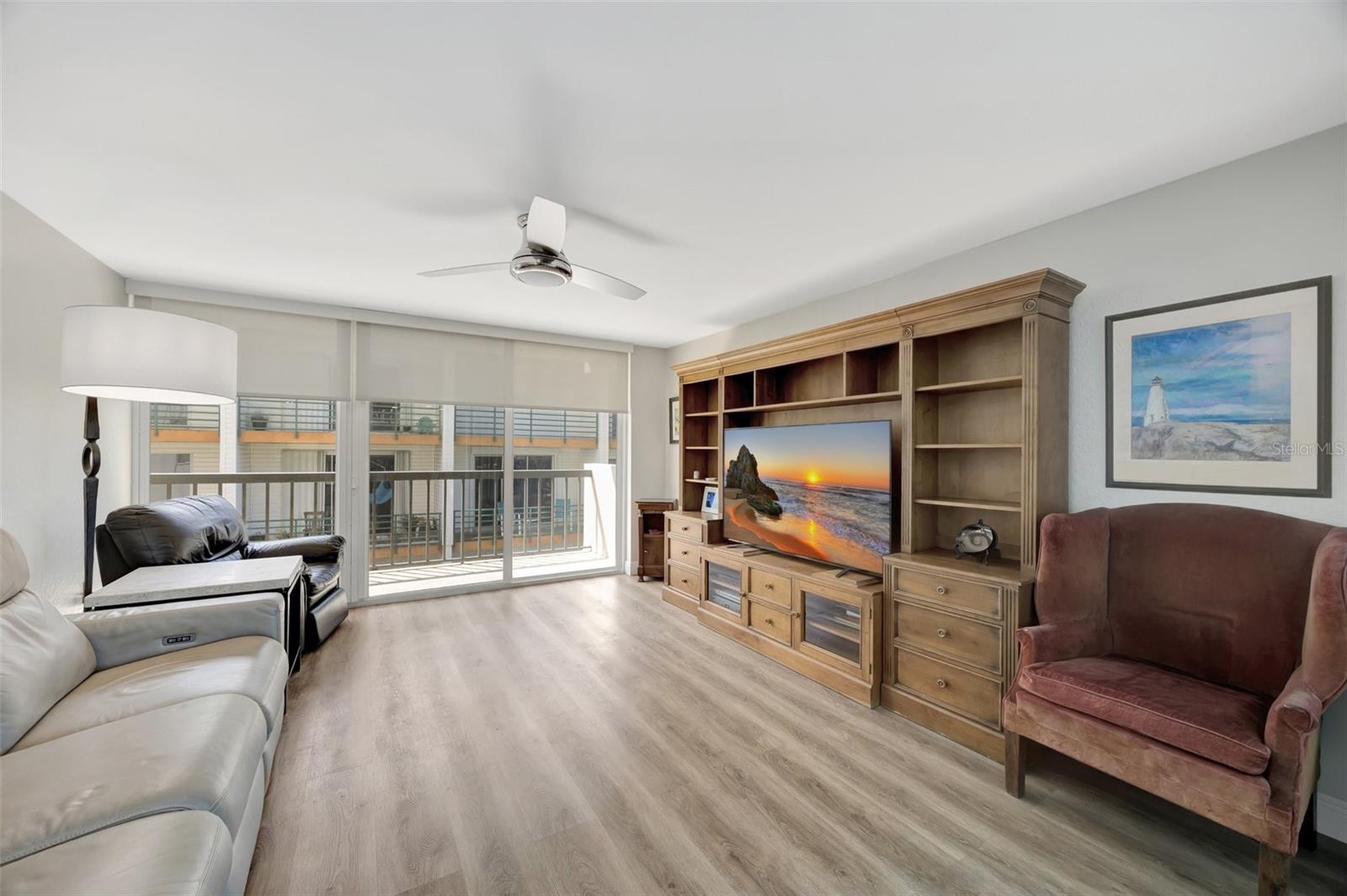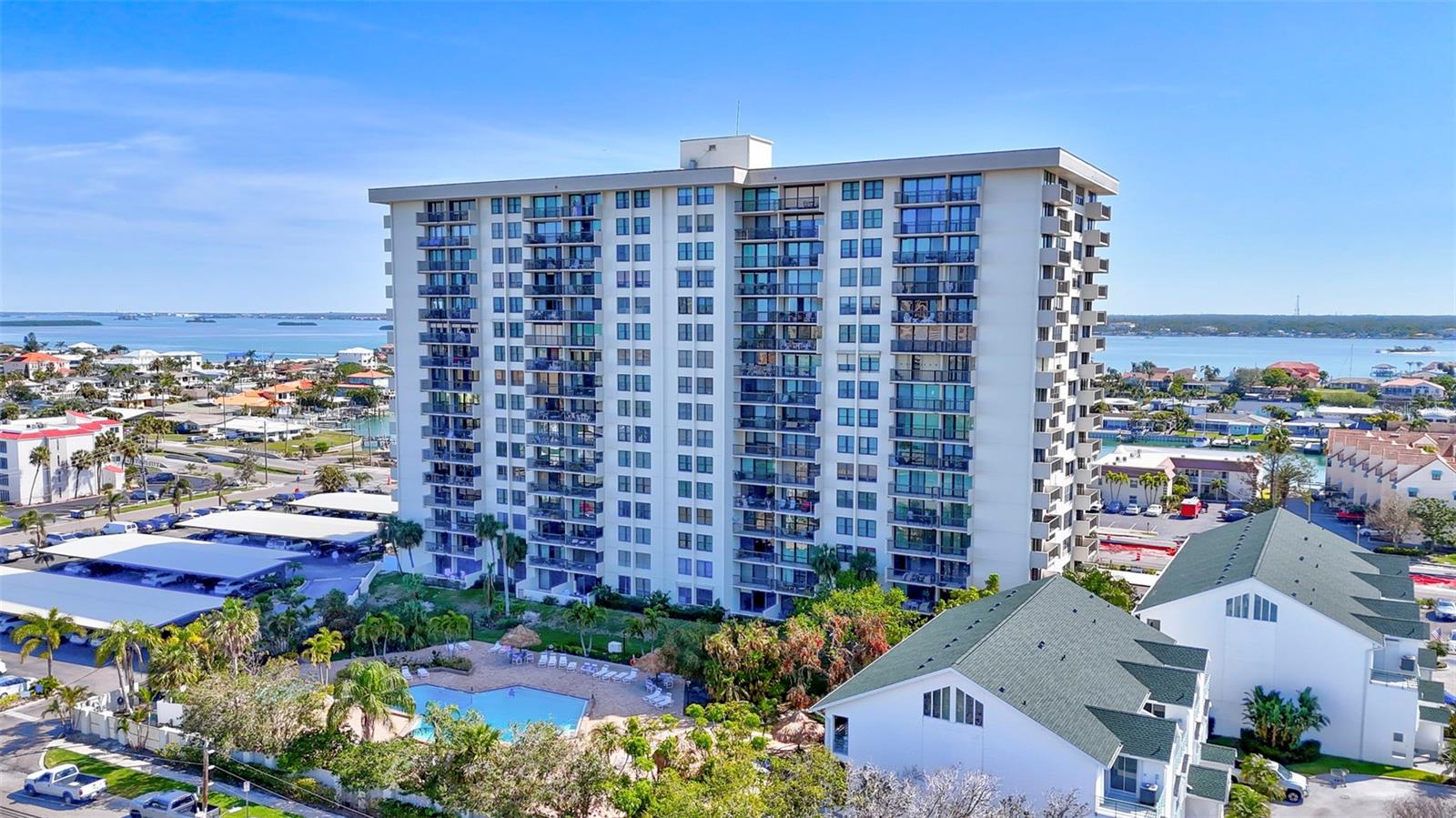 Welcome to this beautifully renovated two-bedroom, two-bathroom condo, located in Clipper Cove, the highly sought-after Island Estates community! PRIVACY! PRIVACY! PRIVACY! This spacious corner unit features an open-concept layout with soaring 9-foot ceilings, new flooring throughout, and abundant natural light that creates a bright and airy atmosphere. The remodeled kitchen is a families dream, with a wall of cabinetry, stainless steel appliances, a breakfast bar, recessed lighting and an adjacent dining area to accommodate meals with friends and family. The living room flows seamlessly to 3 private balconies, each equipped with NEW HURRICANE RATED SLIDERS where you can enjoy relaxing greenery and overlook the pool! The master suite boasts a freshly designed bathroom with plenty of closet space for all of your needs. For added convenience, the unit includes an in-home washer and dryer and The 2nd bedroom can also be used as an office/workout room, ensuring you have everything you could ask for right within your unit. Additionally, this unit is only a few steps from the side building exit and entrance, avoiding the elevator and making going to and from your condo a breeze. The community offers resort-style amenities including a large, heated pool and spa, BBQ grills, tiki huts, and a picnic area for outdoor enjoyment. Additionally, you'll get access to a fitness center, sauna, showers, clubhouse with a kitchen, pool table, and much more! Want a beach day? Catch the jolly trolley out front for a convenient ride to Clearwater Beach! Island Estates is home to the Clearwater Aquarium, popular Island Way Grill, and a private Publix grocery store right at your fingertips! Schedule a showing, enjoy the Island lifestyle today
