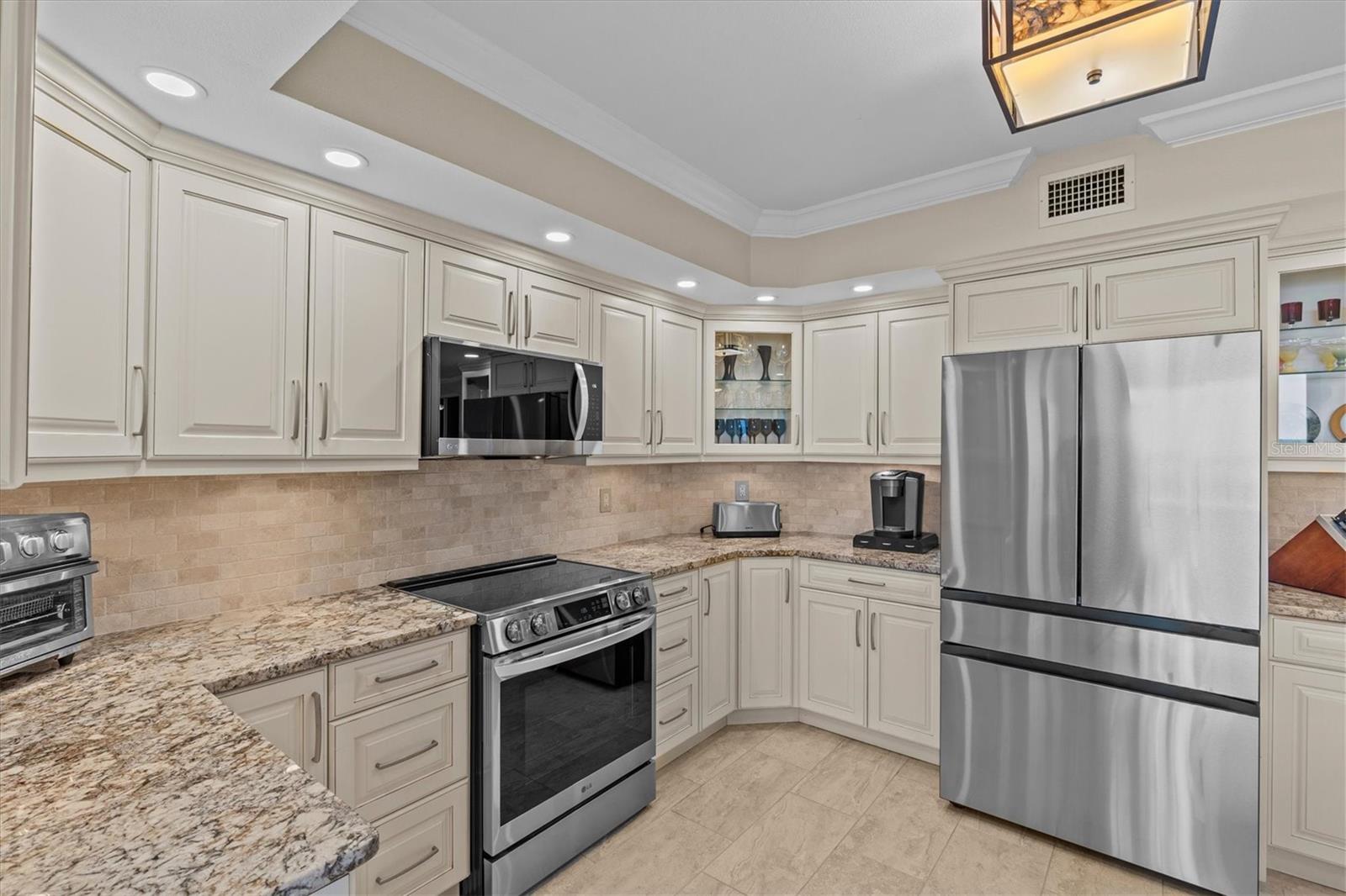 The View!!! Stunning Southeast Private Corner Unit Condo! 8th Floor Water Views to the Gulf and Intracoastal and Water Views to the East, of Island Estates Canals, to Downtown Clearwater and Dunedin too! Nothing to do here! Exceptionally Updated, Redesigned from the Kitchen to the Primary Suite! Rare find, Light and Bright with Beautiful Tile Floors throughout and 2 Balconies of Unobstructed Views from 4 sets of Floor to Ceiling Sliders totaling over 40 ft. feet of Balcony. Features include 2025 Bosch Dishwasher, 2024 LG Induction Range 2024 LG 4 Door French Door Refrigerator with internal ice and water. 2024 Hot Water Heater and 2023 Lenox AC System. Custom Cabinets, Granite Tops in Kitchen and both Baths. Primary Suite includes oversized Windows, Slider to Private Balcony with Sunrise and Seasonal Sunset Views. Primary Bath Suite is Elegantly Wrapped in floor-to-ceiling tile with Designer trim, Custom Glass Shower enclosure, Dual Vanities, Custom Cabinets, and oversized walk-in Closet. In Condo Laundry room, with extra storage and Wine/Beverage Fridge. Welcome to Sunwatch Condominiums on Island Estates, an exclusive Resort-Style Community on 3.8 acres and over 300 ft of waterfront, located within the vibrant, self-contained Waterfront Community of Island Estates. Milestone and SIRS studies are done and fully funded. This meticulously maintained condominium offers an array of impressive amenities, including Two tennis courts, pickleball courts, Two swimming pools, Two covered pavilions, Two grills, Two poolside bathrooms, sprawling green spaces, marina slips (subject to availability), a community room, Two exclusive guest suites for owners, and a fitness room. But wait, there is more. This is a Pet-Friendly community. Bring your full-figured pet, 2 dogs, or cats, no weight limit. Rentals allowed, but minimum rental is 1 year, board approved, and background required. Under building Parking space #2 and extra storage off your balcony. Location… Private Balcony invites you to enjoy the View of the Pools, the Passing Yachts, Personal Watercraft, Dolphins, Beach Activity, and Seasonal Sunsets. Island Estates is a self-contained Waterfront Community with conveniences just down the street including Dining, Bar and Grill, Grocery Store, UPS, Nail Salon, and Clearwater Marine Aquarium! The White Sugar Sands Beach is a short walk or bike ride, just 2 miles away, or ride the Jolly Trolley. This is a Great Condo Get Away, Seasonal Vacation Home, or a way to End Your 1031 Exchange or a Full-Time Residence! What are you waiting for? Come Live the Lifestyle! Come Live on the Island!