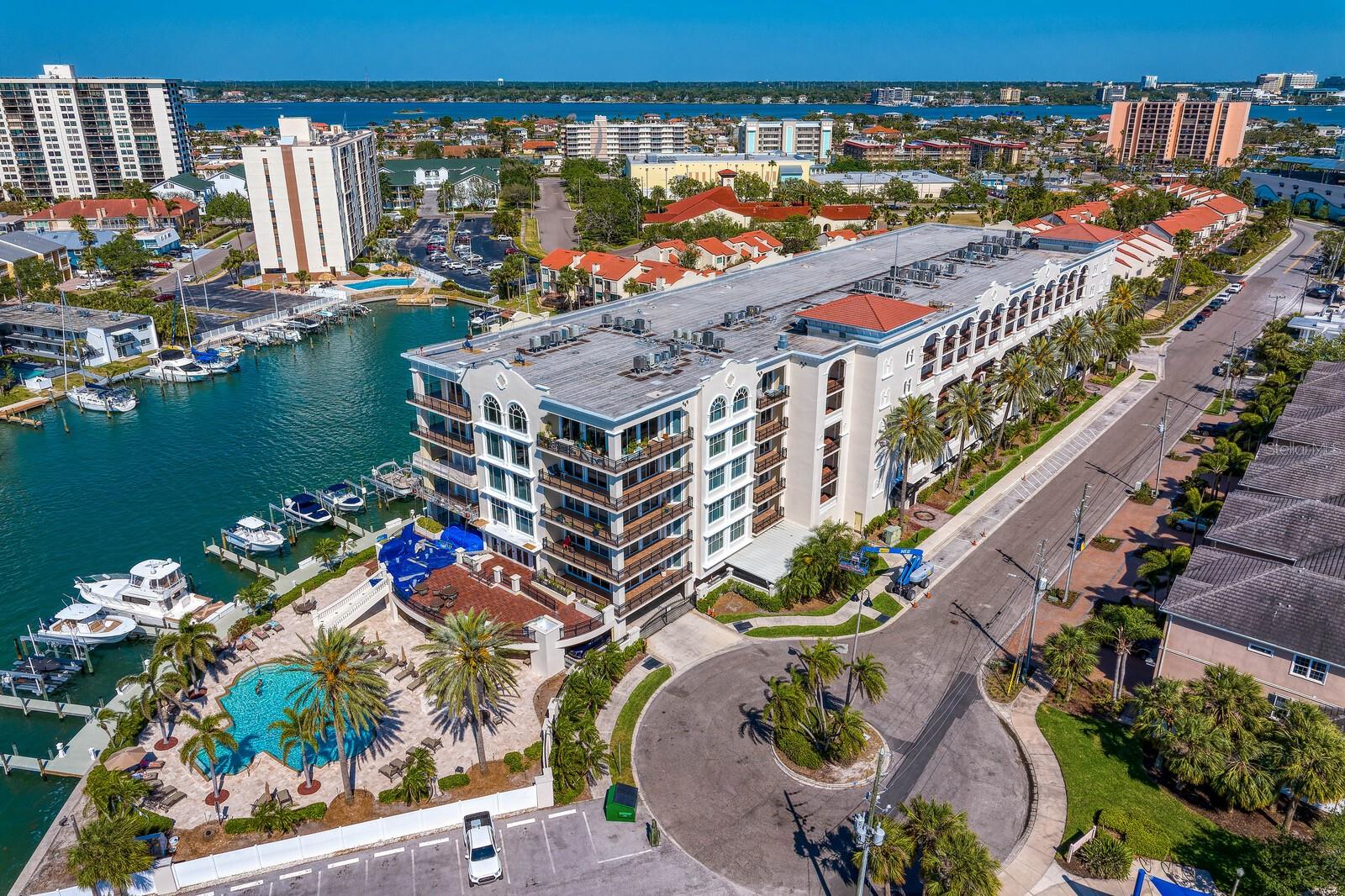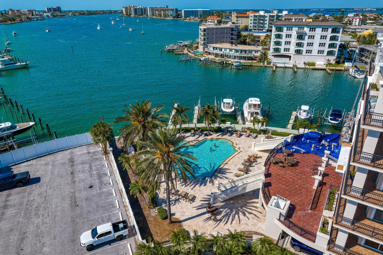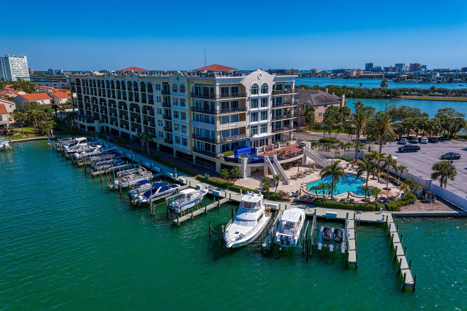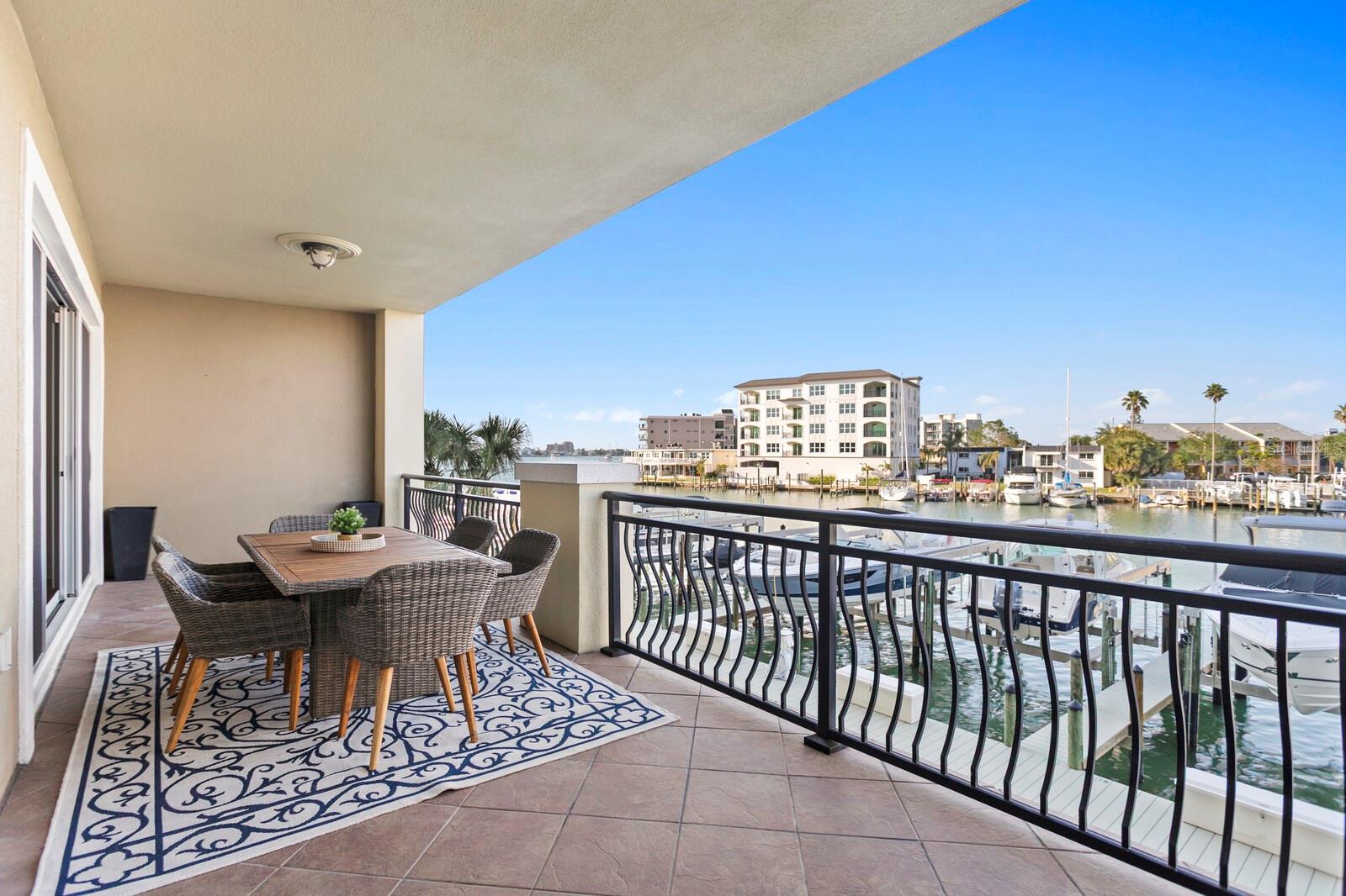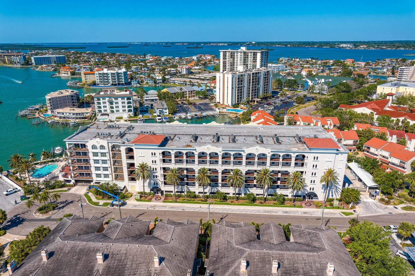Stunning Waterfront Condo located on idyllic Island Estates just minutes to Clearwater Beach! Welcome to coastal living at its finest. This beautifully appointed 3 bedroom, 3.5 bathroom, open floor-plan condo offers the perfect blend of luxury, comfort, and convenience. No expense was spared and no detail was overlooked in the renovation of this gorgeous condo! The heart of the home is a sleek modern kitchen, complete with a farmhouse sink in the large island, stainless steel Kitchen Aid appliance package (including refrigerator, induction range w/hood, wall oven and microwave, garbage compactor and dishwasher), quartz countertops, and beautiful grey cabinets with lighting above and below. The open-concept dining room and family room combo features sliding glass doors with electric shades, that allows for a seamless flow onto a private, large balcony overlooking the Intracoastal Waterway - perfect for al fresco dining and watching boats glide by. Each of the 3 spacious bedrooms features a private en suite bathroom, ensuring comfort and privacy for family and guests alike. All bedroom closets are equipped with convenient organization systems. The spacious primary suite boasts 4 closets (2 walk-in) and a spa-like bath, complete with jacuzzi tub, his & hers sinks and large shower stall. Step out to the oversized balcony through hurricane-rated sliding doors to start your day with tranquil water views and end it with breathtaking sunsets. The additional 2.5 bathrooms have also been updated with designer features and finishes. Even the laundry room has quartz counters, stylish cabinets and a stainless sink. This home has been upgraded completely including the AC and water-heater. Your condo at The Residences at Windward Passage includes 2 under-building parking spaces. This unit is one of the only ones with power hook-up for your EV or a golf cart. The garage area has volume ceiling height and is gated at entry and exit for security. Each unit also includes an assigned storage locker in a locked room. The resort-style grounds feature lush landscaping, a heated saltwater Pool, BBQ grills and restrooms. The exclusive Clubhouse is equipped with multiple TVs, billiards, an oversized bar area, and serving kitchen for your private functions. The building is 07 construction meeting all hurricane and building codes and reflects this with some of the lowest maintenance fees in the area. The first floor of living space is 16 feet above sea level. Island Estates offers the convenience of a new Publix grocery store, restaurants, hair salon and more. Living here is like being on vacation every day!