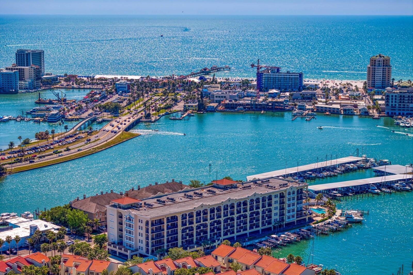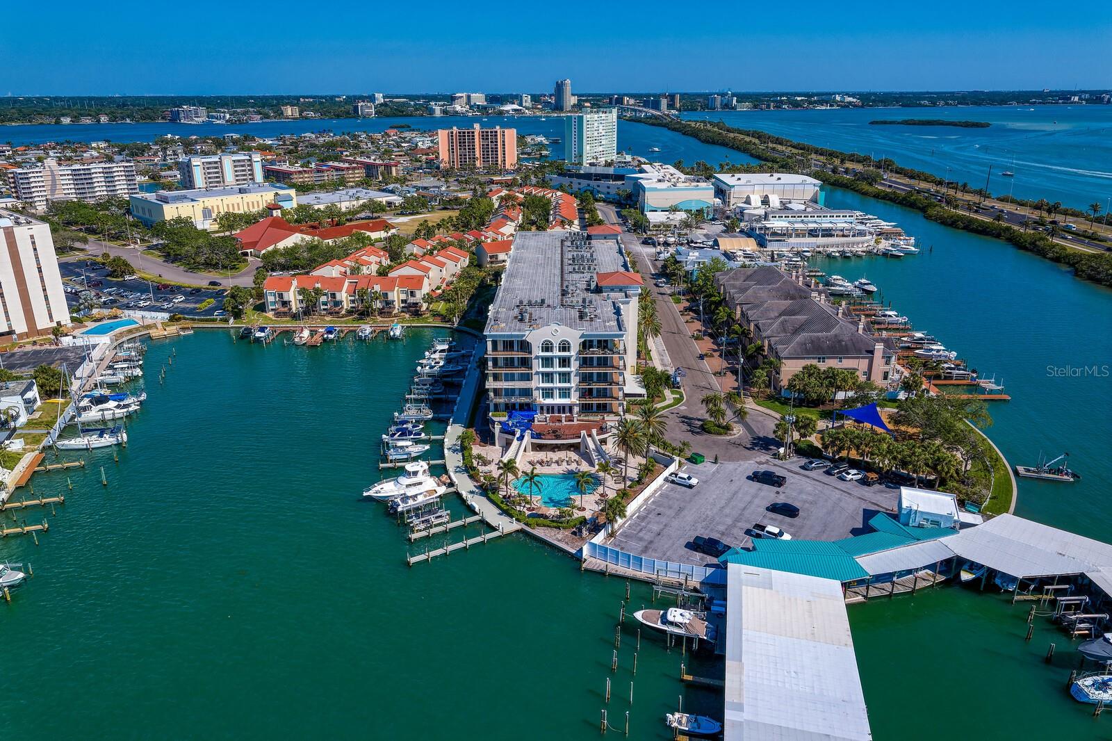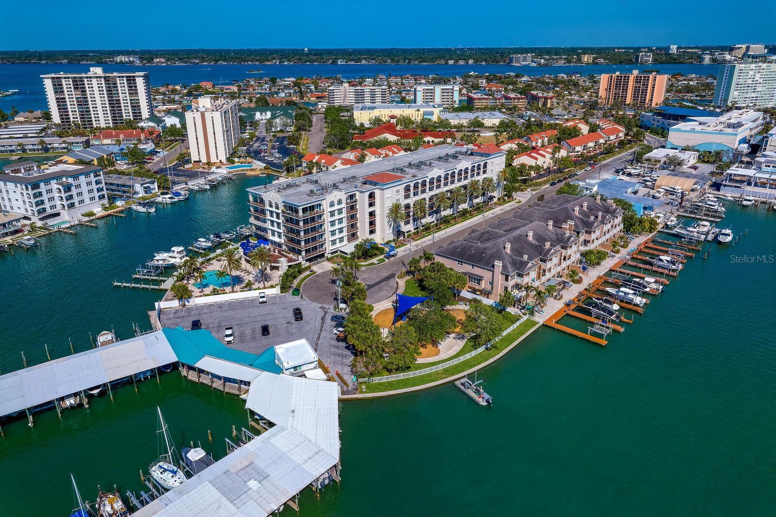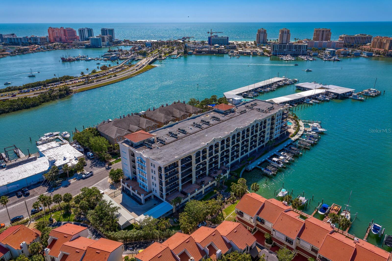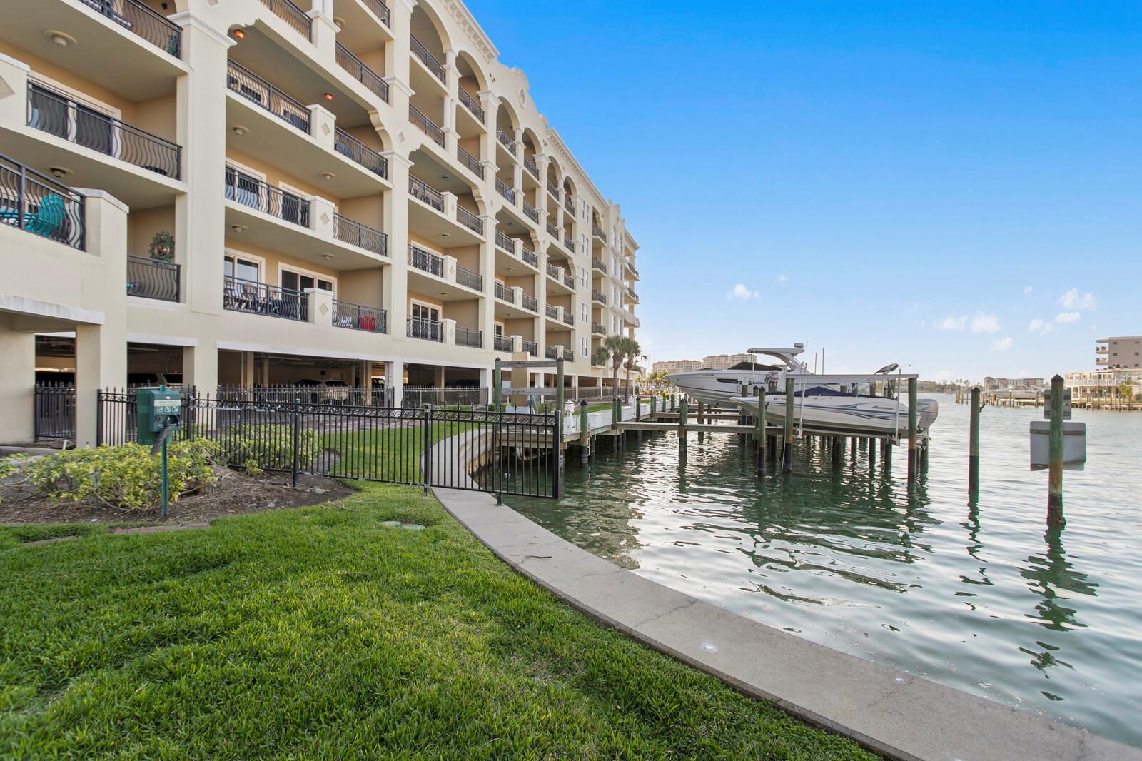 Stunning Waterfront Condo located on idyllic Island Estates just minutes to Clearwater Beach! Welcome to coastal living at its finest. This beautifully appointed 3 bedroom, 3.5 bathroom, open floor-plan condo offers the perfect blend of luxury, comfort, and convenience. No expense was spared and no detail was overlooked in the renovation of this gorgeous condo! The heart of the home is a sleek modern kitchen, complete with a farmhouse sink in the large island, stainless steel Kitchen Aid appliance package (including refrigerator, induction range w/hood, wall oven and microwave, garbage compactor and dishwasher), quartz countertops, and beautiful grey cabinets with lighting above and below. The open-concept dining room and family room combo features sliding glass doors with electric shades, that allows for a seamless flow onto a private, large balcony overlooking the Intracoastal Waterway - perfect for al fresco dining and watching boats glide by. Each of the 3 spacious bedrooms features a private en suite bathroom, ensuring comfort and privacy for family and guests alike. All bedroom closets are equipped with convenient organization systems. The spacious primary suite boasts 4 closets (2 walk-in) and a spa-like bath, complete with jacuzzi tub, his & hers sinks and large shower stall. Step out to the oversized balcony through hurricane-rated sliding doors to start your day with tranquil water views and end it with breathtaking sunsets. The additional 2.5 bathrooms have also been updated with designer features and finishes. Even the laundry room has quartz counters, stylish cabinets and a stainless sink. This home has been upgraded completely including the AC and water-heater. Your condo at The Residences at Windward Passage includes 2 under-building parking spaces. This unit is one of the only ones with power hook-up for your EV or a golf cart. The garage area has volume ceiling height and is gated at entry and exit for security. Each unit also includes an assigned storage locker in a locked room. The resort-style grounds feature lush landscaping, a heated saltwater Pool, BBQ grills and restrooms. The exclusive Clubhouse is equipped with multiple TVs, billiards, an oversized bar area, and serving kitchen for your private functions. The building is 07 construction meeting all hurricane and building codes and reflects this with some of the lowest maintenance fees in the area. The first floor of living space is 16 feet above sea level. Island Estates offers the convenience of a new Publix grocery store, restaurants, hair salon and more. Living here is like being on vacation every day!