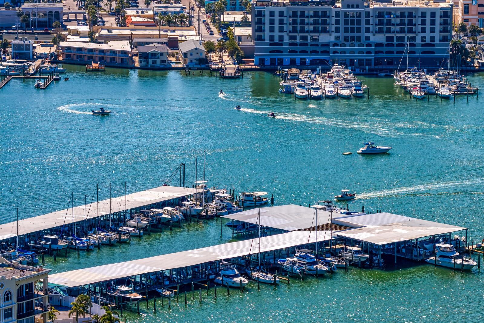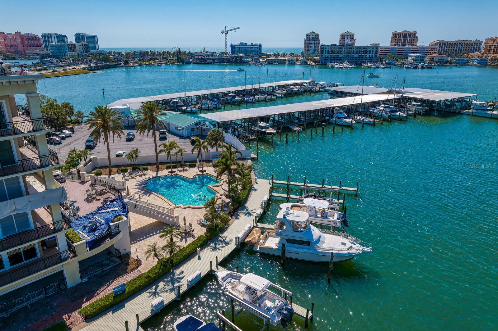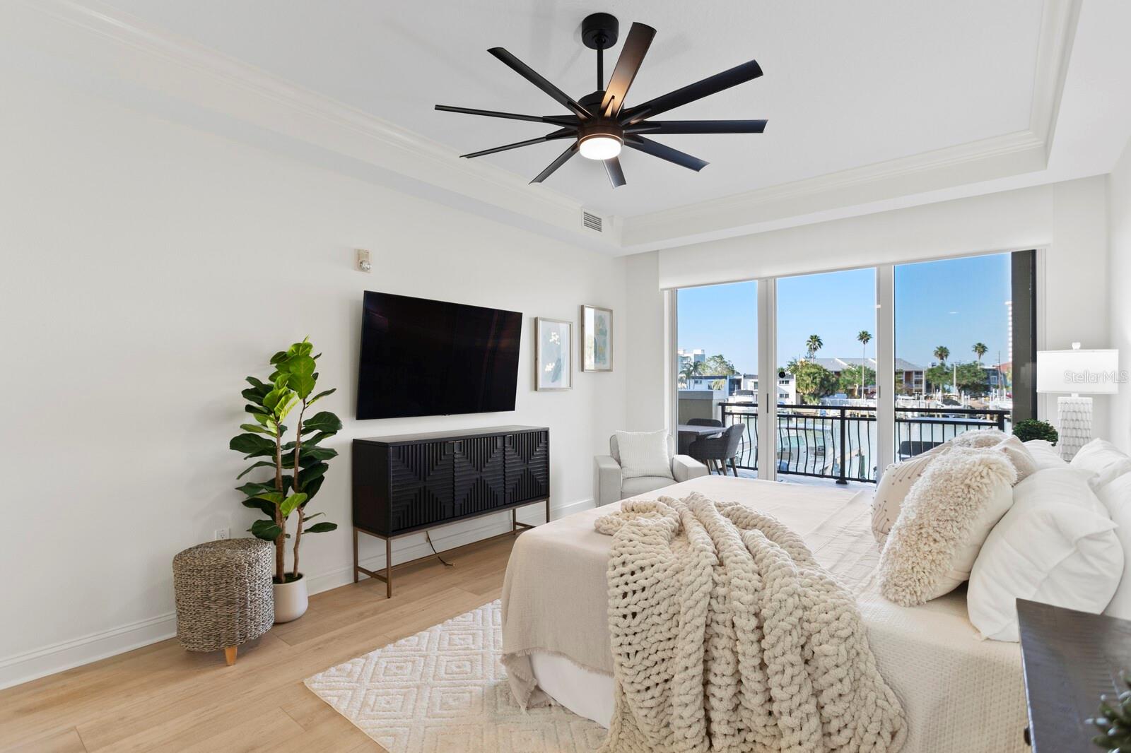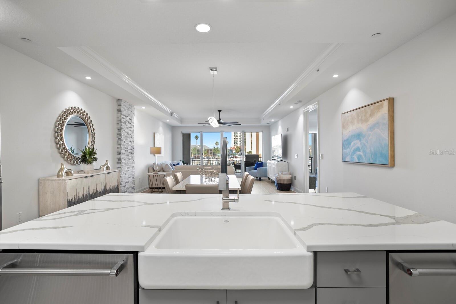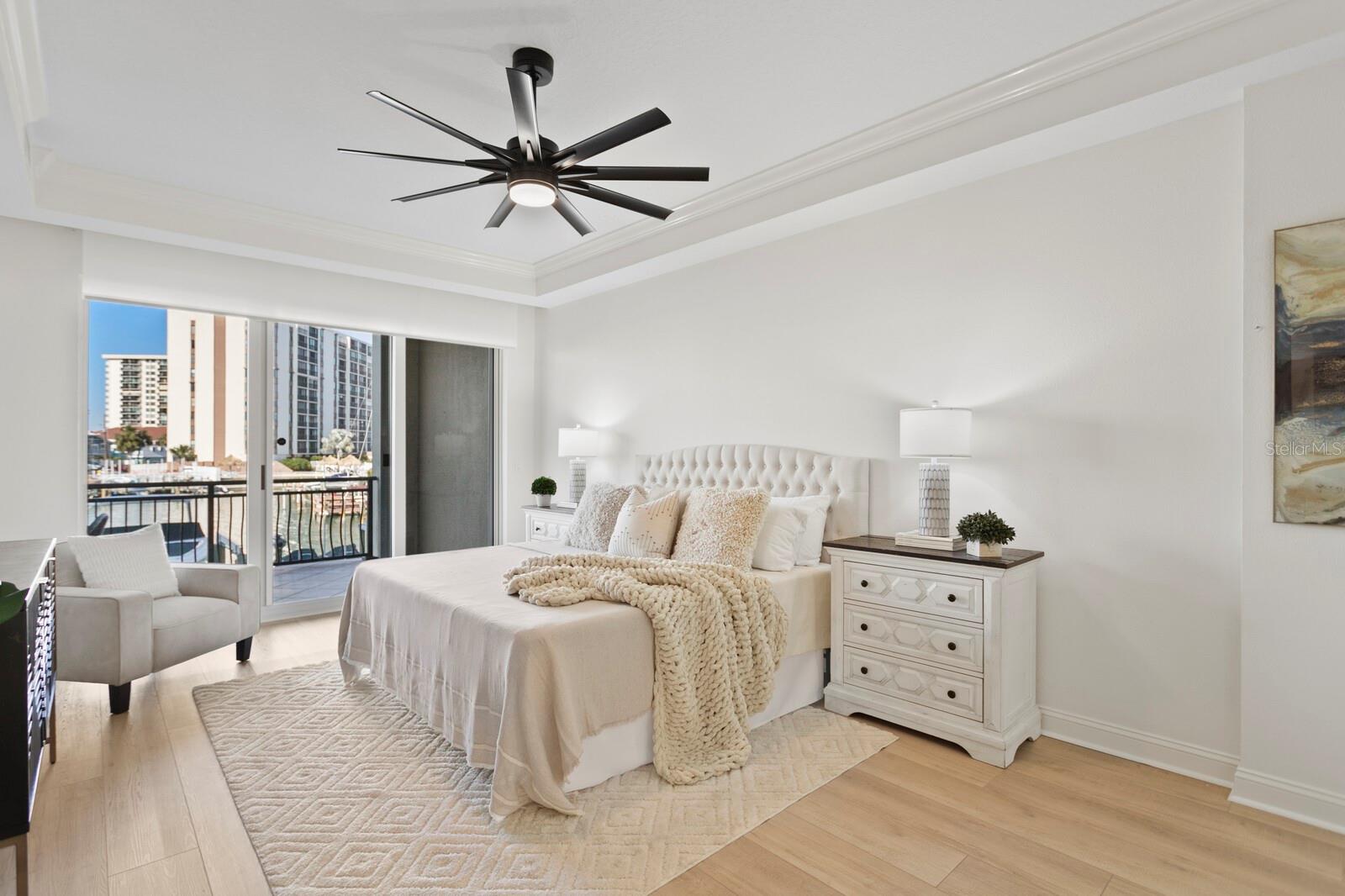 Stunning Waterfront Condo located on idyllic Island Estates just minutes to Clearwater Beach! Welcome to coastal living at its finest. This beautifully appointed 3 bedroom, 3.5 bathroom, open floor-plan condo offers the perfect blend of luxury, comfort, and convenience. No expense was spared and no detail was overlooked in the renovation of this gorgeous condo! The heart of the home is a sleek modern kitchen, complete with a farmhouse sink in the large island, stainless steel Kitchen Aid appliance package (including refrigerator, induction range w/hood, wall oven and microwave, garbage compactor and dishwasher), quartz countertops, and beautiful grey cabinets with lighting above and below. The open-concept dining room and family room combo features sliding glass doors with electric shades, that allows for a seamless flow onto a private, large balcony overlooking the Intracoastal Waterway - perfect for al fresco dining and watching boats glide by. Each of the 3 spacious bedrooms features a private en suite bathroom, ensuring comfort and privacy for family and guests alike. All bedroom closets are equipped with convenient organization systems. The spacious primary suite boasts 4 closets (2 walk-in) and a spa-like bath, complete with jacuzzi tub, his & hers sinks and large shower stall. Step out to the oversized balcony through hurricane-rated sliding doors to start your day with tranquil water views and end it with breathtaking sunsets. The additional 2.5 bathrooms have also been updated with designer features and finishes. Even the laundry room has quartz counters, stylish cabinets and a stainless sink. This home has been upgraded completely including the AC and water-heater. Your condo at The Residences at Windward Passage includes 2 under-building parking spaces. This unit is one of the only ones with power hook-up for your EV or a golf cart. The garage area has volume ceiling height and is gated at entry and exit for security. Each unit also includes an assigned storage locker in a locked room. The resort-style grounds feature lush landscaping, a heated saltwater Pool, BBQ grills and restrooms. The exclusive Clubhouse is equipped with multiple TVs, billiards, an oversized bar area, and serving kitchen for your private functions. The building is 07 construction meeting all hurricane and building codes and reflects this with some of the lowest maintenance fees in the area. The first floor of living space is 16 feet above sea level. Island Estates offers the convenience of a new Publix grocery store, restaurants, hair salon and more. Living here is like being on vacation every day!