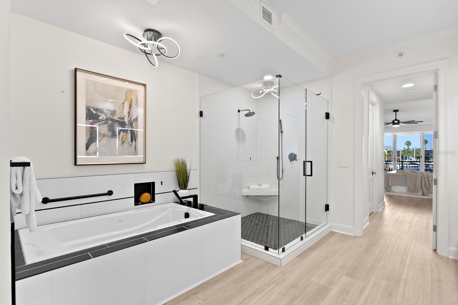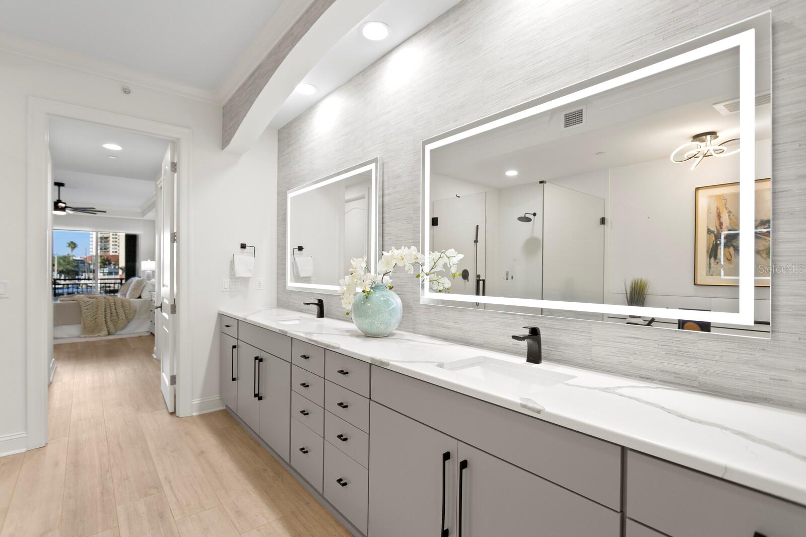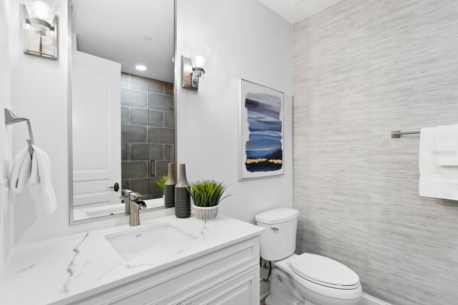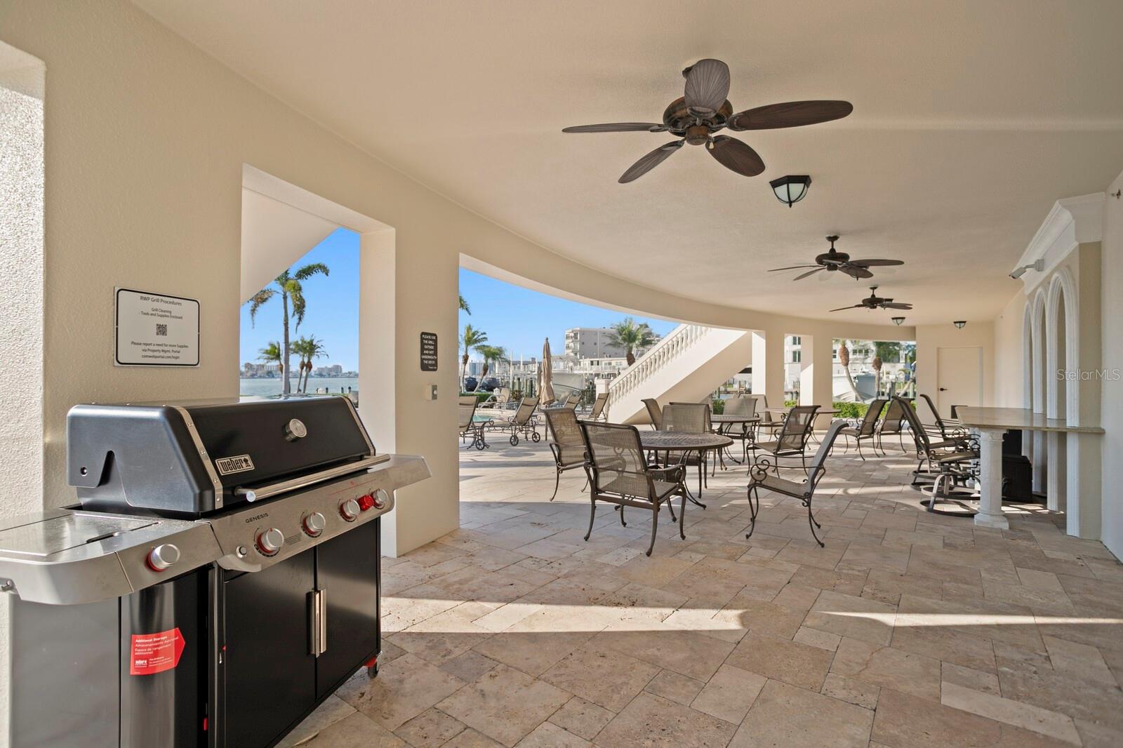 Stunning Waterfront Condo located on idyllic Island Estates just minutes to Clearwater Beach! Welcome to coastal living at its finest. This beautifully appointed 3 bedroom, 3.5 bathroom, open floor-plan condo offers the perfect blend of luxury, comfort, and convenience. No expense was spared and no detail was overlooked in the renovation of this gorgeous condo! The heart of the home is a sleek modern kitchen, complete with a farmhouse sink in the large island, stainless steel Kitchen Aid appliance package (including refrigerator, induction range w/hood, wall oven and microwave, garbage compactor and dishwasher), quartz countertops, and beautiful grey cabinets with lighting above and below. The open-concept dining room and family room combo features sliding glass doors with electric shades, that allows for a seamless flow onto a private, large balcony overlooking the Intracoastal Waterway - perfect for al fresco dining and watching boats glide by. Each of the 3 spacious bedrooms features a private en suite bathroom, ensuring comfort and privacy for family and guests alike. All bedroom closets are equipped with convenient organization systems. The spacious primary suite boasts 4 closets (2 walk-in) and a spa-like bath, complete with jacuzzi tub, his & hers sinks and large shower stall. Step out to the oversized balcony through hurricane-rated sliding doors to start your day with tranquil water views and end it with breathtaking sunsets. The additional 2.5 bathrooms have also been updated with designer features and finishes. Even the laundry room has quartz counters, stylish cabinets and a stainless sink. This home has been upgraded completely including the AC and water-heater. Your condo at The Residences at Windward Passage includes 2 under-building parking spaces. This unit is one of the only ones with power hook-up for your EV or a golf cart. The garage area has volume ceiling height and is gated at entry and exit for security. Each unit also includes an assigned storage locker in a locked room. The resort-style grounds feature lush landscaping, a heated saltwater Pool, BBQ grills and restrooms. The exclusive Clubhouse is equipped with multiple TVs, billiards, an oversized bar area, and serving kitchen for your private functions. The building is 07 construction meeting all hurricane and building codes and reflects this with some of the lowest maintenance fees in the area. The first floor of living space is 16 feet above sea level. Island Estates offers the convenience of a new Publix grocery store, restaurants, hair salon and more. Living here is like being on vacation every day!