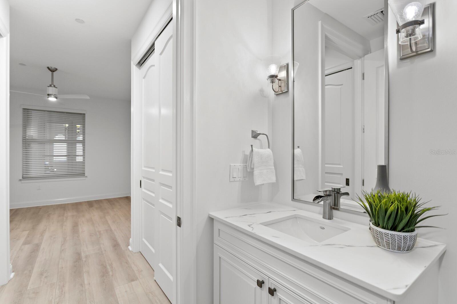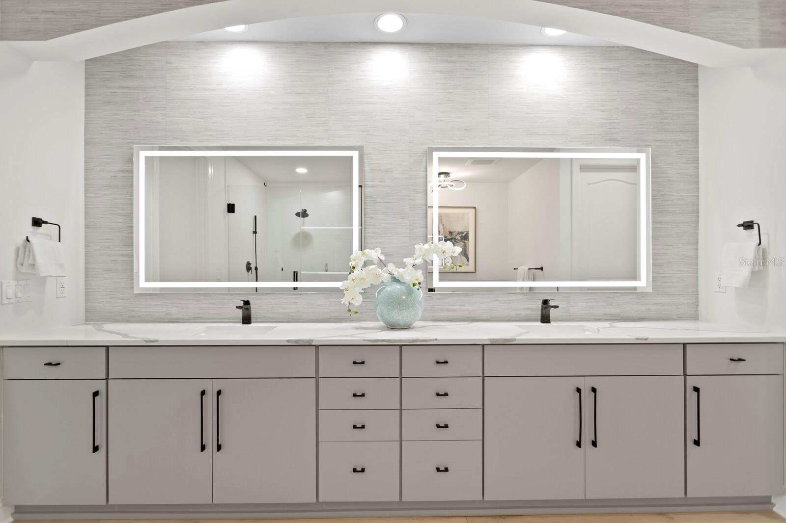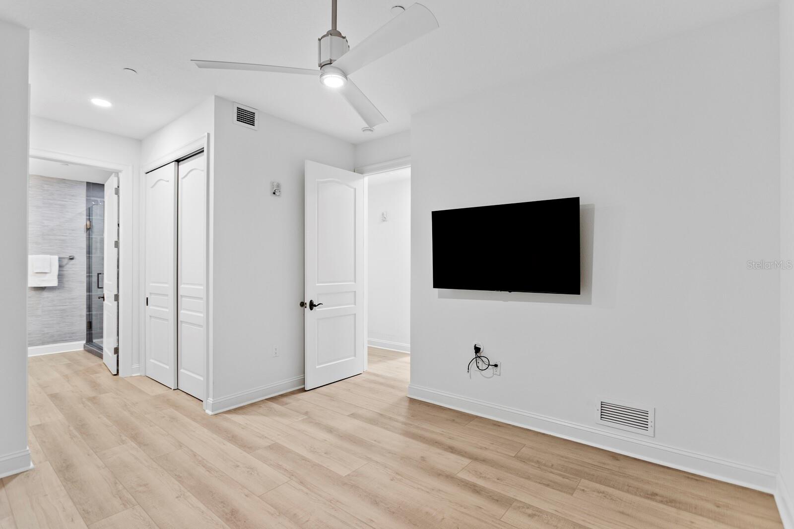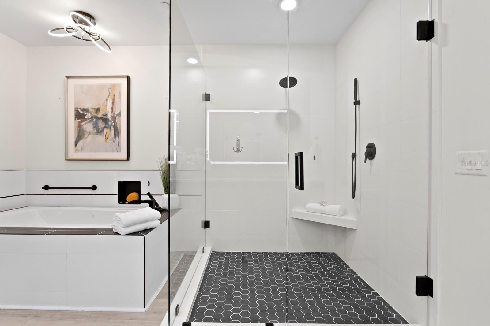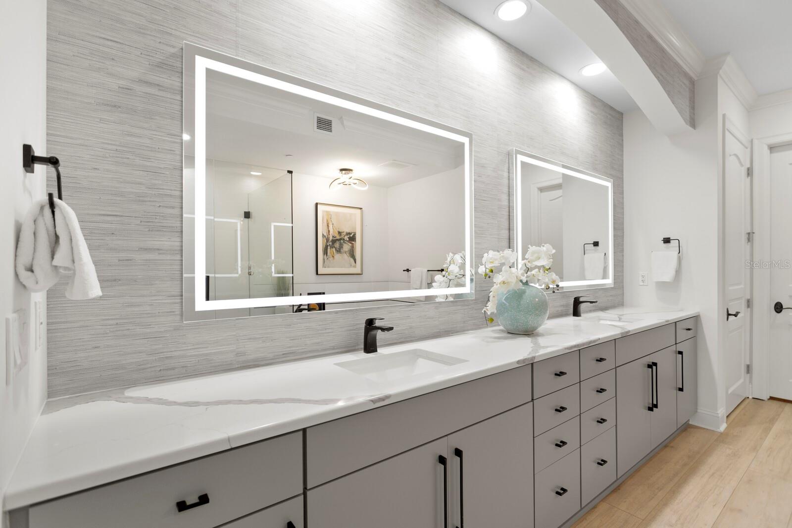 Stunning Waterfront Condo located on idyllic Island Estates just minutes to Clearwater Beach! Welcome to coastal living at its finest. This beautifully appointed 3 bedroom, 3.5 bathroom, open floor-plan condo offers the perfect blend of luxury, comfort, and convenience. No expense was spared and no detail was overlooked in the renovation of this gorgeous condo! The heart of the home is a sleek modern kitchen, complete with a farmhouse sink in the large island, stainless steel Kitchen Aid appliance package (including refrigerator, induction range w/hood, wall oven and microwave, garbage compactor and dishwasher), quartz countertops, and beautiful grey cabinets with lighting above and below. The open-concept dining room and family room combo features sliding glass doors with electric shades, that allows for a seamless flow onto a private, large balcony overlooking the Intracoastal Waterway - perfect for al fresco dining and watching boats glide by. Each of the 3 spacious bedrooms features a private en suite bathroom, ensuring comfort and privacy for family and guests alike. All bedroom closets are equipped with convenient organization systems. The spacious primary suite boasts 4 closets (2 walk-in) and a spa-like bath, complete with jacuzzi tub, his & hers sinks and large shower stall. Step out to the oversized balcony through hurricane-rated sliding doors to start your day with tranquil water views and end it with breathtaking sunsets. The additional 2.5 bathrooms have also been updated with designer features and finishes. Even the laundry room has quartz counters, stylish cabinets and a stainless sink. This home has been upgraded completely including the AC and water-heater. Your condo at The Residences at Windward Passage includes 2 under-building parking spaces. This unit is one of the only ones with power hook-up for your EV or a golf cart. The garage area has volume ceiling height and is gated at entry and exit for security. Each unit also includes an assigned storage locker in a locked room. The resort-style grounds feature lush landscaping, a heated saltwater Pool, BBQ grills and restrooms. The exclusive Clubhouse is equipped with multiple TVs, billiards, an oversized bar area, and serving kitchen for your private functions. The building is 07 construction meeting all hurricane and building codes and reflects this with some of the lowest maintenance fees in the area. The first floor of living space is 16 feet above sea level. Island Estates offers the convenience of a new Publix grocery store, restaurants, hair salon and more. Living here is like being on vacation every day!