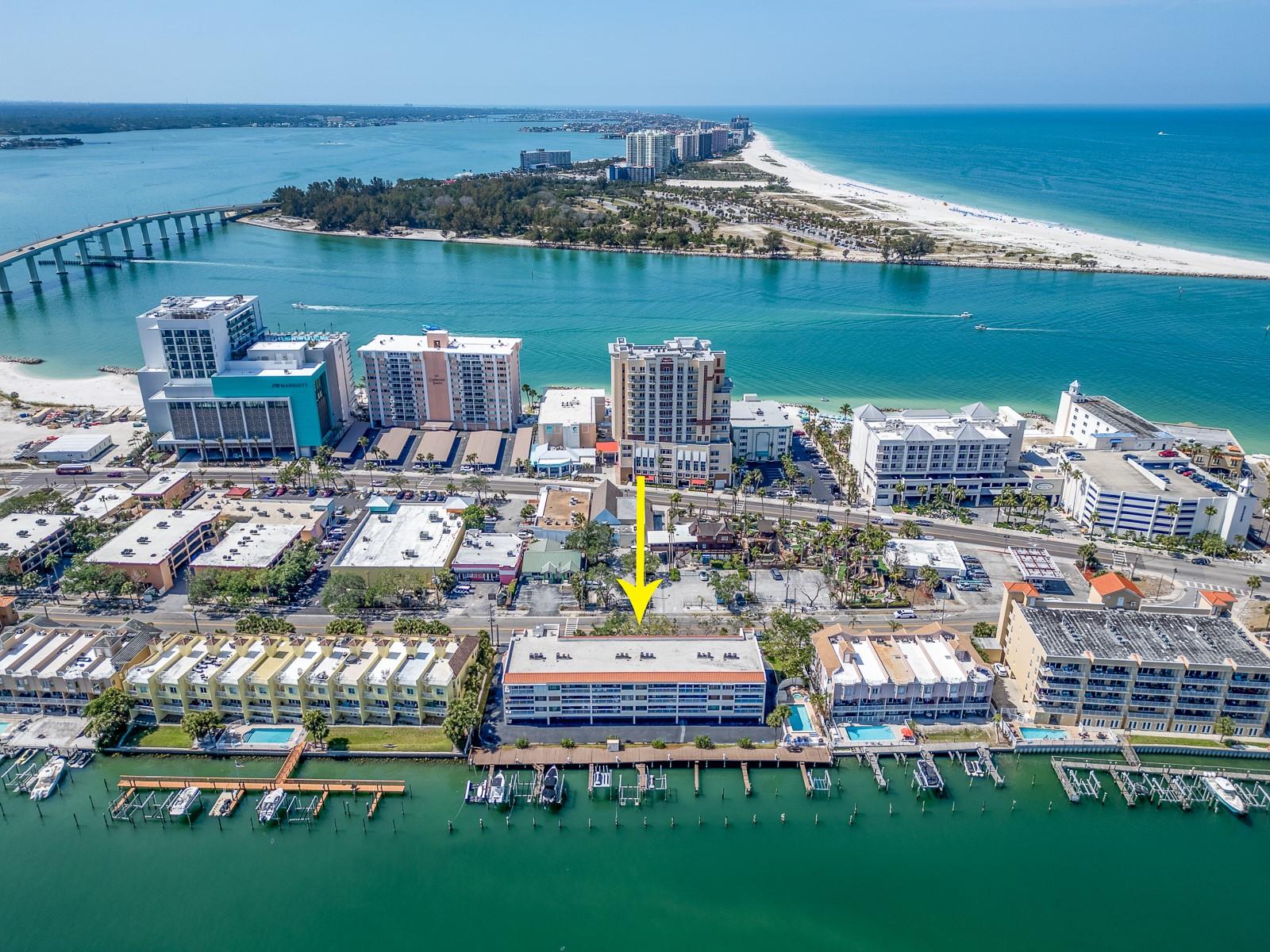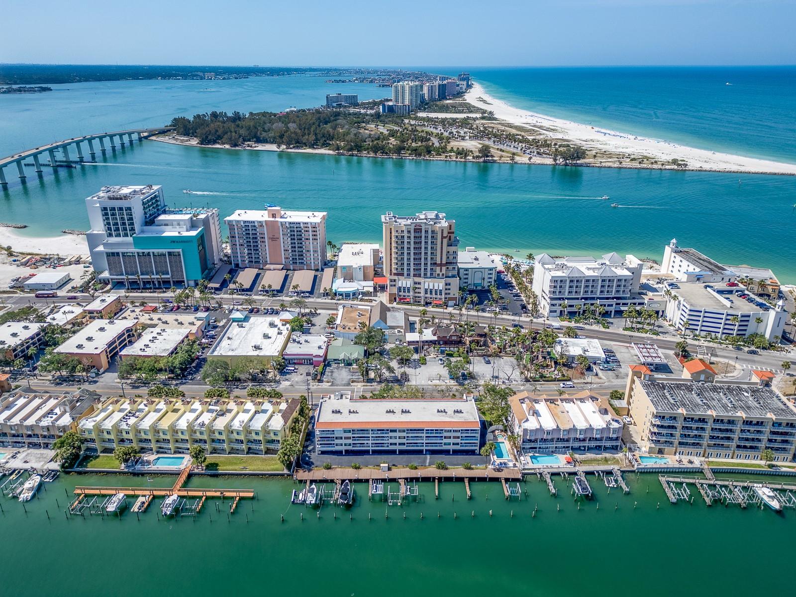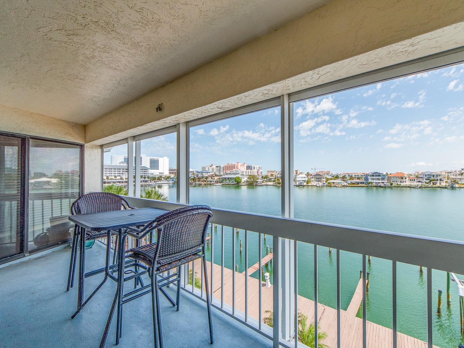 Welcome to Paradise. This is a fantastic opportunity to own a 2 bedroom with 2 full bath condominium with direct waterfront views! This home comes with a boat slip, storage closet and 2 underbuilding parking spots. This complex is pet friendly so bring the dog. You can also earn some extra income with this 1 month minimum lease period. You will love enjoying cocktails on the direct waterfront balcony. This complex is a short stroll to our famous Clearwater Beach, fine dining, live music and bars. Also quick access to 2 International airports, and 2 major hospitals. The resort style amenities include heated pool, spa, storage, and private boat slip. This is a large unit with an open concept so this home is light and bright. The minute you come in your unit, you are surrounded by spectacular water views. Other amenities include hurricane shutters on all window. The primary retreat has a huge walk in closet and tub with shower, it also has fantastic water views and access to the balcony. The guest bed is spacious and the guest bath has a full size washer and dry in it. If you are looking for a second home, rental property or just a wonderful waterfront residence, you have found it. Come live what we locals call the "Salt Life"