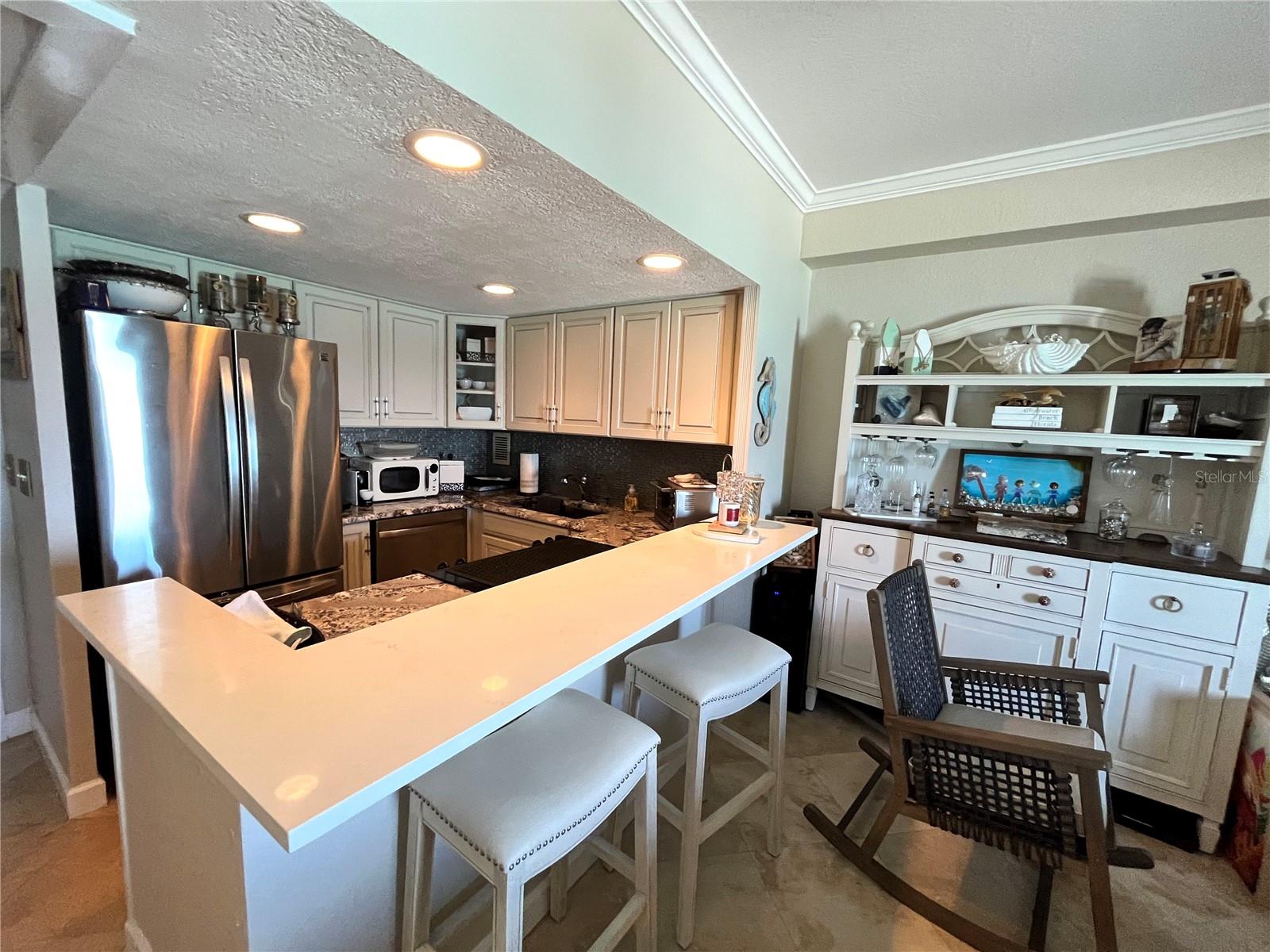 STUNNING BEACH & GULF VIEWS from this one bedroom/one bath front beach condo in the sought after GATED REGATTA BEACH CLUB. FABULOUS LOCATION! BEACHFRONT BUILDING on NORTH CLEARWATER BEACH. As you enter the condo, you will be amazed by the incredible open views of the sugary sand beach, Gulf and pool area. This condo is being sold TURNKEY and FULLY FURNISHED for your convenience. The large living area is ideal for entertaining, featuring ample living and dining space with plenty of natural light, opening through its sliding glass doors to a large open-air balcony where you will enjoy incredible views of the sparkling Gulf waters and the most beautiful sunsets! This condo is one of the exceptionally rare units that has dual entrances to the large panoramic balcony, with convenient access from both the living room and the large bedroom offering a seamless indoor-outdoor living space. The condo has beautiful travertine floors though-out. The kitchen has beautiful cabinetry and granite countertops. The kitchen opens into the living room though its breakfast bar featuring gorgeous white quartz counter and offering direct beach view. The spacious bedroom has 2 closets offering plenty of storage, a lot of natural light with beach views with direct access to the large outside balcony. The bathroom has nice granite countertops, and a large shower. This unit comes with the use of assigned covered carport #17. The highly desirable North Beach location of this community provides the ultimate vacation experience, as a weekend getaway or second home. or as your permanent vacation residence. You will enjoy the pristine sugar sand of this quiet North Beach location far from the busy tourist beach. Or you can choose to relax around the beautiful pool area. You can also take a lovely walk north towards Caladesi State Park, or south towards Pier 60 and all the wonderful Clearwater Beach restaurants and attractions. Clearwater Beach has been voted many times #1 beach in the country. The community offers an Olympic size heated pool directly on the Gulf side, pool deck with barbecue areas, complete fitness center, social room, game room with table tennis and pool table, a spacious Community room with kitchen, a 13 seat Movie theater, Bicycle & Kayak Storage room, Workshop, EV Charging stations and Car wash facilities. The community grounds are always kept immaculate with daily maintenance, 24hr security and plenty of parking. The beach trolley stops in front of the property and is a great way to enjoy all Clearwater Beach has to offer: restaurants, nightlife, shopping, charter boat fishing, dinner cruises, sightseeing tours, dolphin spotting tours, pirate ship, daily sunsets at pier 60 with artisans, crafters, as well as musical entertainment. Live the Resort lifestyle of this unique beachfront retreat nestled along the pristine shores of Clearwater beach. You will always feel like you are on vacation in this remote paradise! And when you aren’t soaking up the sun at your new beach condo, you can earn extra income with your investment by renting it out for others to enjoy! (90-day min lease period, always in high demand for seasonal rent)