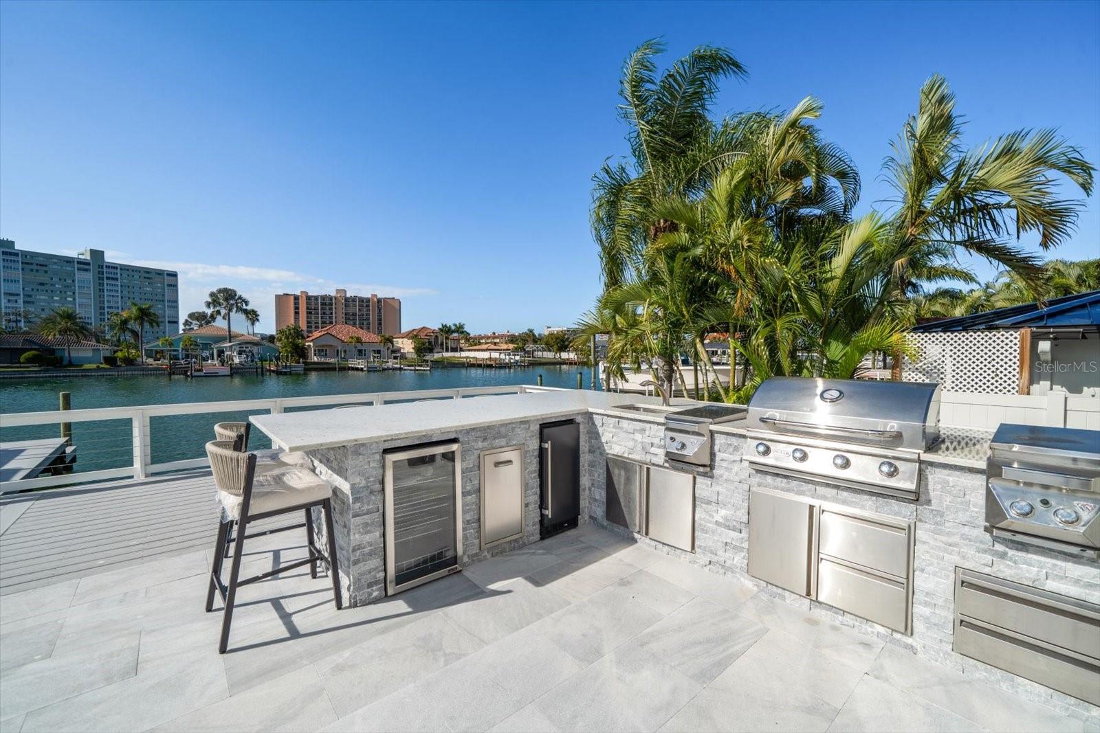 Welcome to a world of unparalleled luxury and coastal elegance. Nestled within the waterfront community of Island Estates, this remarkable home embodies the epitome of modern beach living, offering a rare opportunity to own a piece of paradise. 42 Midway offers a very popular feature set: Location, boat dock, direct Gulf access, pool, privacy, exclusivity, and of course, the luxurious active outdoor lifestyle that comes with it all. This exquisite 4 bedroom, 3.5 bathroom residence spans 4944 square feet of beautifully designed living space. Revel in the breathtaking panoramic views of the glistening waters from nearly every room, creating an ambiance of serenity and grandeur. The open floor plan layout, designed with the finest attention to detail, offers an ideal setting for both lavish entertaining and intimate family living. The gourmet chef's kitchen features top-of-the-line appliances, sleek custom cabinetry, and luxurious finishes, making it a focal point of the home. Meanwhile, the expansive living areas are adorned with soaring ceilings and walls of glass, inviting an abundance of natural light and picturesque views indoors. Step outside to your own private retreat, featuring a spacious patio with tropical landscaping, a state-of-the-art outdoor kitchen, pool and hot tub and a private dock with a boat lift, offering direct access to the open waters. This waterfront home represents a once-in-a-lifetime opportunity to indulge in the ultimate luxury lifestyle, combining the allure of coastal living with the finest amenities and unmatched natural beauty.