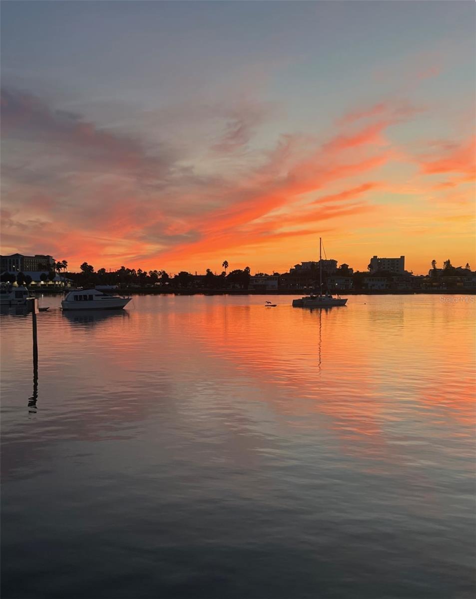 This waterfront condominium is a MUST-SEE!!! Located at 644 Island Way in the highly sought-after Island Estates community, this beautifully updated first-floor residence offers sweeping open-water views and stunning western sunsets. Upon entering, you’re immediately drawn to the light-filled interior and panoramic water views, visible from every room—perfect for watching dolphins, manatees, passing boats, and nightly sunsets. The home has been completely redesigned with an open-concept layout that seamlessly connects the kitchen, dining, and living areas, making it ideal for both everyday living and entertaining. The custom eat-in kitchen features high-end appliances, soft-close cabinetry, quartz countertops with a matching backsplash, and a stylish dry bar with wine refrigerator. A stackable LG front-loading washer and dryer add everyday convenience. The oversized primary bedroom includes a custom ensuite with a walk-in shower and a spacious walk-in closet. The guest bedroom is generously sized, offers beautiful water views, and is complemented by a tastefully updated guest bathroom just across the hall. Luxury vinyl flooring runs throughout the home, with hand-selected polished stone in the primary ensuite. Electric hurricane shutters provide added peace of mind. (AC 2025 / Water Heater 2025.) Community RESORT STYLE amenities include a heated pool, BBQ area, secured lobby, assigned parking (Space #32 directly in front of the building entrance), marina with BOAT SLIPS currently available for lease, kayak storage, and bicycle storage. Ideally located in the heart of Clearwater Beach, this home is just a short walk to Pier 60, award-winning restaurants, boutique shopping, and the world-famous sugar-sand beaches. Convenient access to hospitals, medical centers, and both Tampa and St. Pete–Clearwater airports completes the package. Call today and begin living the Florida lifestyle tomorrow!