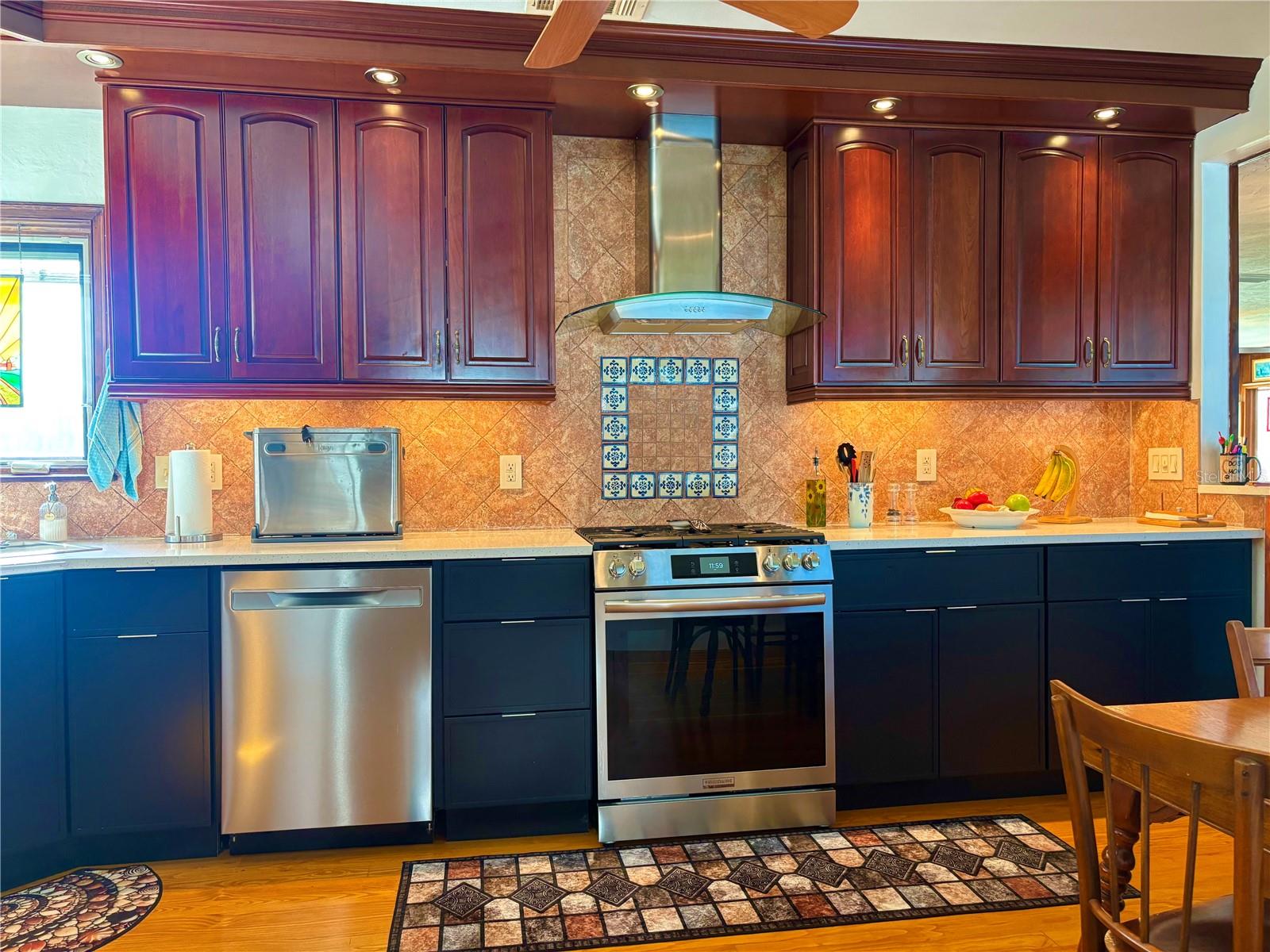 Appliances: Built-In Oven, Convection Oven, Cooktop, Dishwasher, Disposal, Exhaust Fan, Freezer, Ice Maker, Kitchen Reverse Osmosis System, Microwave, Range, Range Hood, Refrigerator, Tankless Water Heater, Water Filtration System, Water Purifier, Water Softener