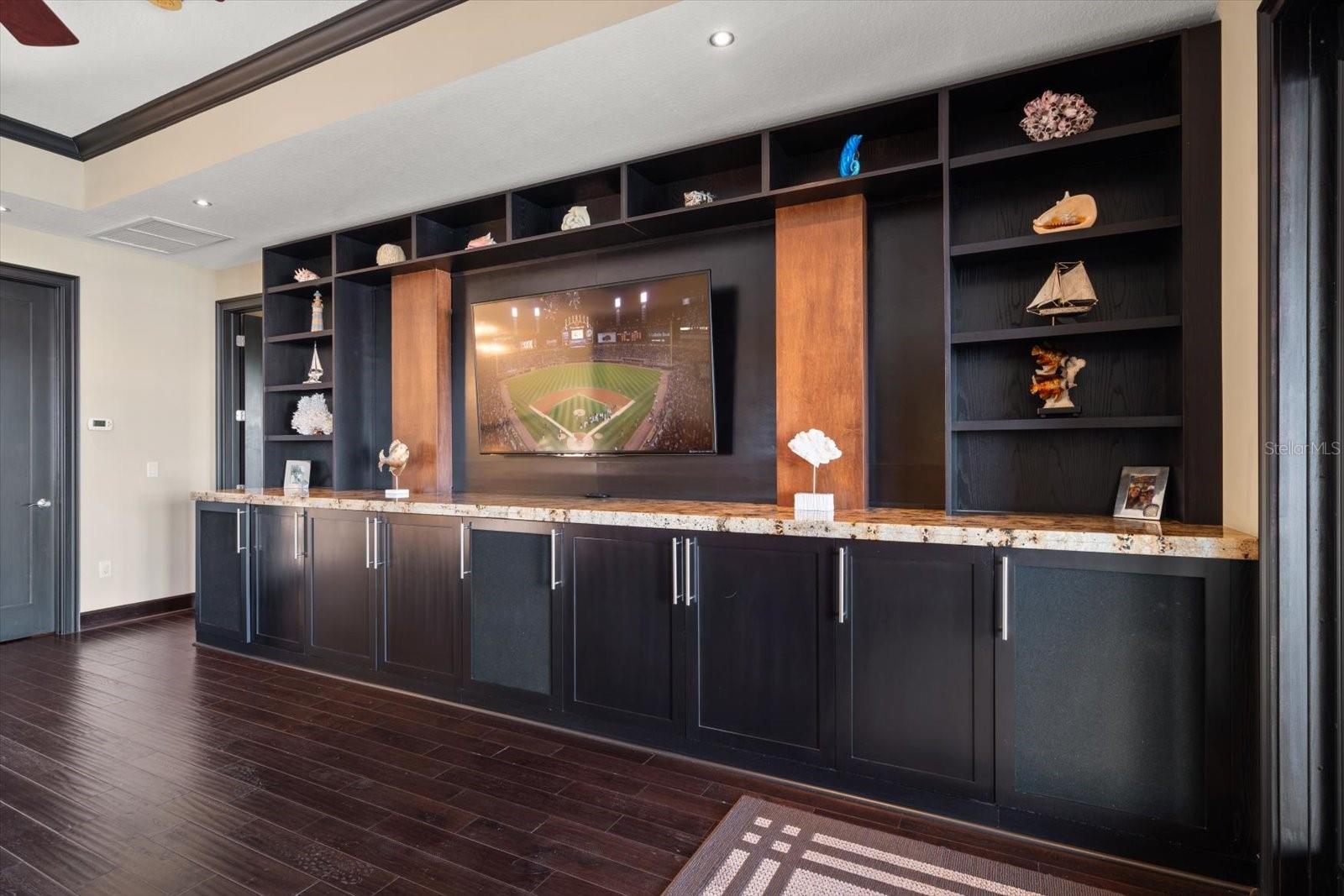 Nestled on one of Clearwater Beach’s most desirable residential streets, this stunning Mediterranean-inspired estate offers the rare combination of architectural presence, privacy, and resort-style outdoor living just moments from the beach. Designed for those who value both elegance and entertaining, the home makes a striking first impression with its grand façade, paver drive, and multiple garage bays, setting the tone for refined coastal living. Inside, expansive open living spaces are filled with natural light and framed by detailed millwork, tray ceilings, and rich flooring throughout. The heart of the home is a chef’s kitchen designed to impress, featuring custom cabinetry, dramatic stone countertops, a professional-grade gas range with custom stone hood, premium appliances, and an oversized island that anchors the space, perfect for both everyday living and large-scale entertaining. The kitchen flows seamlessly into generous dining and living areas, creating an inviting atmosphere for gatherings. The private primary suite is a true retreat, offering a spacious bedroom, serene finishes, and a spa-inspired bath with dual vanities, soaking tub, and oversized walk-in shower. Additional bedrooms and baths are thoughtfully designed to accommodate guests or family with comfort and privacy. Step outside to a private outdoor living enclave designed to rival boutique resorts. A lagoon-style pool and spa are surrounded by lush landscaping, sun shelves, multiple seating areas, and ambient lighting, ideal for daytime relaxation or evening entertaining. Covered terraces and balconies extend the living space outdoors, creating an effortless indoor-outdoor lifestyle rarely found so close to Clearwater Beach. Enhancing the home’s appeal is a fully integrated solar energy system designed to power the entire residence, seamlessly supporting modern, energy-efficient living. This exceptional residence delivers the feel of a private coastal estate while offering convenient access to world-class beaches, dining, boating, and entertainment. A rare opportunity to own a statement home where architecture, lifestyle, and location come together seamlessly.