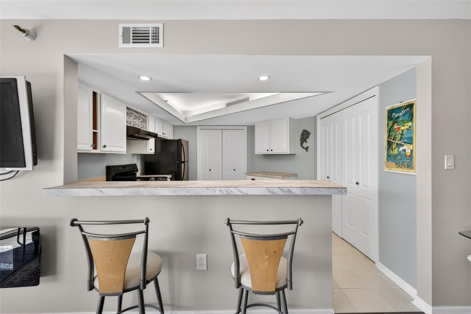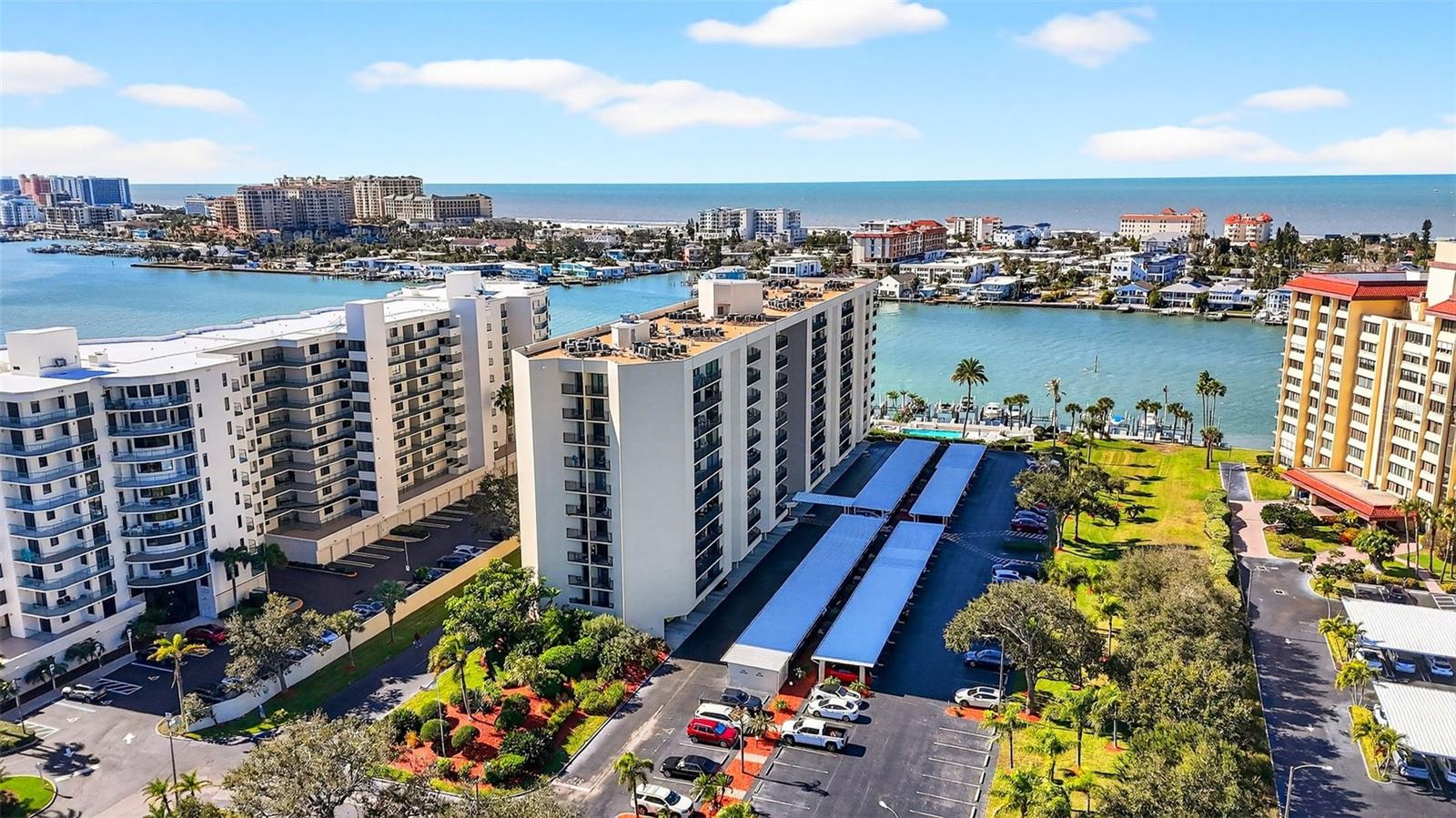Experience coastal living at its finest in this beautiful 9th floor unit at Island Walk on Island Estates. This furnished 1-bedroom, 1.5-bath residence showcases sweeping views of both the Intracoastal Waterway and the open Gulf—stunning by day and breathtaking at sunset. The open-concept kitchen flows seamlessly into the living and dining areas, creating an airy, spacious feel ideal for entertaining or unwinding at home. Enjoy your relaxed ambience created around your fireplace, along with the peace of mind knowing your home has a newer AC unit, Water Tank, New PGT IMPACT RATED WINDOWS and SLIDING DOORS, fresh paint and easy to maintain flooring. Step onto the large private balcony accessible from both the living room and bedroom and enjoy enchanting water views while you sip your favorite drink and watch the sky change colors. Additional conveniences include a covered parking space (#107) and a generous indoor storage unit (S-81). Island Walk is a meticulously maintained waterfront community offering resort-style amenities: a heated pool, hot tub, tennis and pickleball courts, grilling area, and a scenic boardwalk with boat slips that may be available for rent or purchase. The building has completed its milestone and structural integrity inspections, and despite two hurricanes last year, it sustained no wind or water damage. Recent improvements include exterior painting (2022), a new roof, a refreshed lobby, and updated balcony, railing, and patio coatings. Island Estates places you minutes from fantastic restaurants, shops, a grocery store, banking, and the world-renowned Clearwater Marine Aquarium. And best of all—America’s #1 beach is less than a mile away, offering powder-soft sand and endless Gulf breezes.