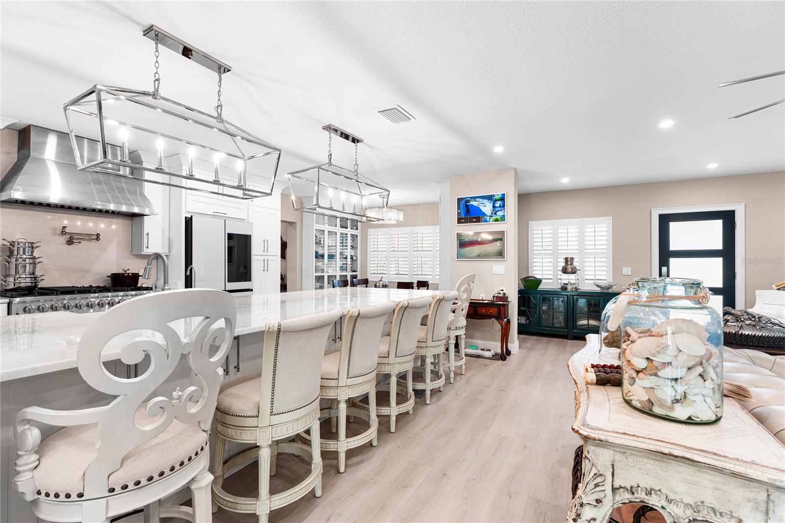 This exceptional North Clearwater Beach residence delivers rare scale, privacy, and infrastructure only a short walk away from North Beach access. About 60 steps from the powder-white sands of the Gulf, this completely reimagined and expanded coastal living oasis awaits you! Situated on a double-sized lot with resident-only parking, the property has been thoughtfully transformed into a private coastal retreat offering flexibility, luxury, and unmatched beachside functionality. Designed for both everyday living and large-scale entertaining, the home features a spacious, open-concept floor plan anchored by dramatic 20 feet of glass panel slider doors that open seamlessly to the rear porch and resort-style courtyard. At the heart of the home is a gourmet entertainer’s kitchen, outfitted with a 48” gas range with 8 burners, dual full-size refrigerators, and a massive center island - ideal for hosting family and friends after a day at the beach. The main residence features three spacious bedrooms, each with en-suite bathrooms, generous closets, and private exterior access to individual patios or seating areas. Complementing the main living space is a dual-entry, private in-law suite, adjacent to the home’s gourmet kitchen, that functions as a fully integrated yet independent living area. Complete with its own bedroom (Bedroom #4), the independent living in-law suite includes a: private bathroom, living area, laundry, exterior access, and dedicated one-car garage, making it ideal for multi-generational living, guests, or extended stays. Extensively upgraded (Permit records available), the home includes newly added garage spaces with a redesigned driveway, two Tesla charging stations, and half-bath addition, resulting in a total of six bathrooms and two separate garages offering four-car parking and ample off-street parking - an exceptionally rare and coveted feature in a beach community. Additional recent improvements include impact-resistant windows and doors throughout, a fully fenced yard, and security camera systems, providing peace of mind without sacrificing the relaxed coastal lifestyle. Lush tropical landscaping surrounds the paver-lined courtyard style backyard, creating a serene, private outdoor environment rarely found this close to the water. Enjoy an unbeatable location just steps to North Clearwater Beach, a leisurely 20-minute or so walk to Frenchie’s Rockaway Grill, the soon-to-be Crabby Bills, or a stroll along the shoreline to Caladesi Island, one of Florida’s most celebrated natural beaches with no vehicle access! This one-of-a-kind property offers the ultimate combination of walkability, privacy, parking, and flexibility.