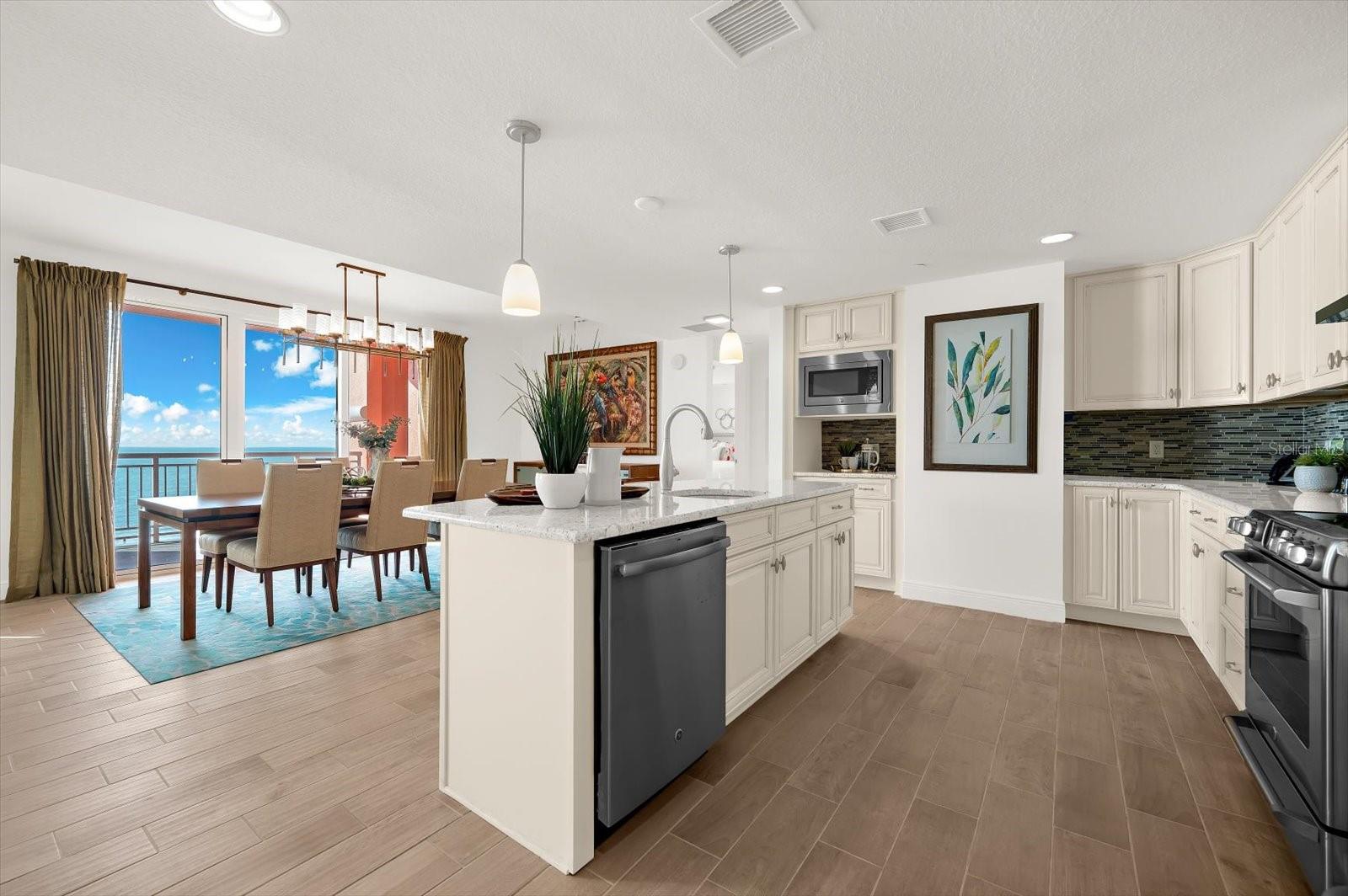 Set high above the shoreline on the sixth floor, this Gulf-front condominium offers expansive water views with direct Gulf front and sunset views from every room, generous interior space, and a level of privacy that is increasingly rare on Clearwater Beach. Spanning nearly 1,800 square feet, this 2-bedroom, 2.5-bath residence combines strong architectural lines with open, livable design. PRIVATE ELEVATOR. The main living area is anchored by walls of glass that draw in natural light and frame panoramic water views. The private balcony extends the living space outdoors, creating an ideal setting for morning coffee or evening sunsets. The open kitchen features an island high bar with granite countertops, 2 pendant lights - perfect for snacks, coffee bar, stainless appliances blends seamlessly into the dining and living areas to create a cohesive space for everyday living or hosting. The wine bar offers cabinetry, a sink & wine cooler. The primary suite offers comfort and scale - glass slider opens to the covered balcony overlooking the Gulf of America, a large walk-in closet and a spacious bath featuring dual vanities, a soaking tub, and separate shower. A guest bedroom with private bath enhances flexibility for visitors, while the additional half bath serves the main living area. An interior utility room adds convenience. The community provides direct beach access, a heated pool and spa, fitness center, secure entry, elevators, and assigned underground parking. Just steps from the best of Clearwater Beach’s restaurants and attractions, yet privately positioned along the sand, this residence represents a strong and lasting Gulf-front investment in both lifestyle and location. Aqualea residences amenities include secure private 2-car parking spaces, 24-hour in-room dining served right in your residence, air conditioned storage locker, 24-hour gym access, Sandava Spa, house keeping service, pool & heated hot tub, 120 nights - 24 hour valet parking per year, concierge services, 24-hour security.