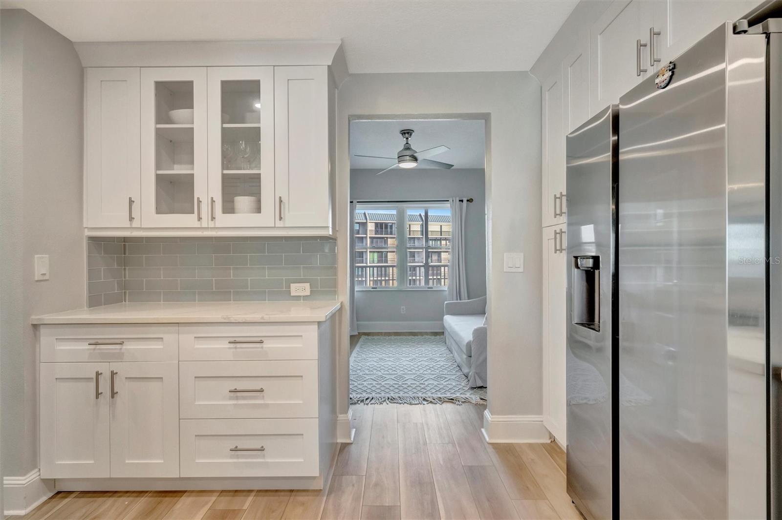 Experience refined coastal living at its finest in this beautifully updated beachfront residence at Cabana Club on Sand Key. Positioned on the fifth floor with expansive Gulf views, this coastal 2 bedroom 2 bath condominium with a versatile bonus room offers 1,385 square feet of thoughtfully designed living space and an effortless blend of elegance and comfort. The open concept living and dining areas are filled with natural light and capture sweeping water views, creating the perfect backdrop for both everyday living and entertaining. A striking wood burning fireplace is framed by shiplap detailing that adds warmth, texture, and sophisticated coastal character to the space. The chef’s kitchen is designed to impress, featuring rich quartz stone countertops, crisp white cabinetry, a coastal tile backsplash, and quality finishes that make hosting seamless and stylish. Coastline luxury vinyl plank flooring runs throughout the residence, offering both durability and beauty in a beachfront setting. Hurricane impact sliding doors and storm shutters provide peace of mind. The primary suite is a true retreat with spectacular water views and direct balcony access, allowing you to wake up to the sights and sounds of the Gulf each morning and step outside to take in breathtaking sunsets and soothing coastal breezes. Custom shiplap detailing adds warmth and architectural character, creating a serene coastal sanctuary. The suite also features a custom walk in closet and a spa inspired bath with dual vanities and a luxurious, spacious walk in shower. The secondary bedroom offers privacy for guests, and the flexible bonus space is ideal for a home office, media lounge, children’s play area, or additional guest room. Cabana Club residents enjoy an exceptional collection of amenities including private beach access, a geothermal heated beachfront pool, fitness center overlooking the pool deck, basketball and pickleball courts, tennis, and gated entry. The building has completed its milestone inspection with no Phase 2 required. Additional recent improvements include a new roof, impact windows throughout the building, updated hallway flooring, fresh stucco and paint, and beautifully maintained common areas. Located on prestigious Sand Key, just south of Clearwater Beach, this residence offers the perfect balance of tranquility and accessibility. Enjoy a peaceful shoreline and upscale coastal ambiance while remaining close to fine dining, boutique shopping, and cultural attractions throughout Clearwater, Tampa, and St. Petersburg. Tampa International Airport and St Pete Clearwater International Airport are both within convenient reach. This turnkey beachfront residence is an exceptional opportunity to own in one of Sand Key’s most desirable communities. Schedule your private showing today.