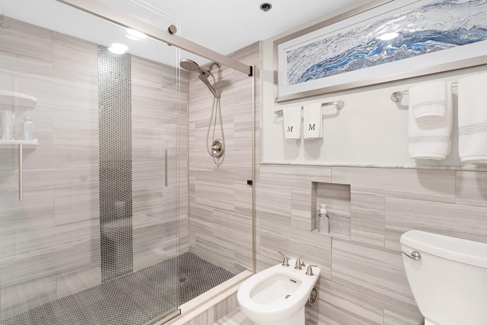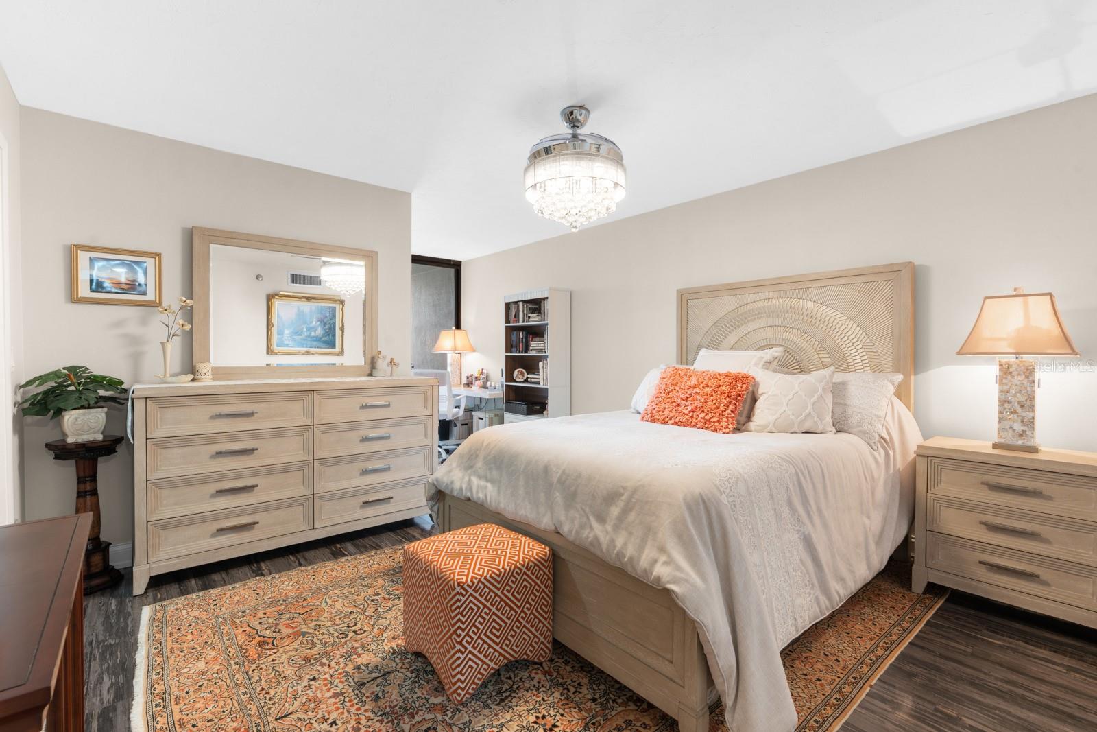 Introducing a residence within Dan’s Island, a private gated beachfront community located on the pristine sands of Sand Key. This well-appointed 2-bedroom, 2-bath condominium offers approximately 1,880 square feet of interior living space, thoughtfully designed with a contemporary aesthetic, abundant natural light, private storage closet and expansive terraces capturing sweeping Intercoastal views. The open floor plan provides a seamless connection between the main living and dining areas, ideal for both everyday living and entertaining. Large sliding glass doors extend the living space outdoors to an oversized terrace, offering unobstructed water views. The updated kitchen is centrally positioned and features granite countertops, custom cabinetry, a modern backsplash, and a GE Café appliance suite. A split-bedroom layout enhances privacy, with both bedrooms offering direct access to the terrace. The primary suite includes a spacious en-suite bath with stone surfaces, a walk-in glass shower, soaking tub, bidet, and tile finishes throughout. Additional features include a contemporary fireplace, custom lighting, crown molding, textured ceilings, a full utility room, and ample storage. Recent improvements include a new HVAC system (2026) and water heater (2023). The condominium association is scheduled to complete a new roof by May 2026. Residents of Dan’s Island enjoy a variety of amenities, including a Gulf-front heated pool and hot tub, sun deck, grilling area, and clubhouse with fitness center, racquetball and basketball courts, sauna, kitchen and billiards room. Boat slips may be available for purchase or lease, subject to availability. Conveniently located near shopping, dining, and local attractions, this property offers a comfortable coastal lifestyle in a well-maintained community and gorgeous landscaping perfect for a tropical escape!