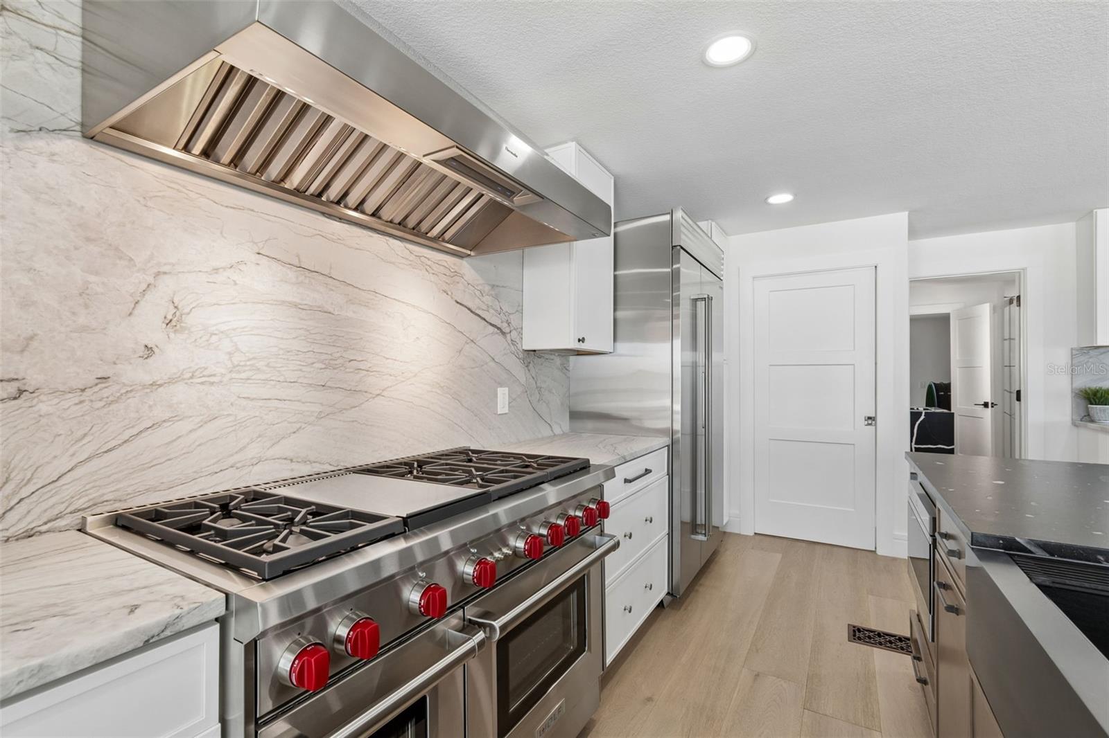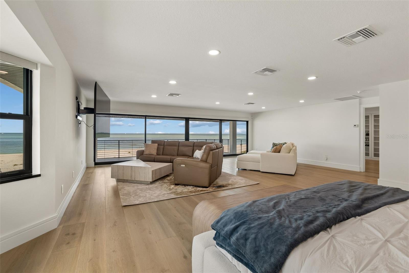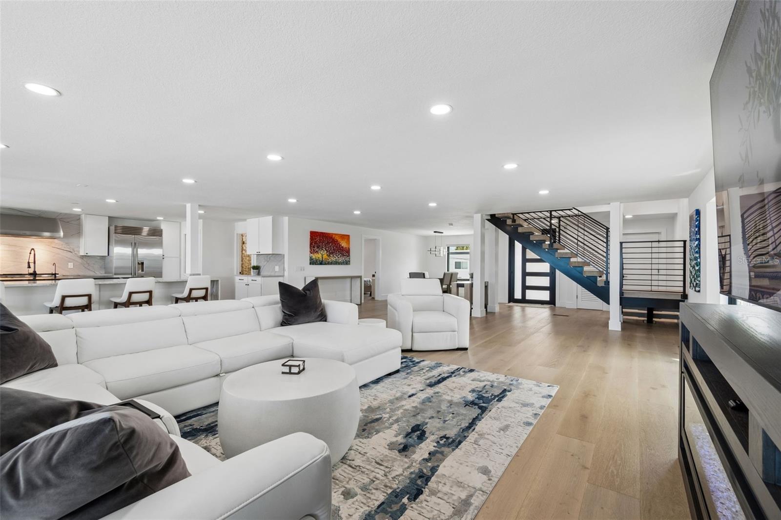 Welcome to a completely reimagined coastal masterpiece at 930 Eldorado Avenue. An extraordinary coastal retreat, masterfully remodeled to embody the pinnacle of modern luxury living in the heart of Clearwater Beach. Perfectly positioned just moments from the Gulf’s sugar sands, this exceptional residence captures breathtaking panoramic water views while offering a seamless blend of sophistication, comfort, and effortless coastal elegance. Completely renovated from top to bottom, this home showcases uncompromising quality and craftsmanship. Every major system has been thoughtfully upgraded, including a new roof, dual 4-ton HVAC systems, all-new electrical and plumbing, and a gas tankless hot water tank. Spanning three beautifully designed levels, the interior unfolds with a refined, light-filled aesthetic and impeccable custom finishes throughout. The ground level makes a striking first impression with a spacious four-car garage, epoxy floors, custom workbench, and direct access to the resort-style pool and full bath. The main living level is designed for both elevated entertaining and relaxed coastal living, featuring expansive open-concept spaces bathed in natural light. Floor-to-ceiling glass frames, stunning 24-foot panoramic Gulf views, while designer elements including a dramatic floating staircase, custom railings, wide-plank engineered hardwood flooring, automatic blinds create a truly elevated living experience. The gourmet chef’s kitchen is a statement of both form and function, appointed with large dual islands, 42-inch Sub-Zero refrigerator, 48-inch Wolf gas range, Thermador vent hood, Cove dishwasher, custom cabinetry, and exquisite quartzite and quartz surfaces. The main level also features 1 bedroom, 1 full bathroom and laundry room. The upper level is anchored by a serene primary suite, where wall-to-wall sliding glass doors open to a private balcony overlooking the Gulf, an idyllic setting for evening sunsets. The spa-inspired ensuite bath features a soaking tub, glass-enclosed shower, and refined designer finishes, complemented by a boutique-style walk-in closet reminiscent of a high-end retail showroom. Two additional bedrooms, a full bath, and a spiral staircase leading to a charming loft lookout complete this level, offering a perfect vantage point for unforgettable sunset views. Outdoors, the home transforms into a private resort-style oasis designed for year-round enjoyment. The saltwater pool, complete with electric heater and gas-heated spa, is surrounded by lush new St. Augustine sod and enhanced by a fully updated irrigation system and privacy fencing. The expansive outdoor living area features a fully equipped 12-foot chef’s kitchen with natural gas grill, refrigerator, ice maker, gas fire pit, fire tray and outdoor sound system creating an exceptional setting for entertaining. A full pool bath and additional outdoor shower add both convenience and luxury. Additional enhancements include a private elevator, hurricane-impact windows and doors, concrete driveway pavers, integrated security cameras with ADT system, new garage doors, designer lighting, fresh interior and exterior paint, and premium finishes throughout. Being steps away from Clearwater Beach’s top restaurants, shopping, and recreational activities is also no small bonus. This is a rare opportunity to own a truly turnkey coastal masterpiece in one of Florida’s most coveted beach communities.