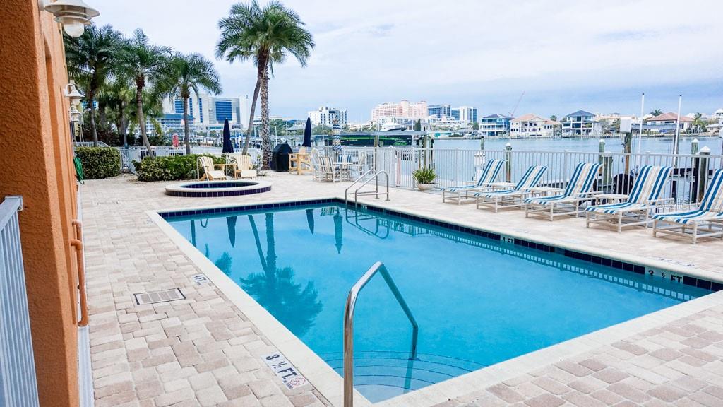 Price reduction, the lowest priced Waterfront condo fully furnished on Clearwater Beach. This stunning waterfront condo in Clearwater offers an unparalleled blend of luxury, comfort, and breathtaking views. Nestled in a prime location, this 3-bedroom, 2-bathroom residence is the epitome of coastal living at its finest and it is fully furnished. As you enter, you're greeted by an open floor plan that seamlessly integrates the living, dining, and kitchen areas, creating an inviting space for entertaining or relaxing. Large windows and sliding glass doors flood the interior with natural light, while providing panoramic views of the sparkling waters beyond. The modern kitchen is a chef's delight, featuring top-of-the-line stainless steel appliances, sleek granite countertops, and ample cabinetry. Whether you're preparing a gourmet meal or serving snacks at the breakfast bar, this kitchen meets all your culinary needs. The master suite is a serene retreat, boasting a spacious layout, walk-in closet, and an en-suite bathroom equipped with a luxurious soaking tub, separate shower, and dual vanity sinks. Wake up to the soothing sounds of the water and enjoy your morning coffee on the private balcony overlooking the waterfront. Two additional bedrooms add comfort and versatility, perfect for family, guests, or a home office. The second bathroom is beautifully appointed with modern fixtures and finishes. Step outside to the expansive balcony, where you can dine al fresco, bask in the sun, or simply take in the mesmerizing views. The condo complex features a sparkling pool, ideal for cooling off on hot days or lounging by the water. With its prime waterfront location, this condo is just minutes away from Clearwater's pristine beaches, fine dining, shopping, and entertainment options. This waterfront condo in Clearwater is not just a home; it's a lifestyle. Experience the best of Florida living, where every day feels like a vacation.