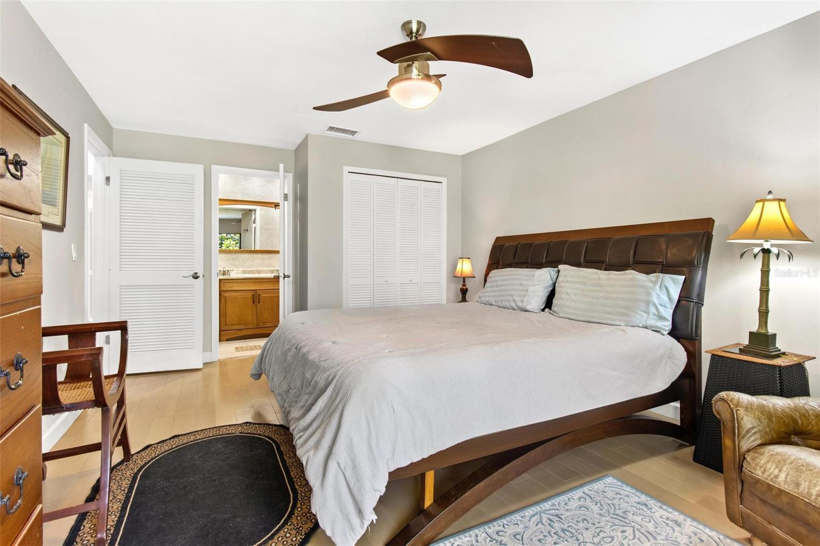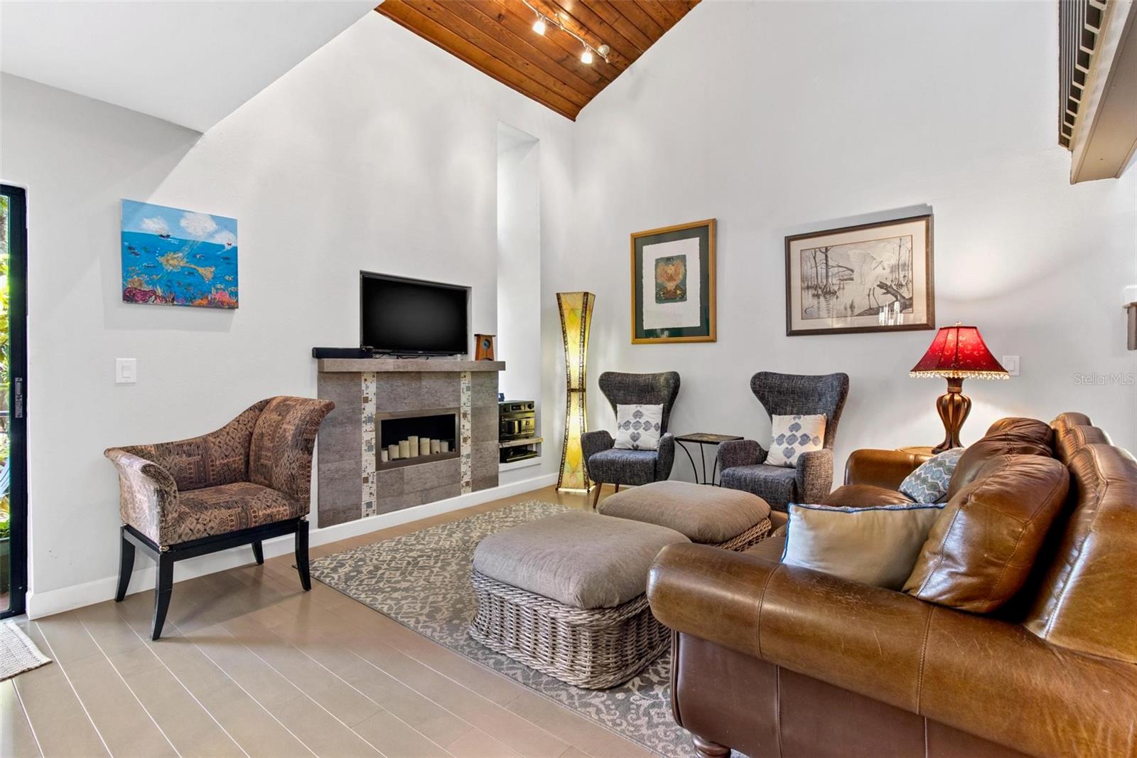 Welcome to the Village on Island Estates, a waterfront community located on Island Estates at Clearwater Beach. This totally renovated 2bedroom, two and 1/2 bath townhouse, a 2 car (side by side) garage with a large separate enclosed bonus room that has many possible uses. The second level is an "open" floorplan with a vaulted ceiling, fireplace, and sliders leading to a private outdoor deck. The open living, dining, and kitchen are great for entertaining. And the deck that is surrounded with tropical foliage, has room for a grill and seating , and stairs leading to one of the two community pools. Behind the kitchen is a bonus area that is perfect for a home office or butler's pantry and a full laundry room with a 2nd frig. and laundry sink. The stairs leading up to the 3rd floor have a great "loft" view of the living area below. Both bedrooms are spacious enough to be considered "master suites". With ensuite baths and ample closets, and each having a private balcony. The community has a "maintenance" man, lawn service, pool service, and management company. It has passed the Milestone Inspection and has "Fully Funded" Reserves, all new roofs in 2023, and newer exterior paint. The Village on Island Estates is pet friendly, has 2 private pools, garden areas with mature landscaping, and community maintained boat slips that can be rented by homeowners. The benefits of Island Estate living are too many to list, but needless to say it is like living in PARADISE !!