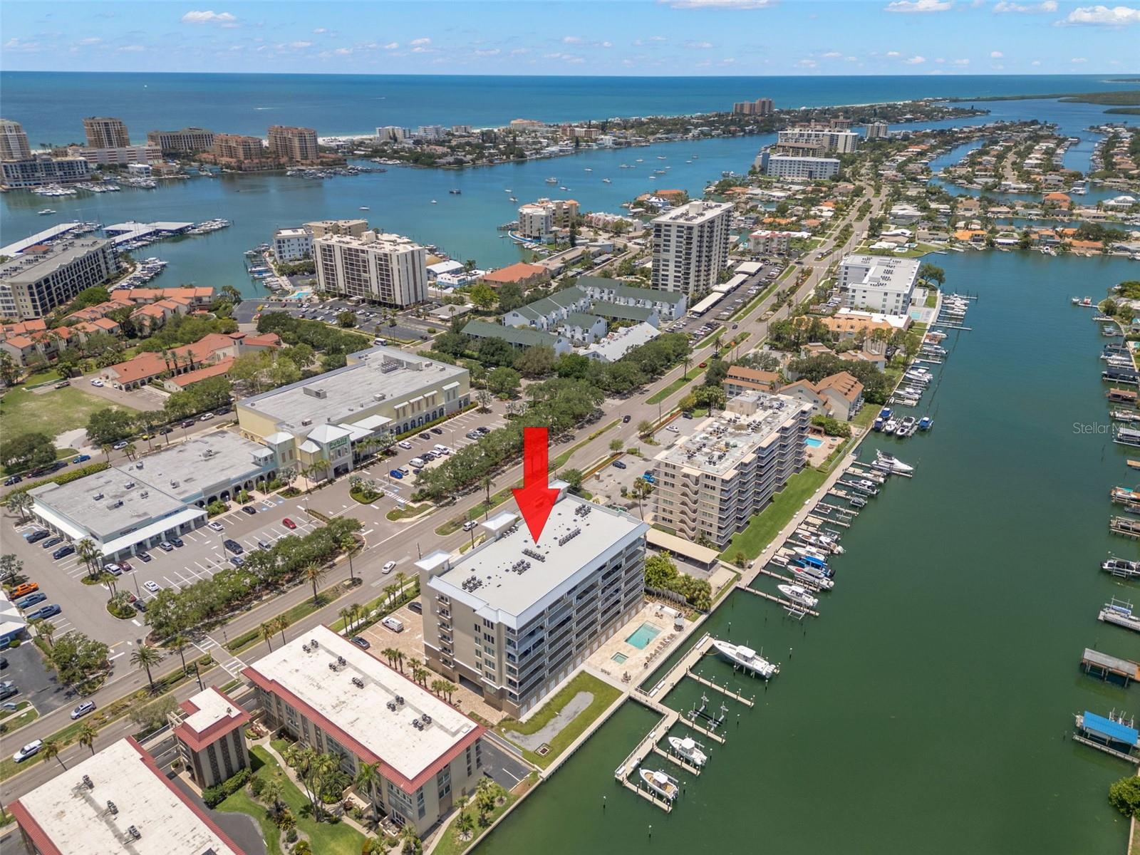 Welcome to the new Dolphin Harbour Condominiums. Amazingly located in the coastal resort community of Island Estates, between Clearwater and Clearwater Beach. Dolphin Harbour #402 offers 1,850sf of upscale coastal living, with 3 bedrooms and 2 baths and a 30’ balcony with direct water & pool views. The modern kitchen is furnished with GE Cafe Series appliances. The primary bedroom has sweeping waterfront views and a large walk-in closet. Enjoy the expansive feeling with 10’ ceilings and 8’ hurricane rated sliding glass doors in the living area and primary bedroom. Two reserved parking spaces are included, one under the building and one outside. Heated pool and spa at the waterfront dock. Just a few minute walk or bike ride to the world renowned white sands of Clearwater and Sand Key Beaches. The perfect Florida beach escape!