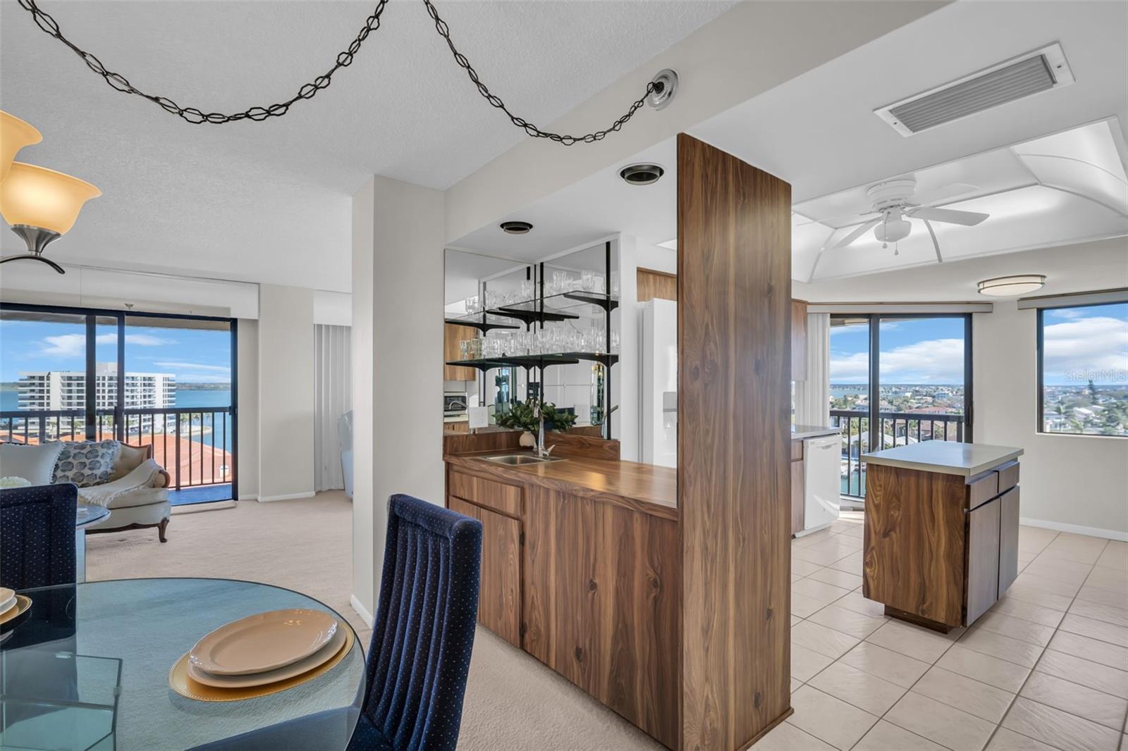 Make this beautiful one of a kind southeast unit your own, take advantage of the location and the elevation with water views from every room. This unit is in a high rise concrete / stucco and slab with 270 degree un-obstructed exceptional views of the intracoastal water ways and the gulf of Mexico rest assured this view will never be obstructed. A 2 br 2 bth condo on Sand Key is available with under building parking and the ability to rent or purchase a boat slip. This unit has a new AC unit (2023) and new water heater (2023). The HOA had the roof replaced in 2021. A 40 foot wrap around balcony providing an ideal view for sunrises year round and during November through March views of both sunrise and sunsets. On your balcony pull up a chair & pour yourself a beverage and watch the various marine life right in your waterway dolphins, manatees, stingrays, and many more. Owners have the benefit of a laundry room inside the unit, primary entry is protected from the elements. Trash chutes on each floor for the benefit of the owner. Most coveted assigned oversized under building parking #9 for those rainy days when you have groceries to put into the grocery cart & your storage closet #48 is right in-front of your parking spot. Resurfaced pool, grill picnic area, Tennis / pickleball court, car wash station. The community also has a manned gate 24 hours 7 days. Get yourself a slice of paradise and soak up the lifestyle of luxury come and take a look for yourself. Maintenance includes 24 hour guard, reserves, common area & grounds maintenance, 2 boxes cable tv & internet, pest control, water & sewer, common area taxes, pool maintenance, gas for generator, building repairs, trash pickup, insurance for the building, flood insurance for the building, electricity for common areas, management fees, maintenance of recreational facilities & more.