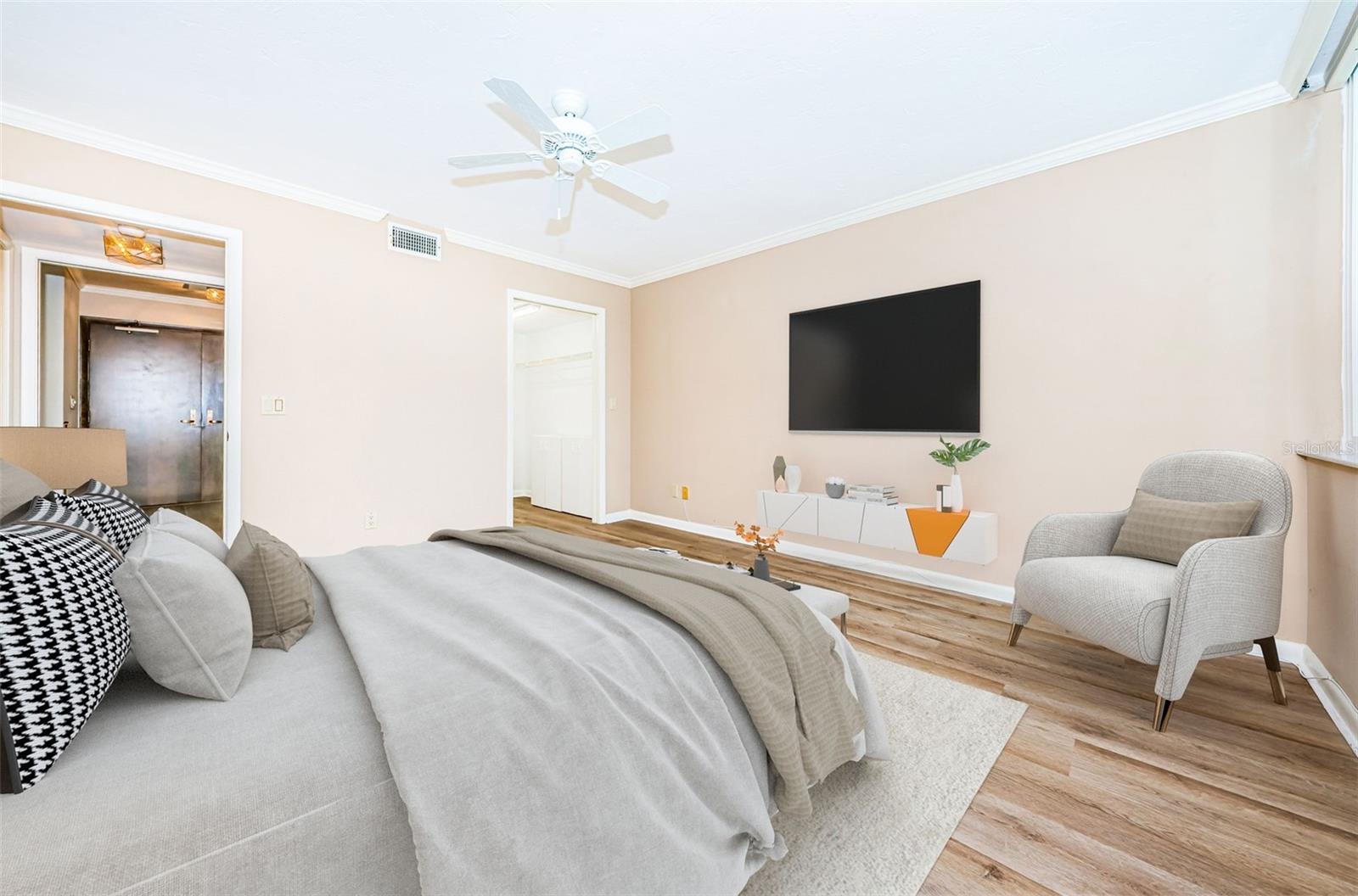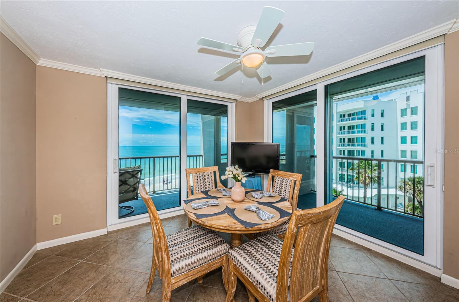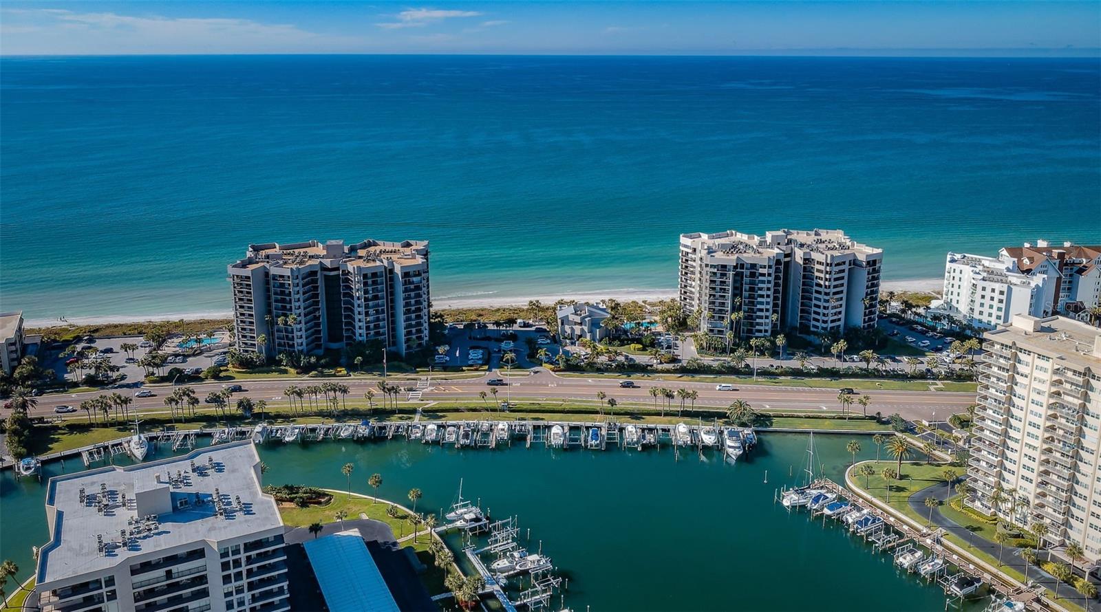 One or more photo(s) has been virtually staged. INTRODUCING UNIT 514 in the prestigious Dans Island community on Sand Key Beach. This Gulf front unit is ideally located in the northwest corner with sweeping views of the Gulf, powder white sandy beaches, city lights, the Intracoastal Waterway and stunning nightly sunsets from your approximately 60-foot wraparound balcony. Elegance abounds as you enter through the 24-hour secured guard gate and take in the meticulously maintained grounds, impressive architecture and Gulf front pool and clubhouse. You will have continued peace of mind entering the fully secured building and parking in your RARE, DEEDED, UNDER BUILDING PARKING SPACE (approx. value $100k). When the elevator doors open on the 5th floor, you are immediately greeted with floor to ceiling Gulf views to welcome you home. Double entry doors open on to your elegantly appointed home with an open, sun filled floor plan featuring a spacious living room and dining room with stunning LUXURY VINYL PLANK FLOORING, REMODELED galley style kitchen featuring high end GE PROFILE stainless steel appliances, QUARTZ countertops and an EXPANDED breakfast nook to sip your morning coffee while enjoying the sea breeze and listening to the waves. The home offers incredible water views from each room accentuated by the IMPACT RATED sliding glass doors and windows. Your primary suite is generously sized with open beach views, a walk-in closet and ensuite bathroom featuring dual sinks, a garden tub and separate shower stall. For privacy, the floor plan offers a split bedroom where your guests can enjoy gorgeous water views, a walk-in closet and private bathroom. The laundry room offers a storage closet, utility sink and full size stacking washer and dryer. The Seller has invested over $140k in upgrades including a new HVAC (2017), HOT WATER HEATER (2016), INTERIOR PAINT AND CROWN MOLDING (2016), LUXURY VINYL PLANK FLOORING IN FOYER, LIVING/DINING ROOM AND BOTH BEDROOMS (2019), HURRICANE IMPACT RATED DOORS AND WINDOWS (2022), REMODELED KITCHEN WITH QUARTZ COUNTERTOPS AND GE PROFILE APPLIANCES, (2021), WATER SOFTENER (2023). There is a storage closet outside the front doors and another by the elevators. Dans Island offers its residents luxurious amenities including a heated pool & spa, 24-hour guard gate, grill areas with private eating areas, private beach access, separate clubhouse with basketball court and fitness room. The top floor of the clubhouse has a full kitchen, pool table & two balconies overlooking the sugary sands of the Gulf. Welcome home!