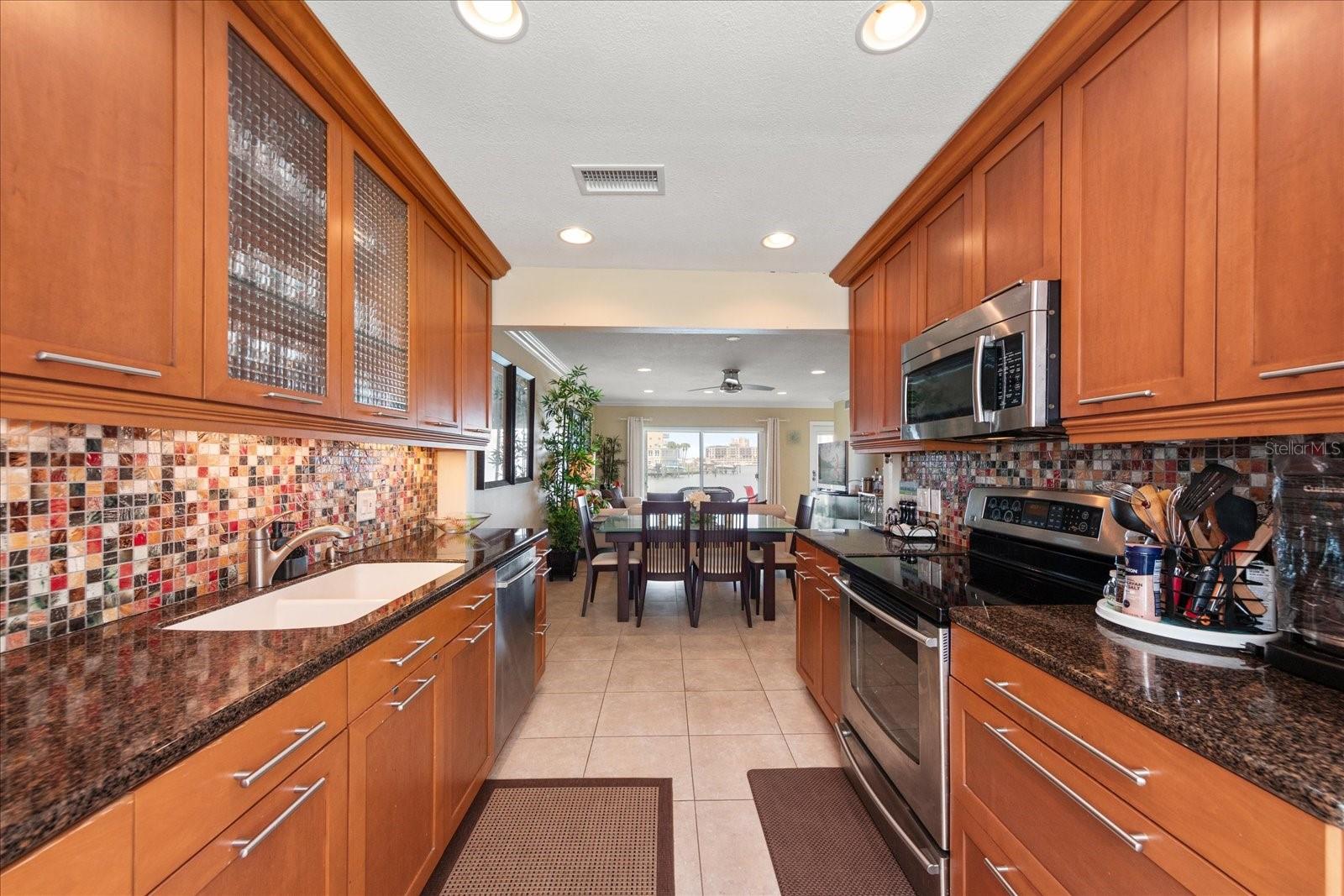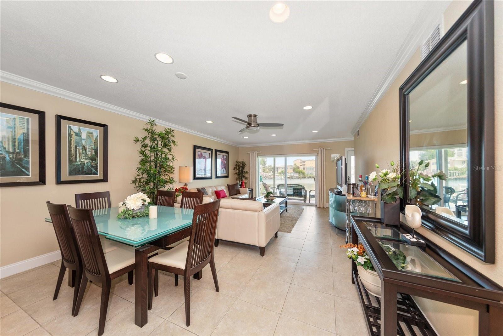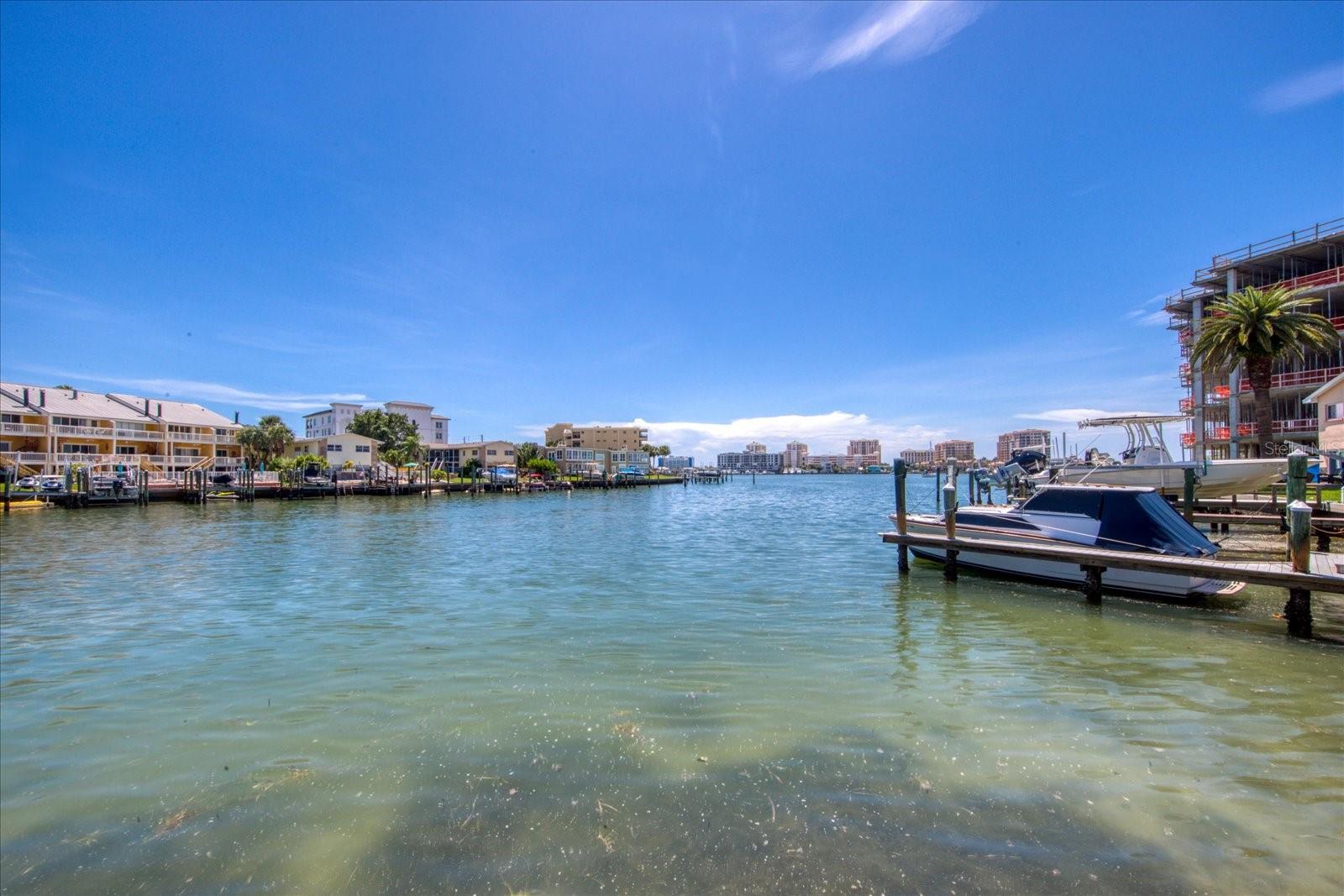 DIRECT WATERFRONT VIEWS in this renovated 2 bed 2 full bath condo. The views from this home are SPECTACULAR! Imagine sitting on your covered patio watching the sunset every night, and during the day dolphin play right out your back door. This well-appointed condo has an open concept with the kitchen opening to both dining and living area. The Primary retreat with attached bath has wall to wall closets and a huge window to capture all the views. The guest bedroom has its own private bath, and the washer and dryer are located here as well. The kitchen is light and bright with natural lighting from the window, stainless appliances, custom cabinets and granite counter tops. The combined living room- dining area is updated with crown molding, large tile throughout, and Impact glass windows and sliding glass doors. This home has a huge, covered patio for grilling, dining and just entertaining with friends. This home also comes with 1 covered parking spot and guest parking. This complex is half a mile to our famous Clearwater Beach with fine dining and live music just around the corner. Come live what we Islanders call the "Salt Life".
