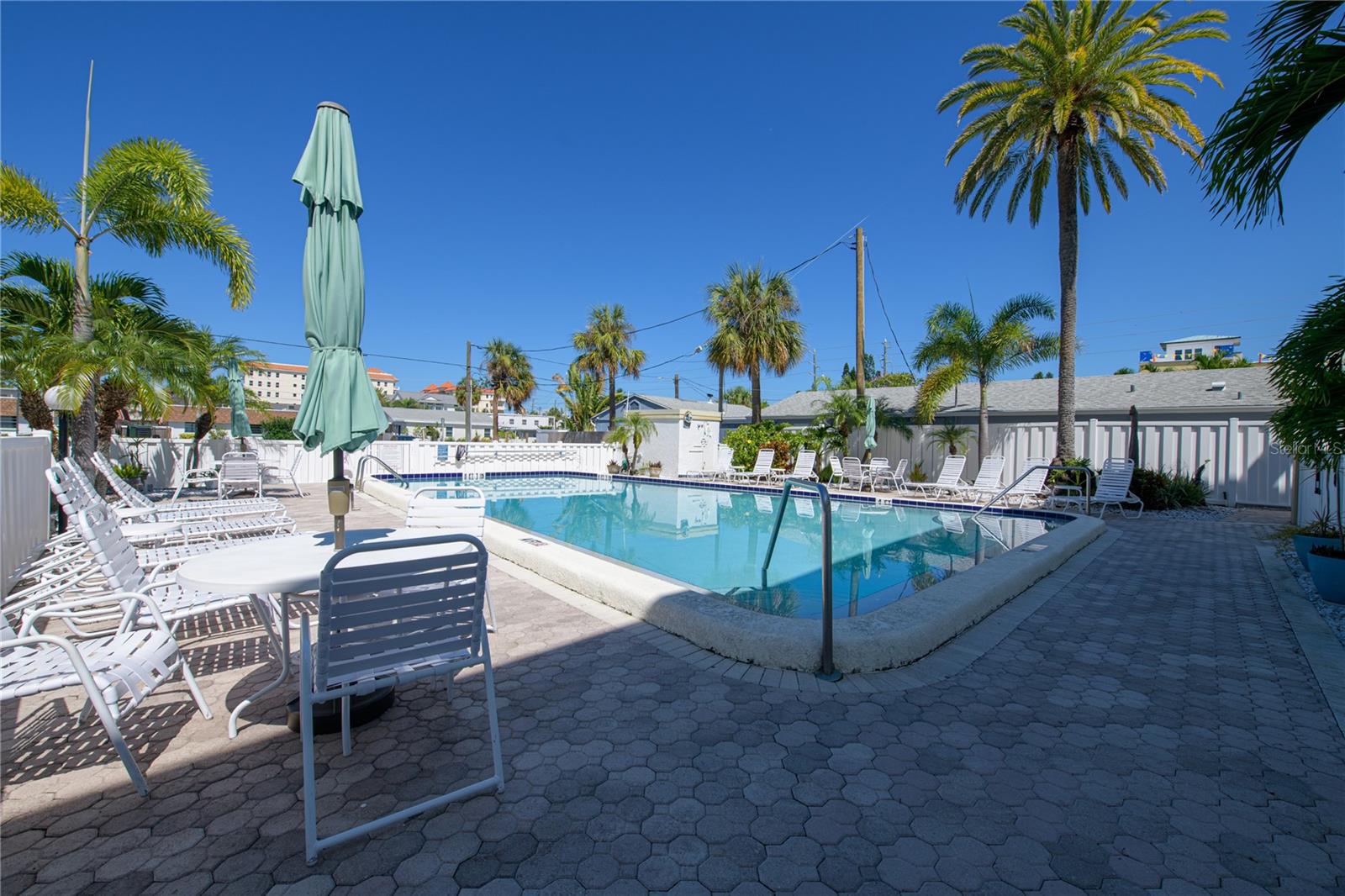 Welcome to your perfect Clearwater Beach retreat! This beautiful 2-bedroom, 2-bath condo offers everything you need for a relaxed and vibrant beach lifestyle, just two blocks from the world-famous white sands of Clearwater Beach. Situated on the ground floor, this unit features a spacious open floor plan, ideal for both relaxing and entertaining. The living room comfortably fits two sofas and a lazy chair, while the expanded dining area, thanks to the conversion of the Florida room into air-conditioned living space, can accommodate a table for 6 to 8 people, providing an additional 6 feet of space for entertaining. The modern kitchen is equipped with sleek granite countertops, stainless steel appliances—including a refrigerator, dishwasher, range, and over-the-range microwave oven—and a convenient breakfast bar for casual meals. Both bathrooms have been recently updated with new showers and stylish fixtures, continuing the elegant granite countertops for a cohesive look throughout. The entire condo is finished with easy-to-maintain ceramic tile flooring, perfect for beachside living. A private patio, enclosed by a 4-foot vinyl fence, provides an outdoor oasis, perfect for morning coffee, relaxing with a book, or hosting a small gathering. Accessible from the living area, this space enhances the condo’s seamless indoor-outdoor living experience. Ceiling fans in every room ensure optimal comfort year-round. Additional conveniences include community laundry facilities on the third floor and a heated inground pool, complete with a spacious deck and shaded courtyard with a grill, ideal for summer barbecues. This condo comes fully furnished, so you can move in and start enjoying the Clearwater Beach lifestyle right away. Nestled in the smaller, intimate community of Penthouse Shores, this condo is positioned between the tranquil Intracoastal Waterway and the bustling Gulf beaches, offering the best of both worlds—peace and excitement. Just a short walk away, you’ll find yourself on the soft sands and sparkling waters of Clearwater Beach, ready to explore local shops, restaurants, and water activities. Enjoy the refreshing cross breeze from both the east's Intracoastal and the west's Gulf, a daily reminder of your paradise location. Whether you’re seeking a permanent home, a vacation getaway, or an investment property, this condo is the perfect choice. Don’t miss this opportunity to own a piece of paradise in the heart of Clearwater Beach! Contact us today to schedule a viewing and experience the charm and convenience of this exceptional condo.